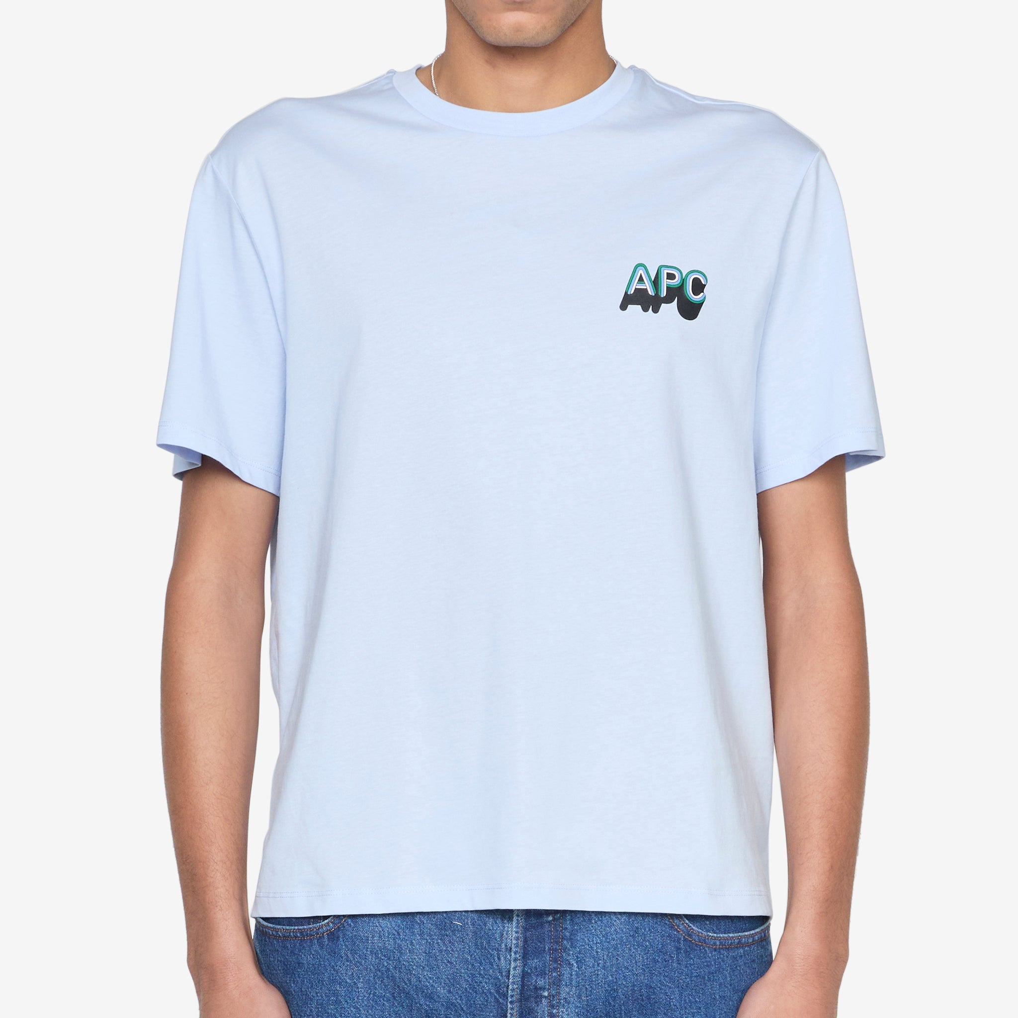 70's H T-Shirt in Sky Blue from A.P.C. Regular fit t-shirt with a ribbed crew neckline. Crafted from soft organic cotton and finished with printed branding at the chest.