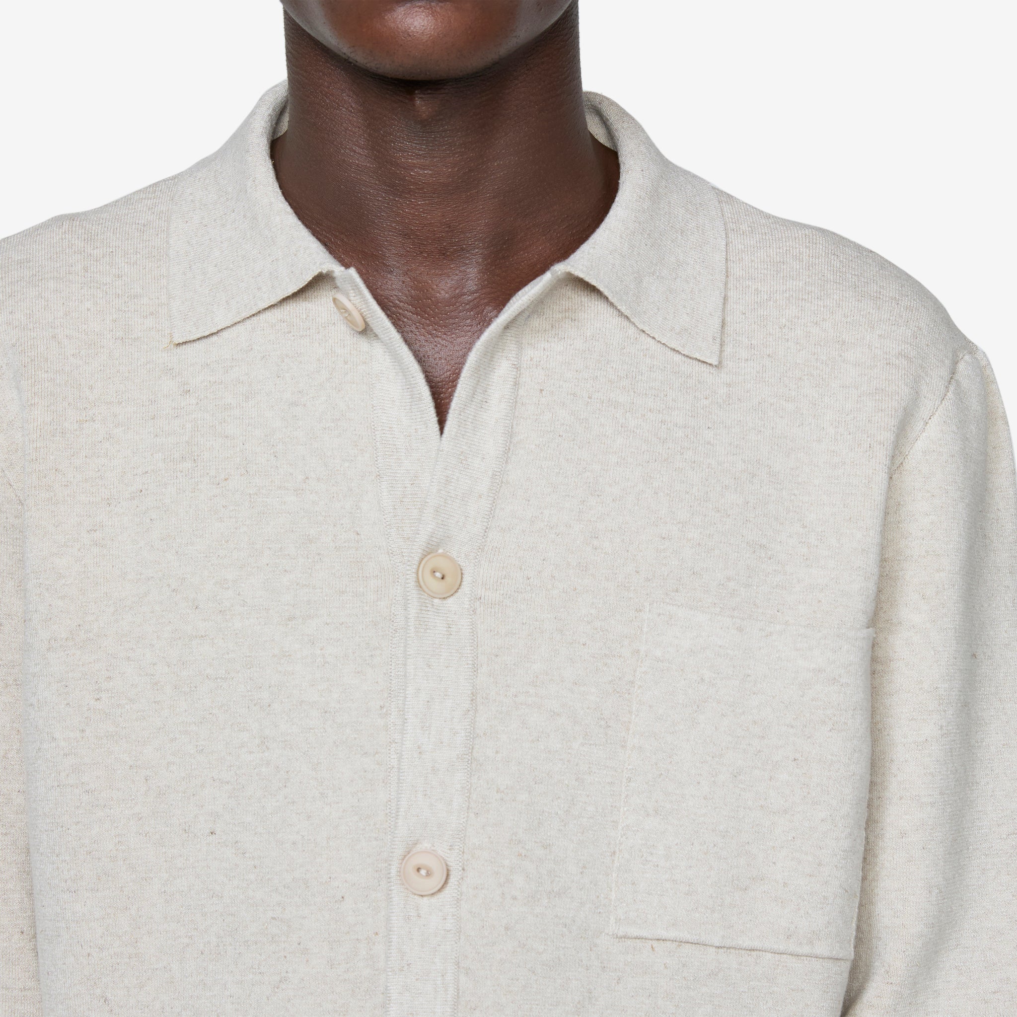 Men's Miles Jacket in Beige from A.P.C. Straight cut jacket with full button closure and a straight hem. Crafted from an Italian linen blend. Finished with a patch pocket on the chest.