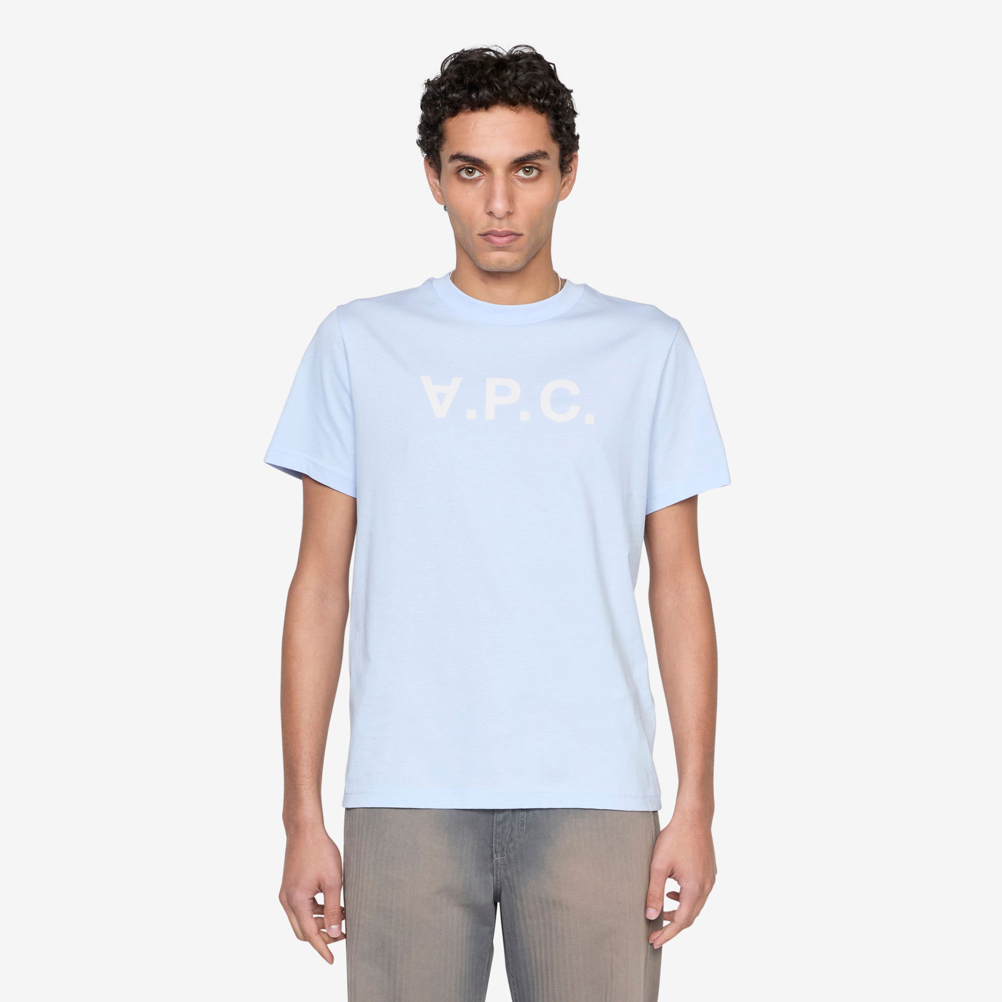 Standard Grand VPC T-Shirt in Sky Blue and White from A.P.C. Regular fit t-shirt with a ribbed crew neckline. Crafted from soft organic cotton and finished with printed branding across the chest.
