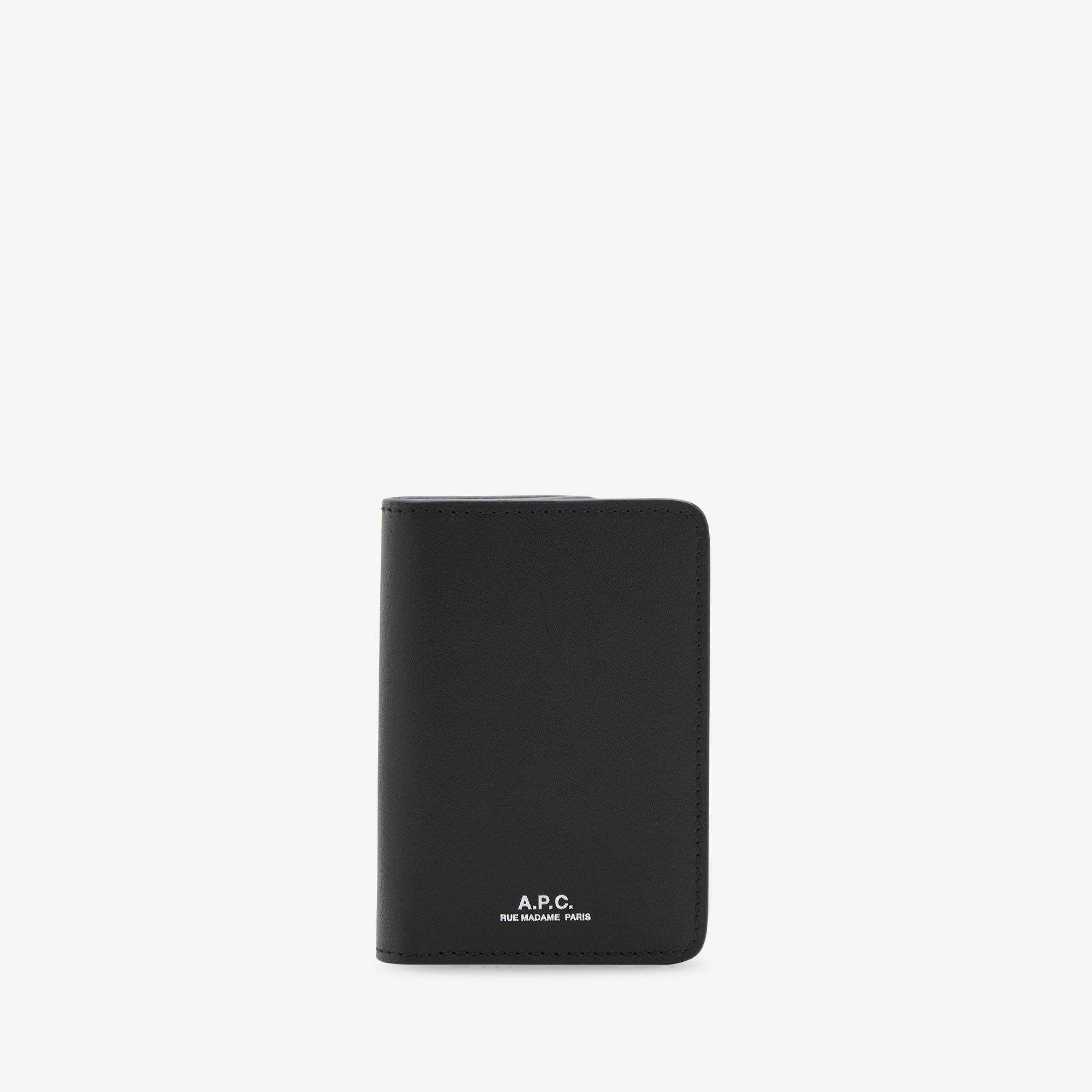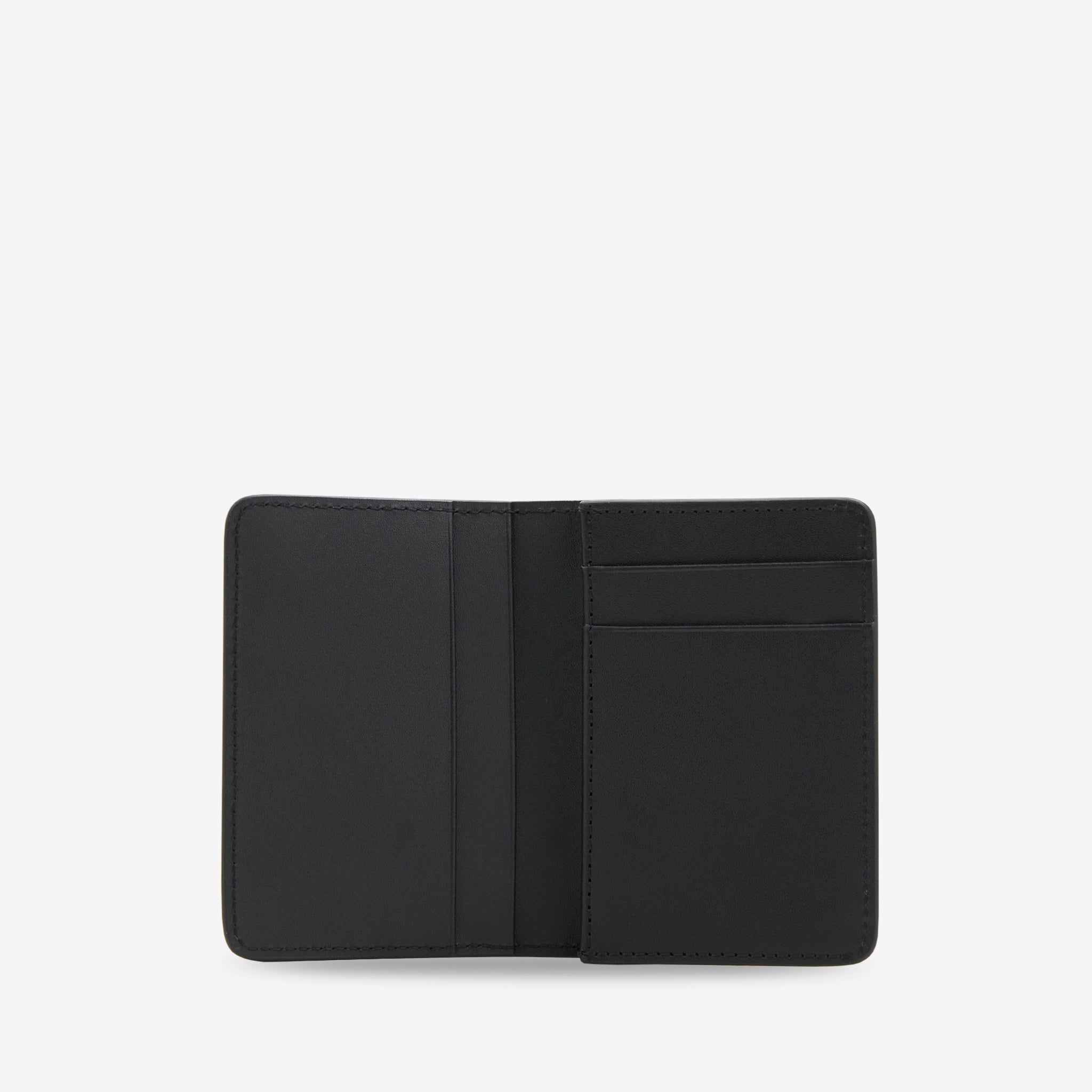 Stefan Cardholder in Black from A.P.C. Crafted from vegetable tanned calfskin leather with topstitched edges. Left side features two card slots whilst the right side features two card slots and a multifunction pocket. Finished with embossed silvertone branding on the front.