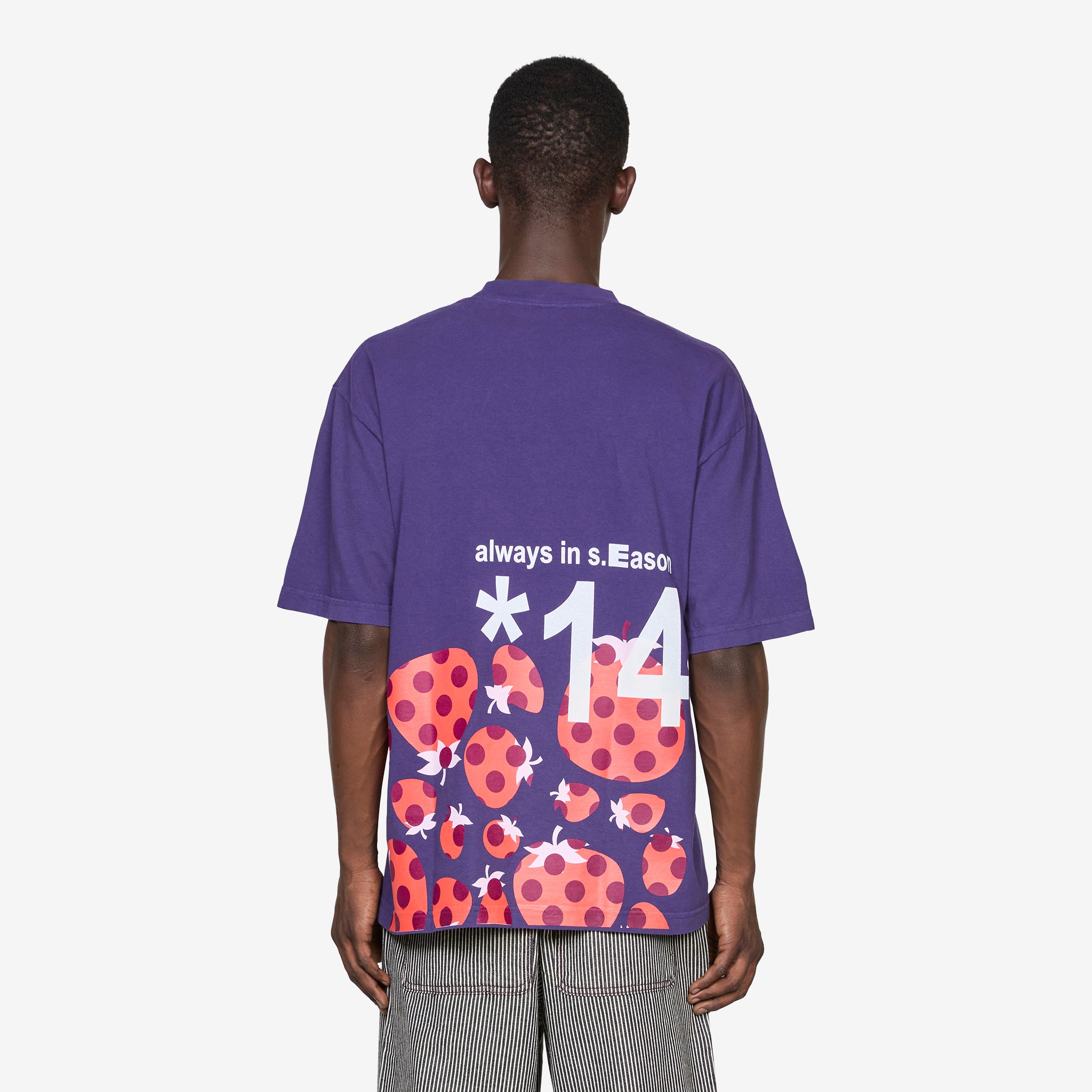 b.E Fresh T-Shirt in Purple from b.Eautiful. Relaxed fit t-shirt with a ribbed crew neckline. Crafted from 6.5oz garment-dyed cotton and finished with a printed graphic across the front and back.