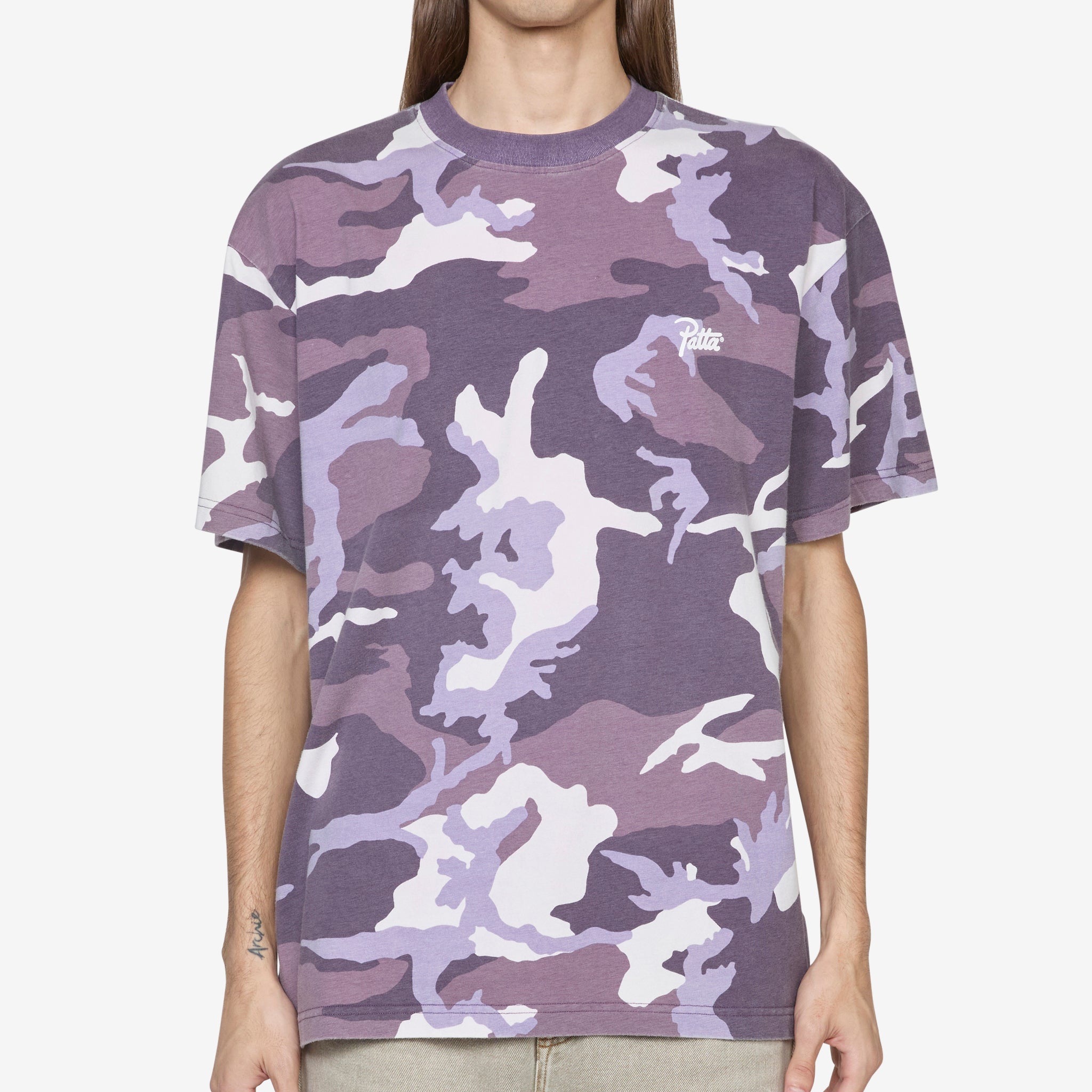 Basic Woodland Camo T-Shirt in Navy Cosmos from Patta. Regular fit t-shirt made in a 230 gsm, 100% cotton fabric with an all-over Woodland Camo print. Patta branded logo on the left chest. Ribbed neck.