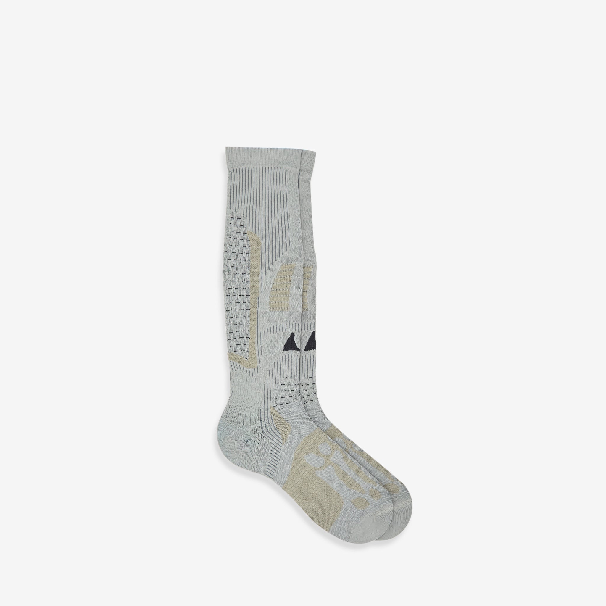 Bones Logo Q Skin Technical Socks in Taupe from ROA. Calf-high technical socks crafted from breathable Fulgar antibacterial Q-skin® yarn and technical thermoregulating fibers for fresh, durable comfort. Finished with jacuqard bones graphics and branding throughout.