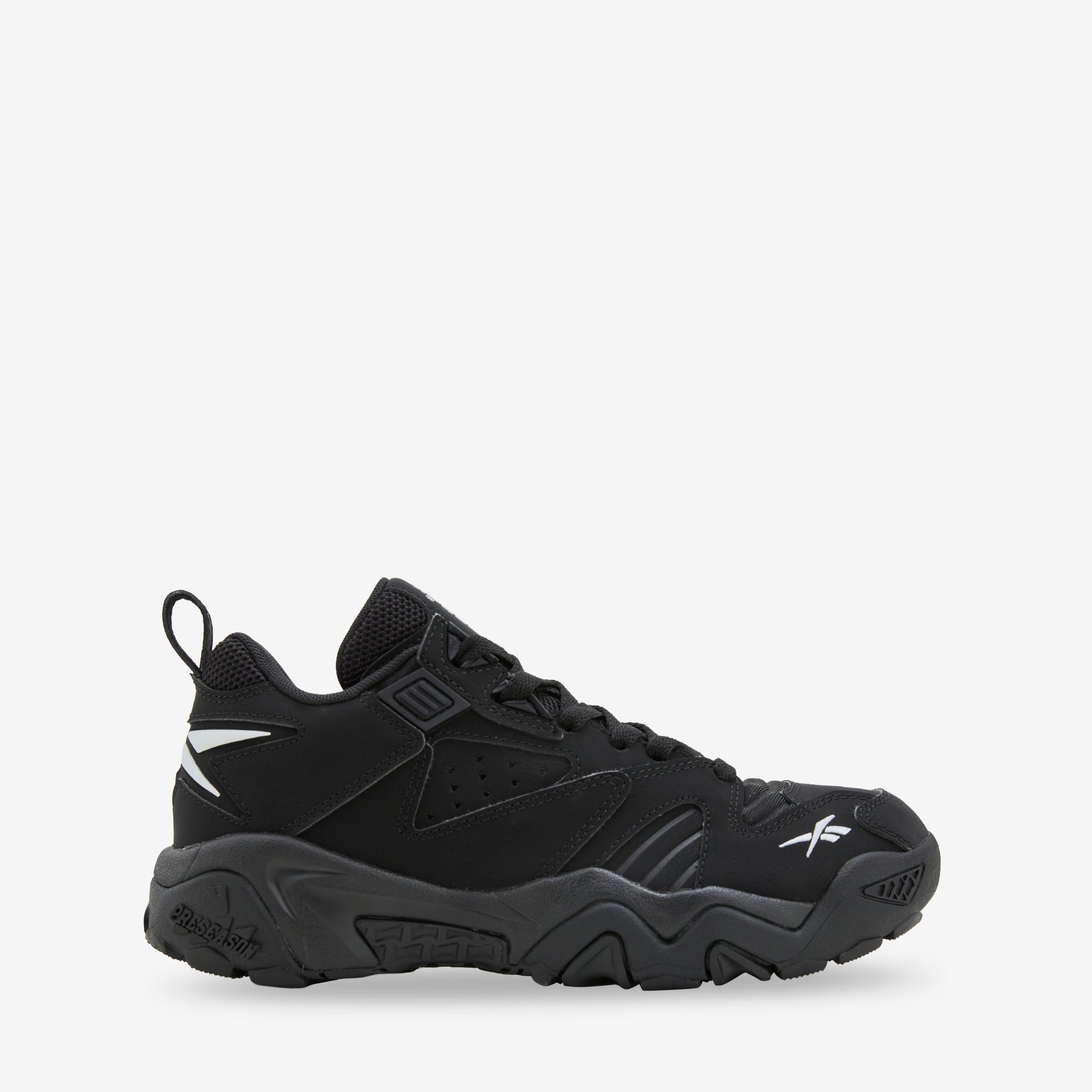 Men's Brutus Low in Black and White from Reebok. Crafted with a layered faux suede upper with perforated details. Rubber outsole provides support and traction. Finished with Reebok branding.