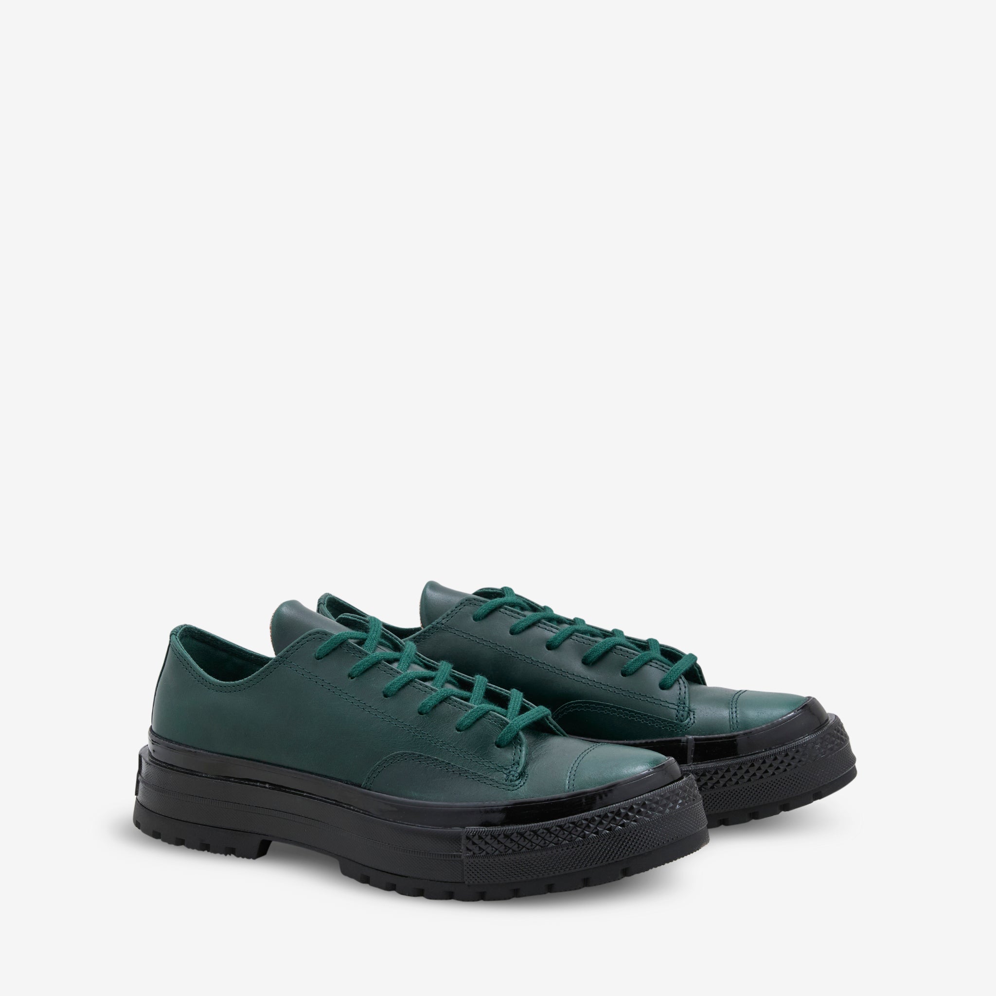 Men's Chuck '70 National Leather Low in Branch Out and Black from Converse. Premium leather upper with a classic derby shape and lacing system. CX foam cushioning provides all-day comfort while the extra mid-food support delivers structure and stability. Finished with a traction ready lugged outsole.