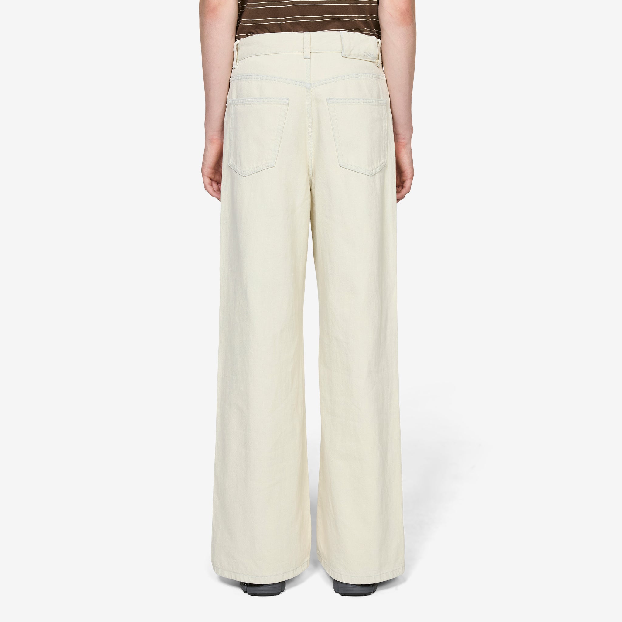 Clyde Jeans in Bleached Out from A.P.C. Relaxed fit jeans with a classic five-pocket silhouette and belt loop waistband. Crafted from stonewashed organic Japanese denim in a high rise, long wide-leg silhouette. Finished with 'guitar and dagger' buttons.