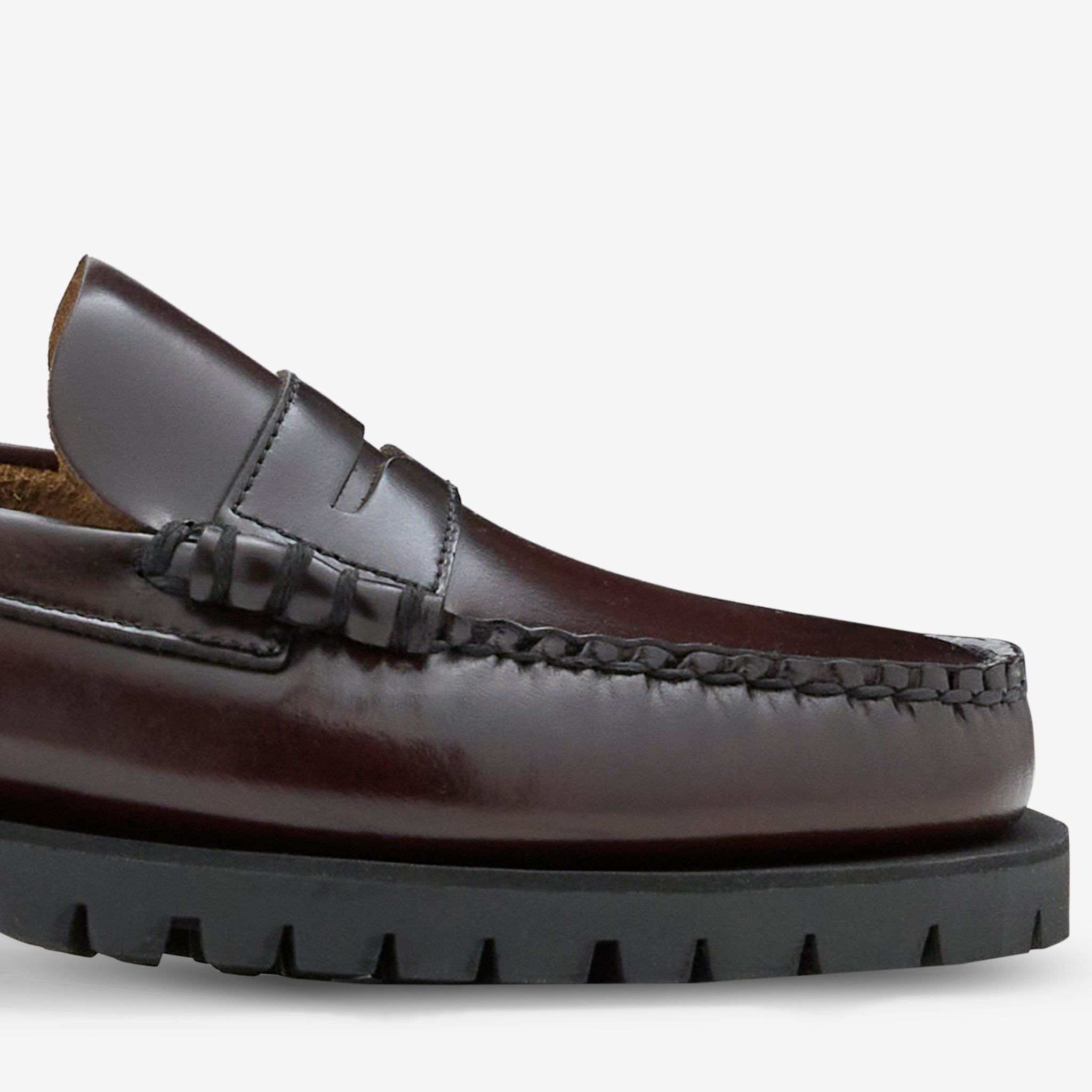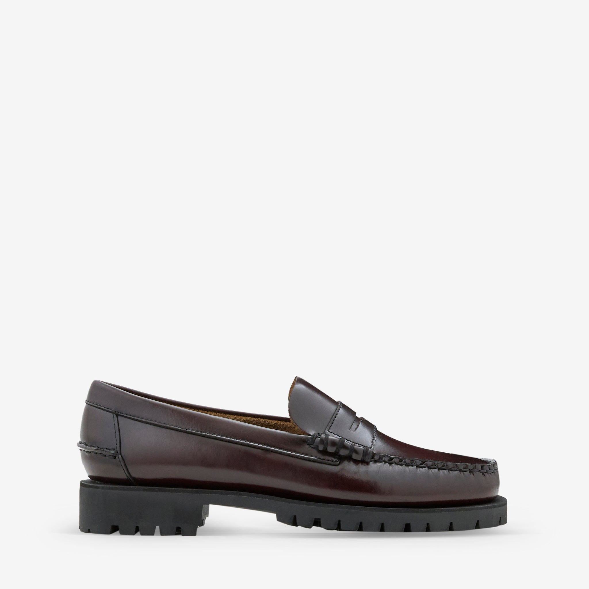 Men's Dan Lug in Brown Burgundy from Sebago. Hand-sewn slip-on loafers with a breathable, unlined upper and comfortable leather sockliner. Crafted from smooth corrected-grain leather with a waterproof gum commando sole for durable stability and traction.