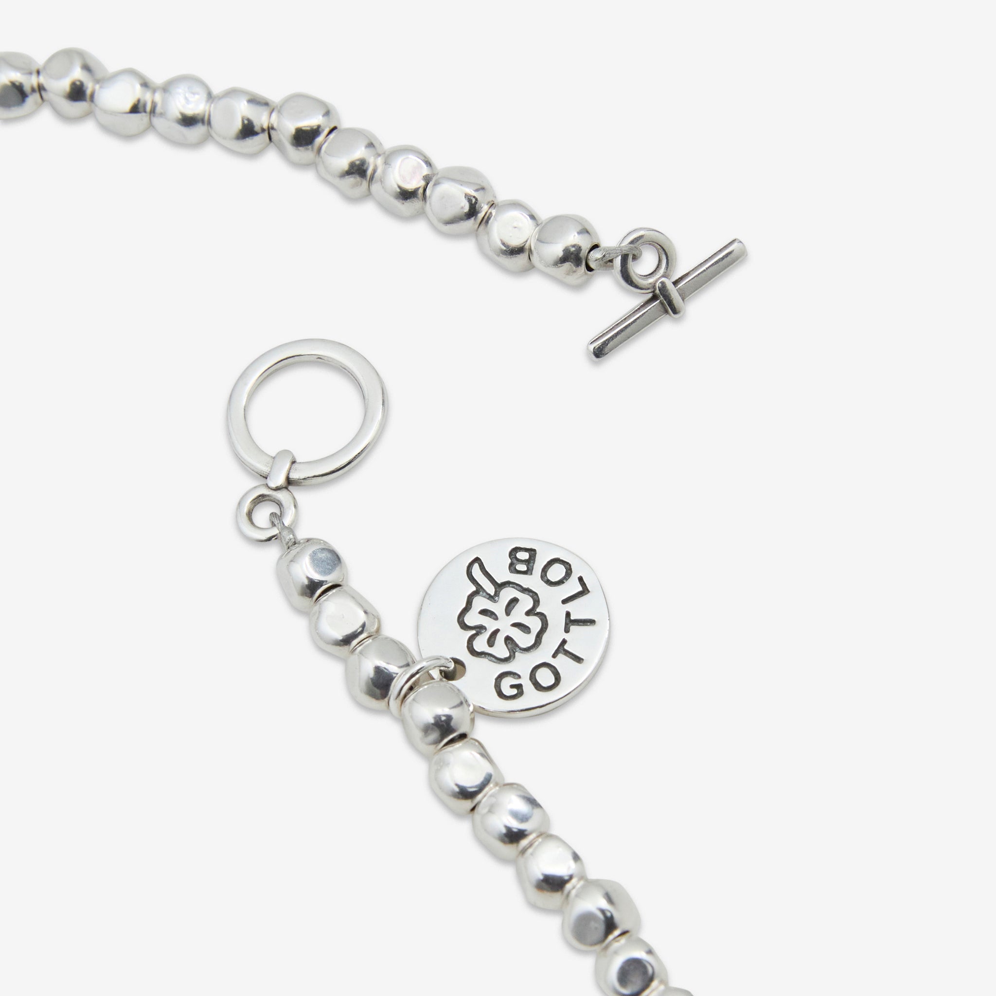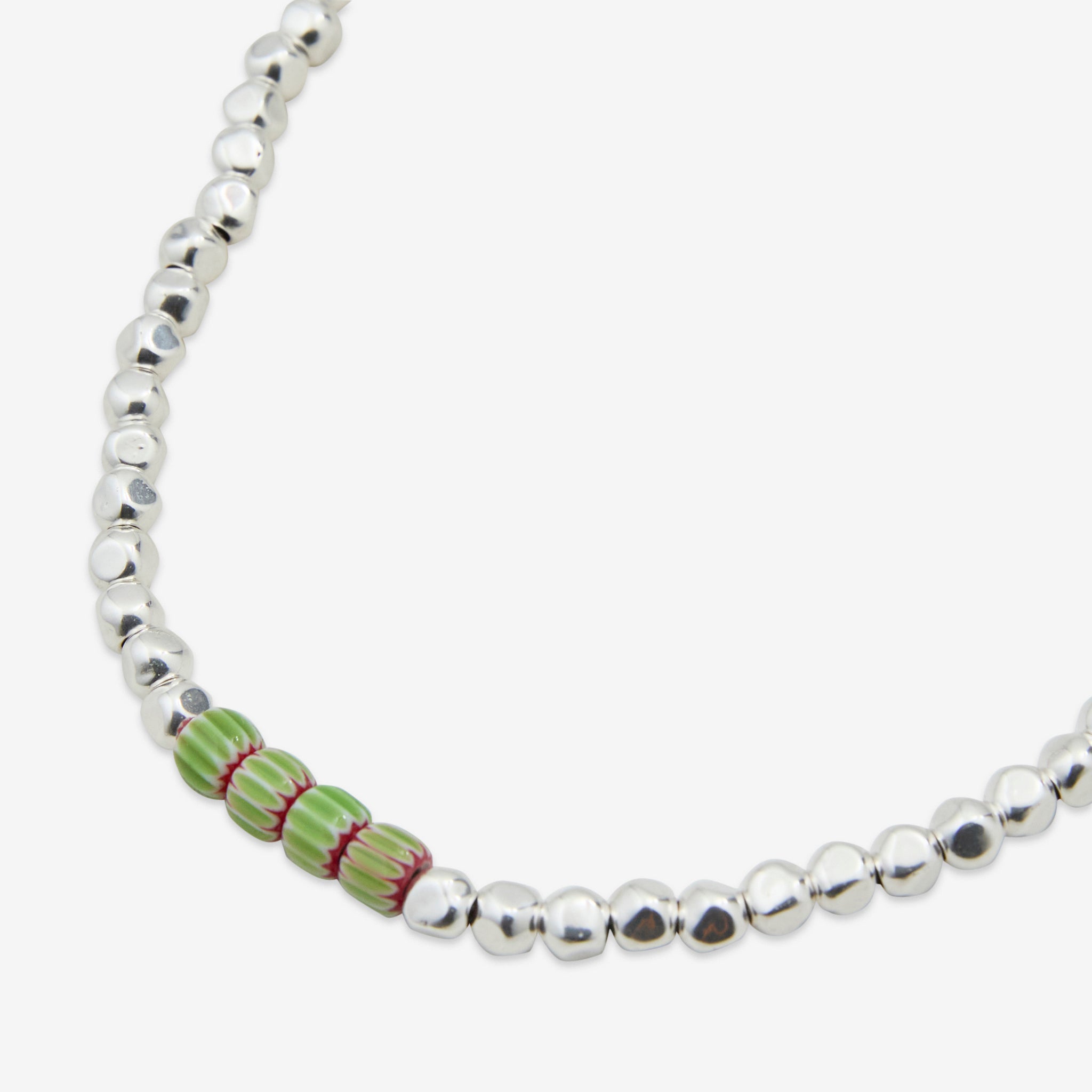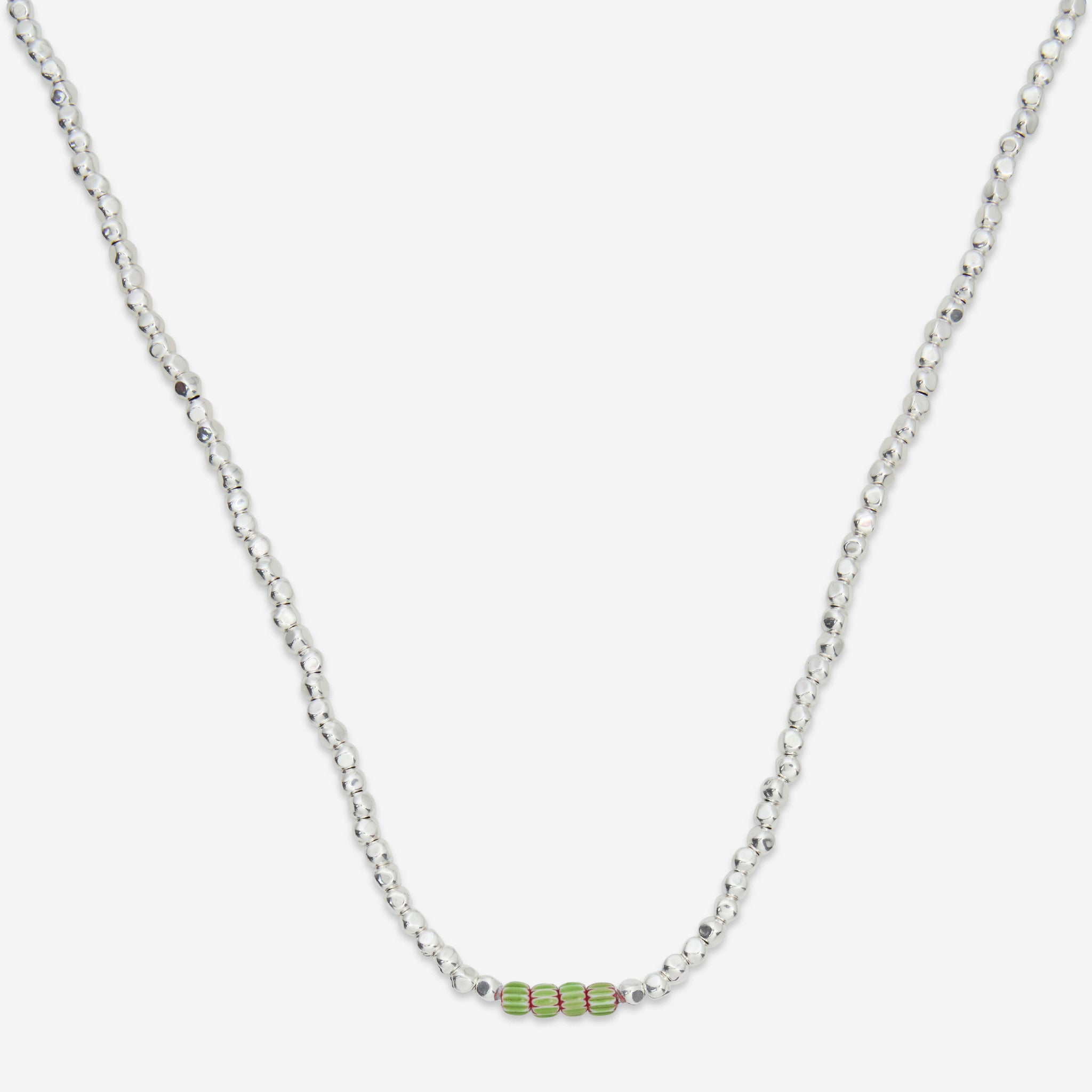 Unisex Edition No. 2 Necklace in Green and Red from Gottlob. Features 999 Silver plated beads with an uneven round shape and four highlight Murano beads. Finished with a branded charm in silver plating.