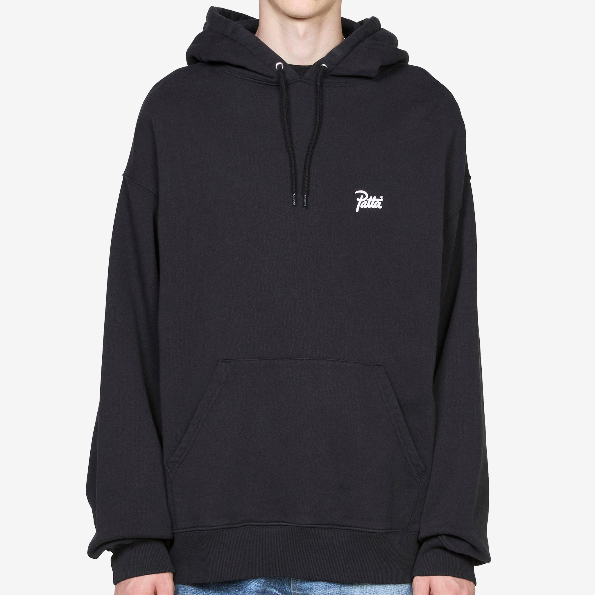 Embroidered Fire Panther Hooded Sweater in Black from Patta. Relaxed fit sweatshirt with a drawstring adjustable hood, kangaroo pocket and ribbed trims. Crafted from a brushed cotton sweat material and finished with printed branding at the chest and across the back.