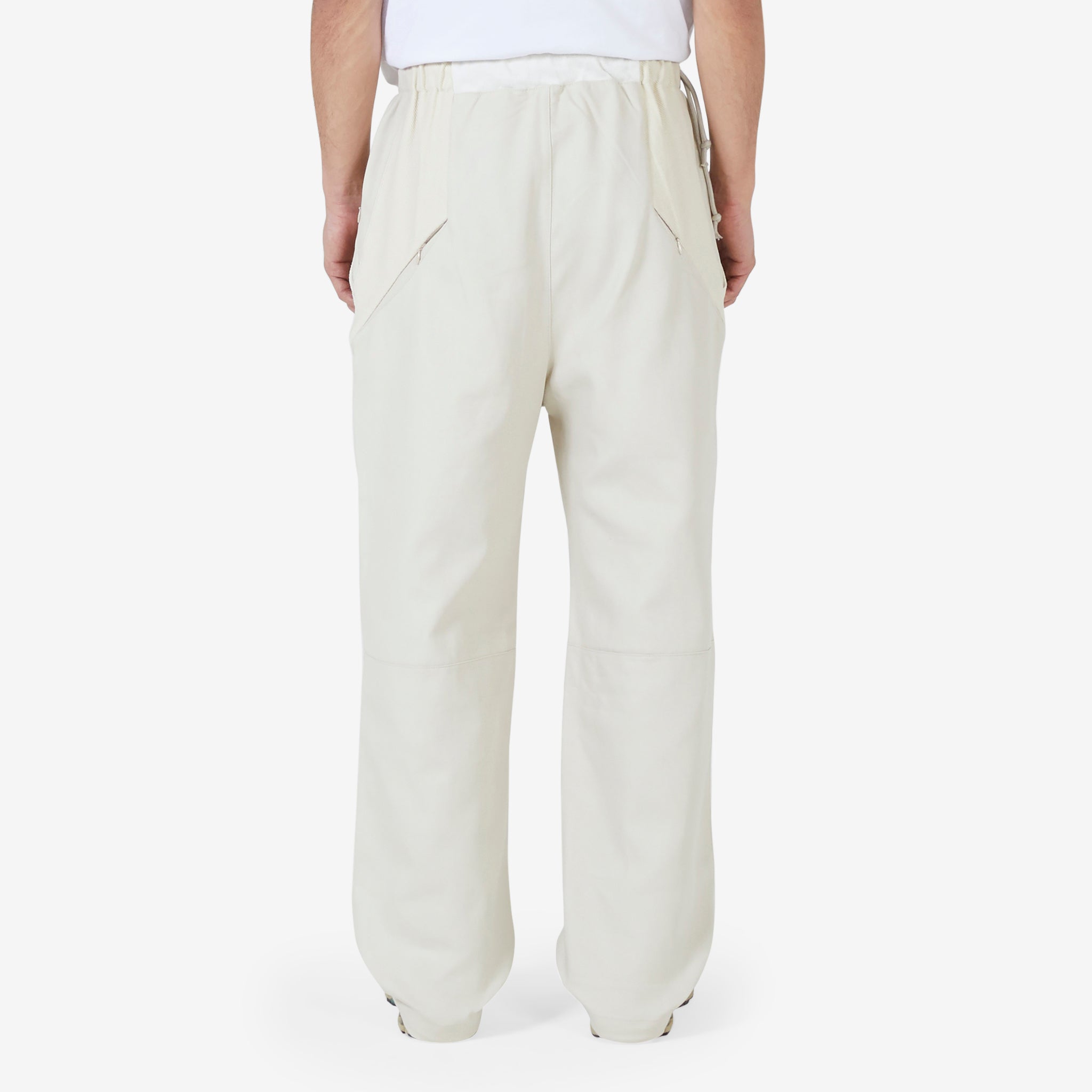 Men's Ep.4 Synopsis 06 Trouser in Ivory from XLIM. Relaxed fit trousers with elasticated waistband with an adjustable drawstring on the side and elasticated cuffs. Crafted from cotton and polyester blend fabric with panelled construction. 4 pocket styling with slanted pockets with zip closure.
