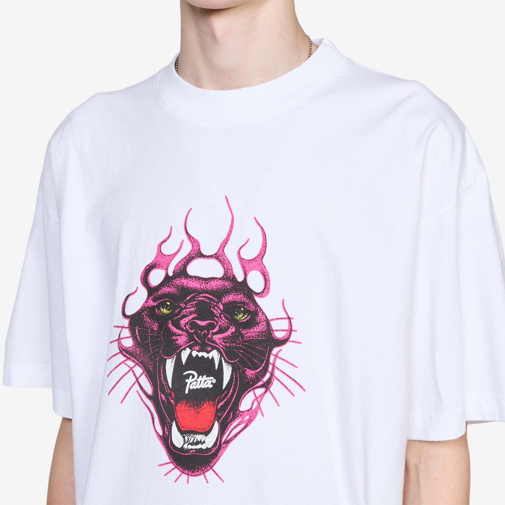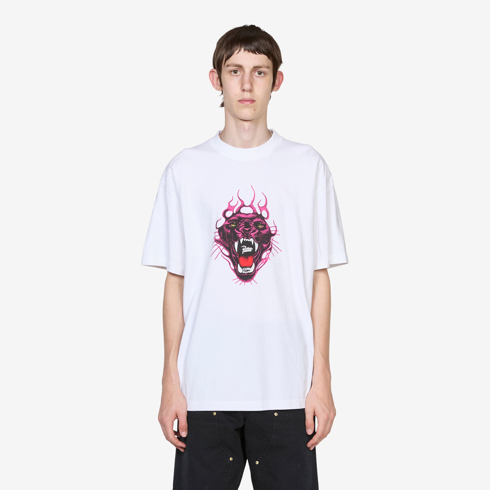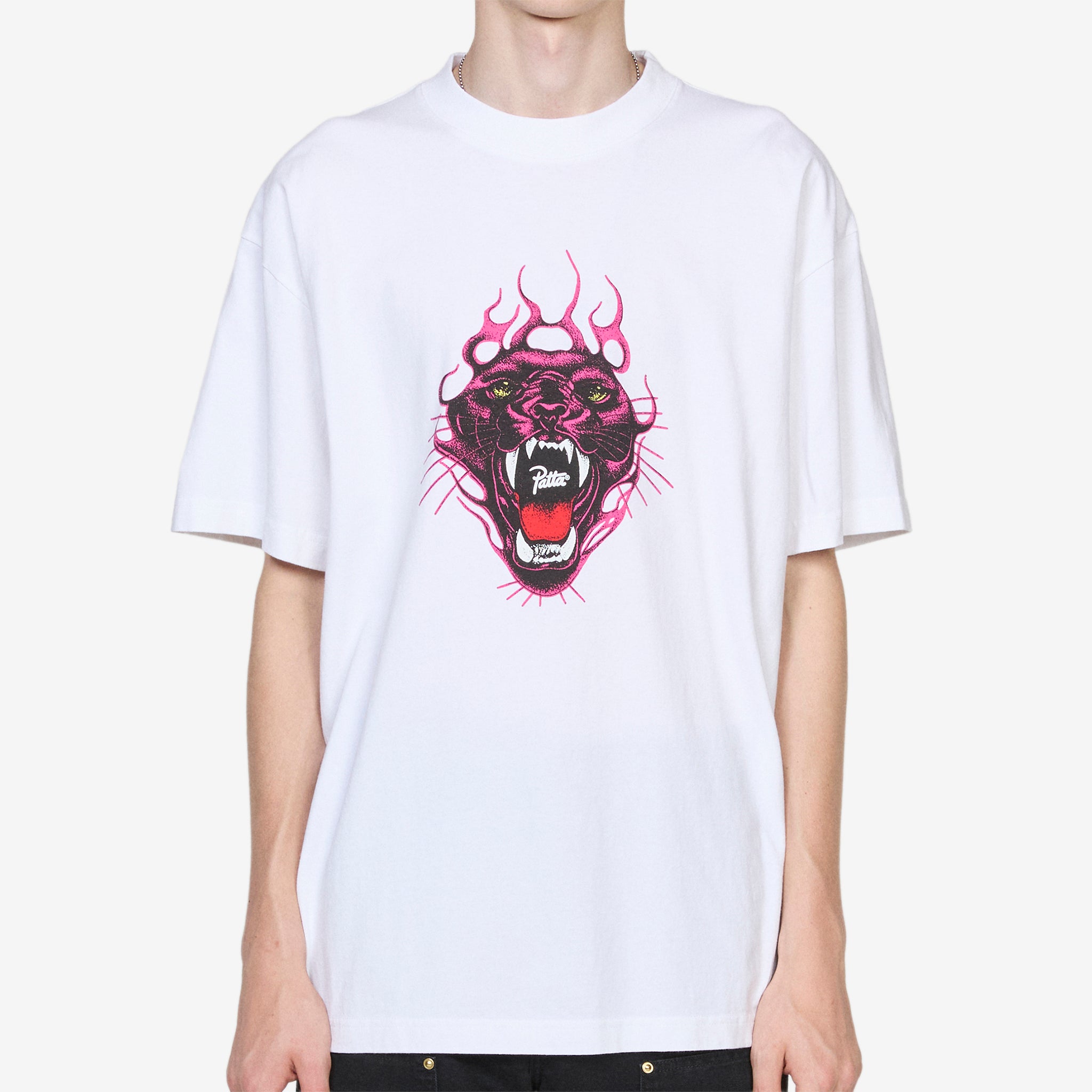 Fire Panther T-Shirt in White from Patta. Relaxed fit t-shirt with a ribbed crew neckline. Crafted from cotton jersey and finished with a printed graphic at the chest.