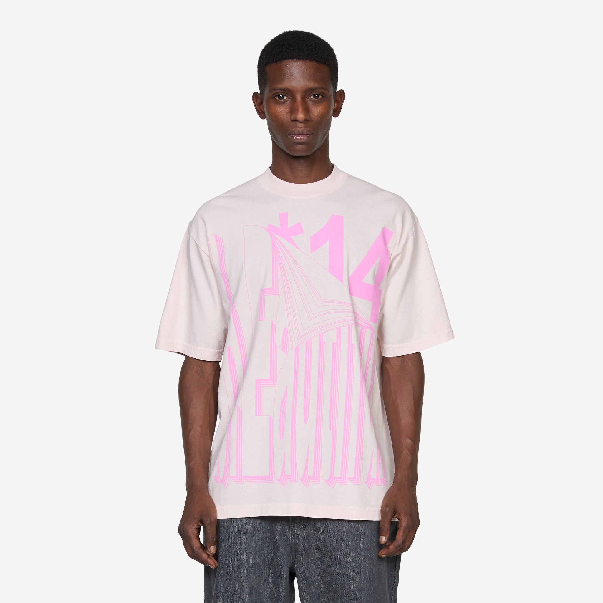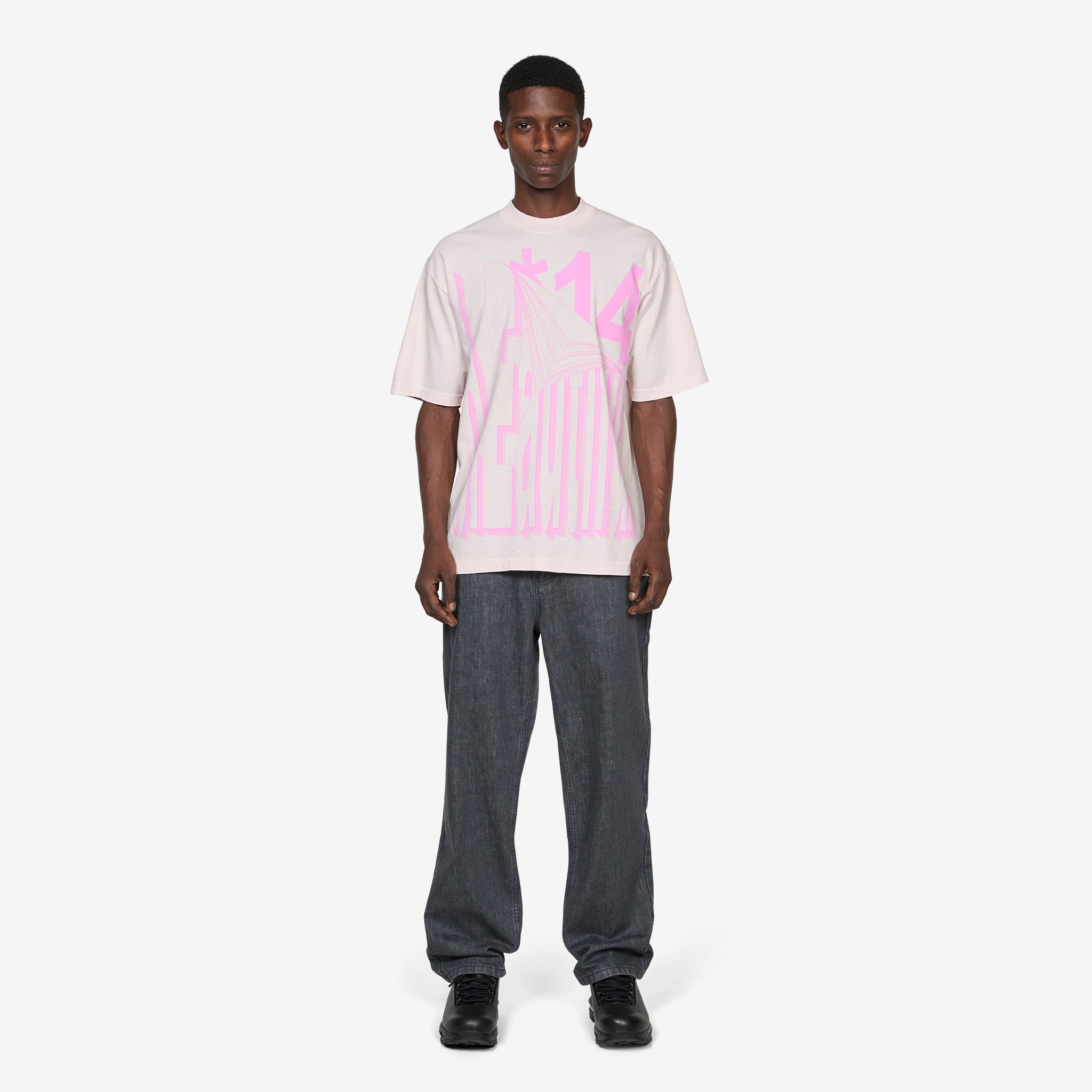 Flip T-Shirt in Light Pink from b.Eautiful. Relaxed fit t-shirt with a ribbed crew neckline. Crafted from 6.5oz garment-dyed cotton and finished with a printed graphic across the front.