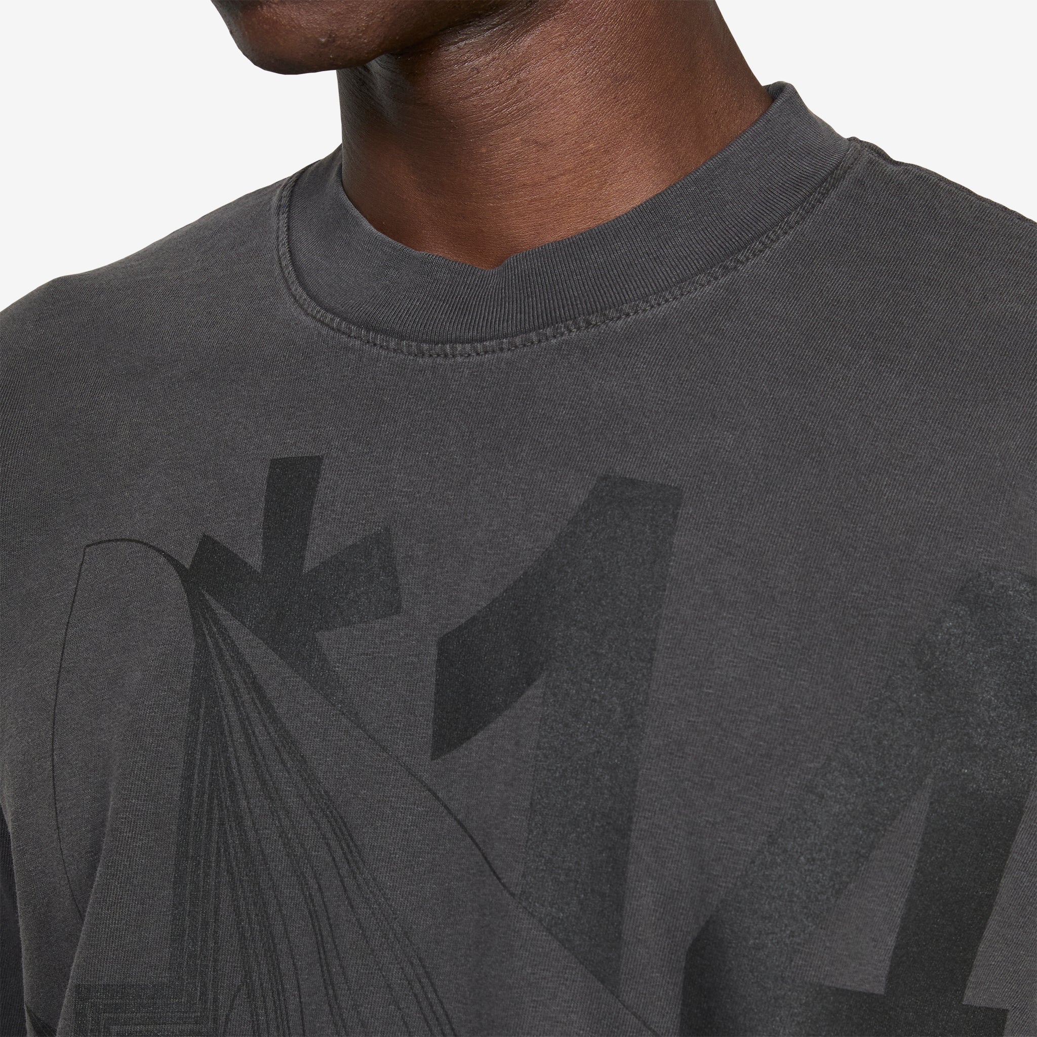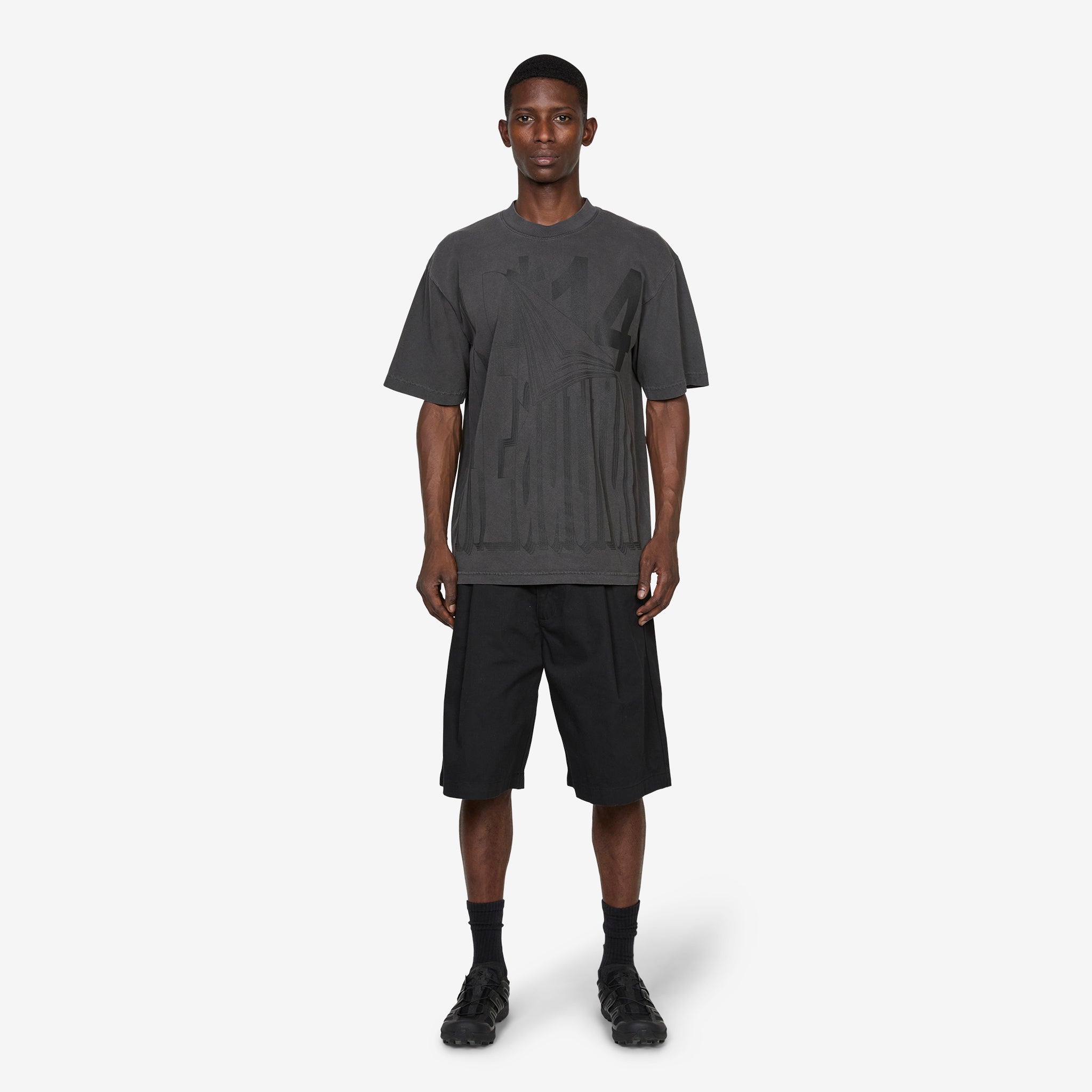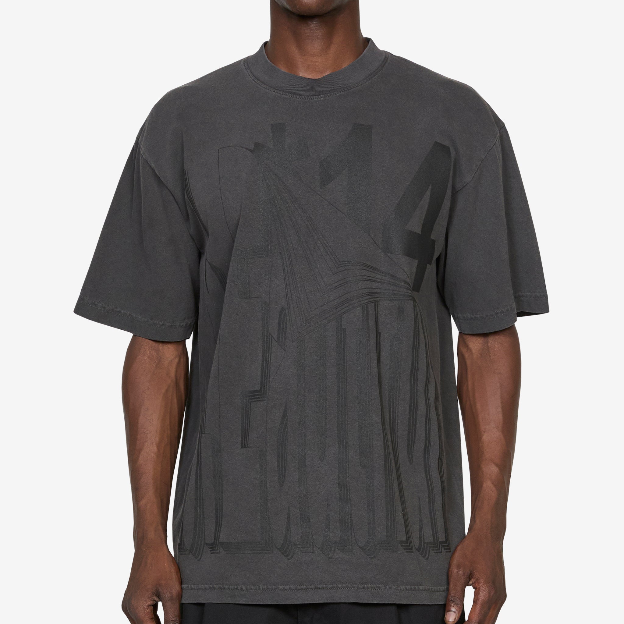 Flip T-Shirt in Vintage Black from b.Eautiful. Relaxed fit t-shirt with a ribbed crew neckline. Crafted from 6.5oz garment-dyed cotton and finished with a printed graphic across the front.