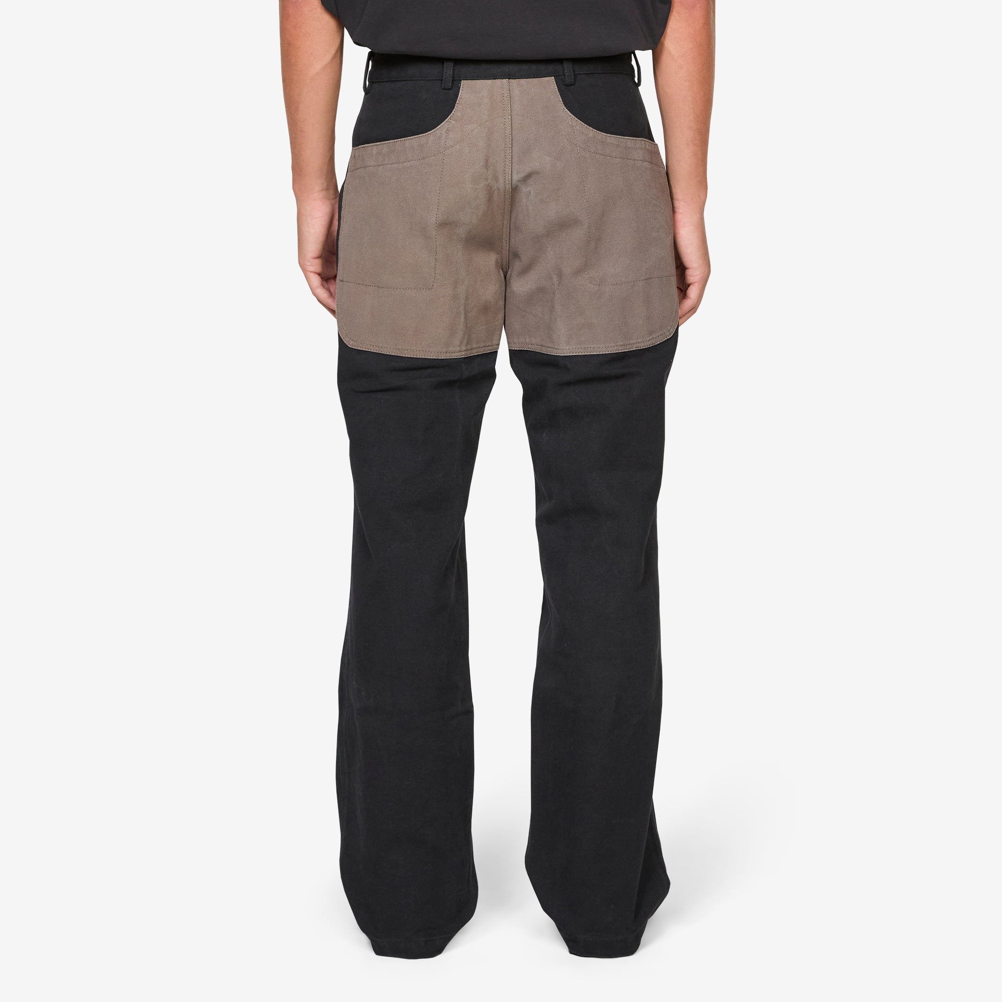 Fomes Double Knee Washed Canvas Pant in Black Grey from ROA. Relaxed fit pants featuring a belt loop waistband and 4 pocket construction with contrast double canvas reinforcements at the front and back. Crafted from a washed, garment-treated heavyweight cotton canvas. Finished with embroidered branding at the left knee.