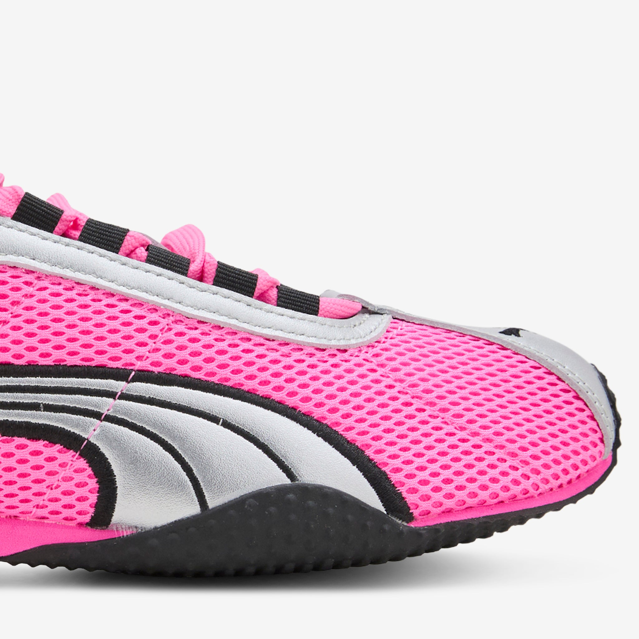 Unisex H-Street OG in Poison Pink and PUMA Silver from Puma. Inspired by the 2000s Puma Harambe running spike, the H-Street OG fuses sprinting heritage with street DNA. Featuring a lightweight mesh upper with metallic synthetic overlays and textile lining. Cushioned EVA midsole provides all-day support while the moulded footbed and rubbed outsole offer durable stability. Finished with embroidered branding throughout.