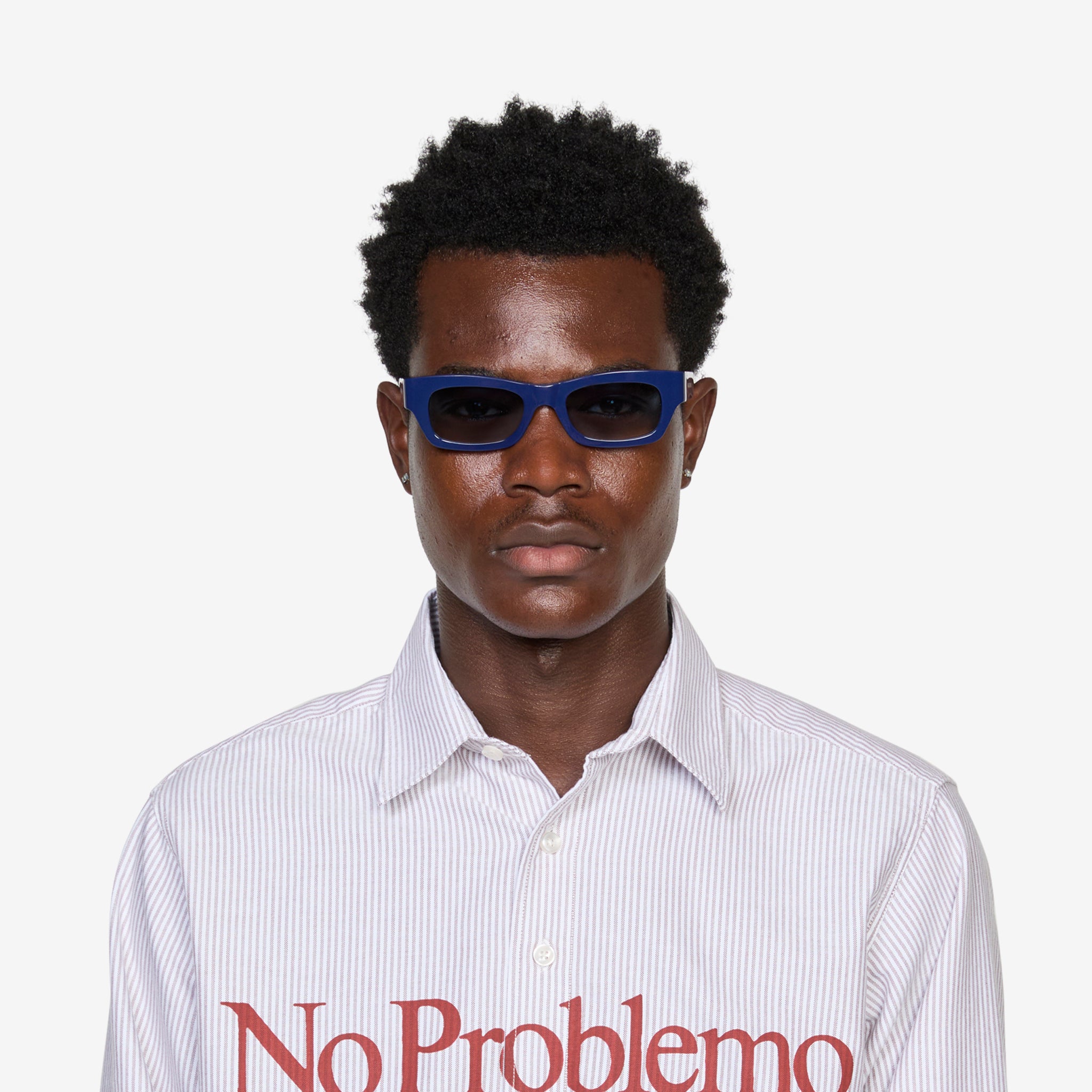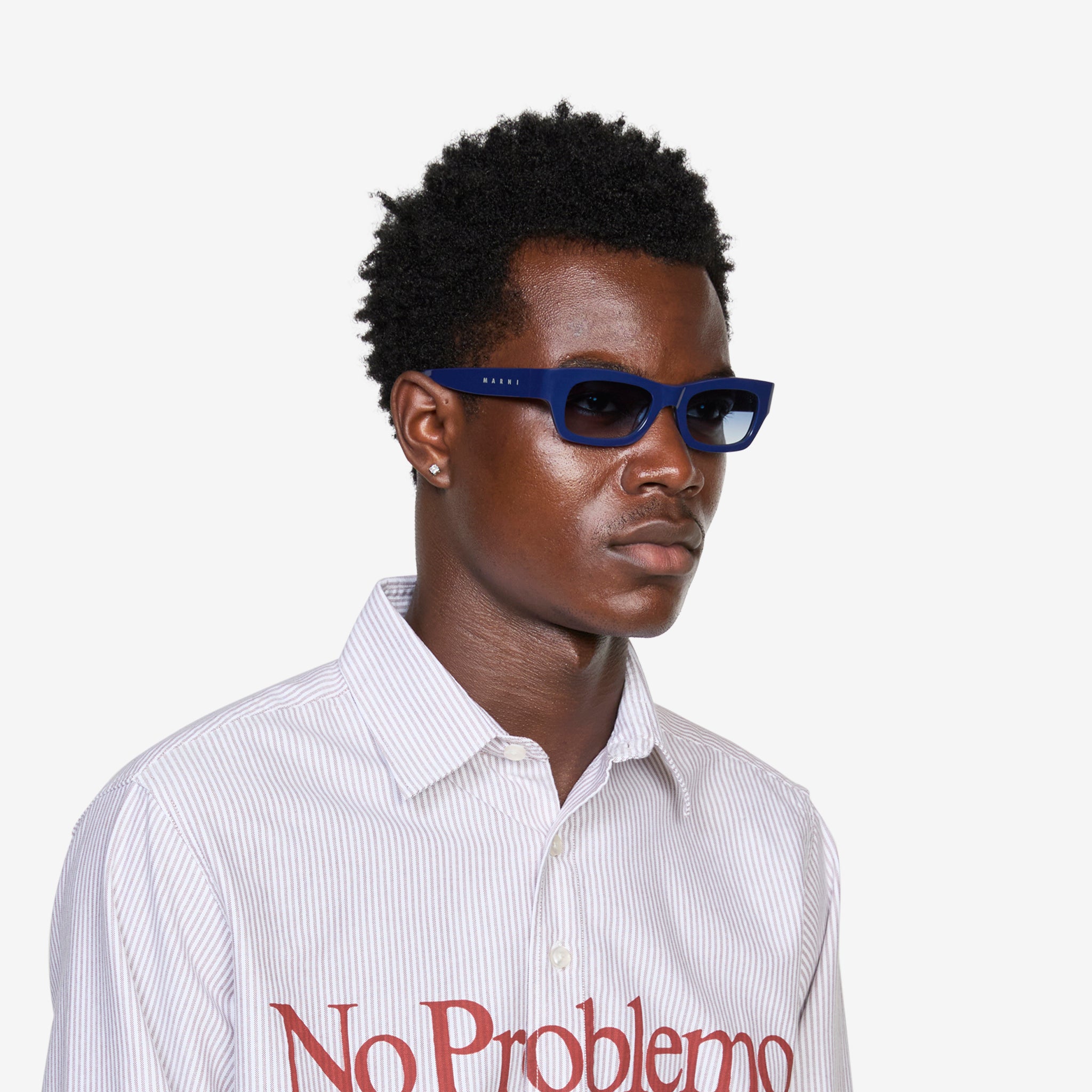 Haicli in Deep Blue from Marni. Produced in collaboration with Retrosuperfuture, these sunglasses feature a high grade acetate frame with Carl Zeiss base 4 lenses. Printed Marni branding at the temples. Comes with a collaborative colour-blocked case.