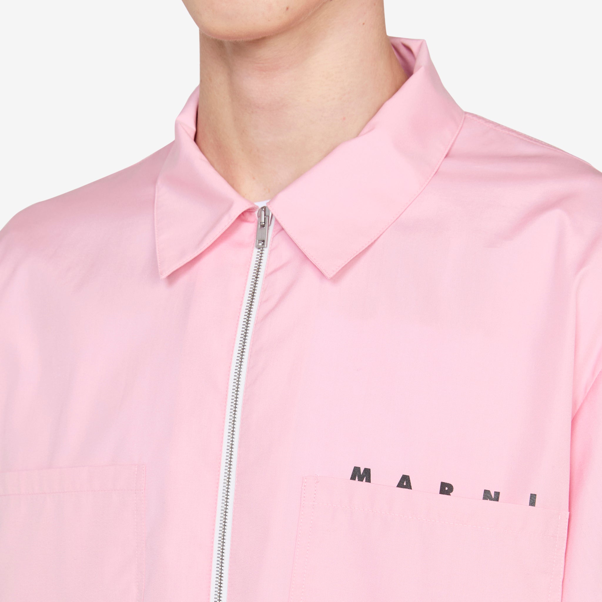 Hidden Logo Zip Shirt in Peony from Marni. Boxy-fit shirt with a spread collar, full-zip closure, buttoned cuffs and two chest pockets. Crafted from an organic cotton poplin and finished with a printed Marni logo hidden within the left chest pocket.