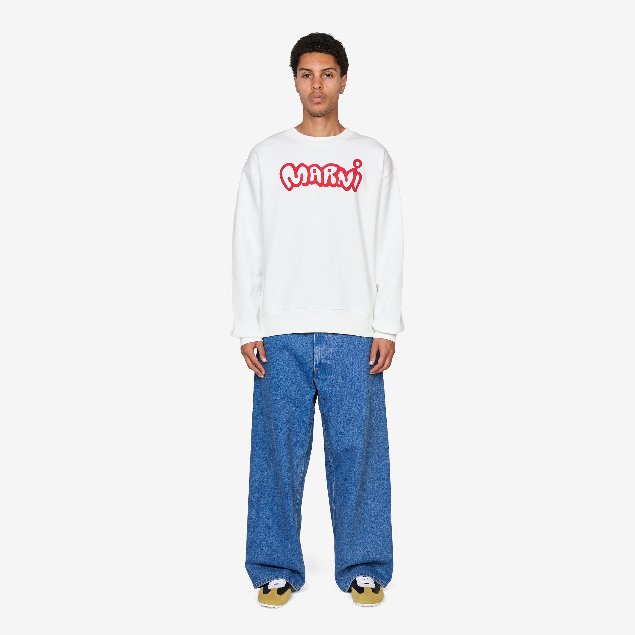 Logo Print Sweatshirt in Natural White from Marni. Relaxed fit sweatshirt with a crew neckline and ribbed trims. Crafted from premium cotton. Finished with printed branding across the chest.