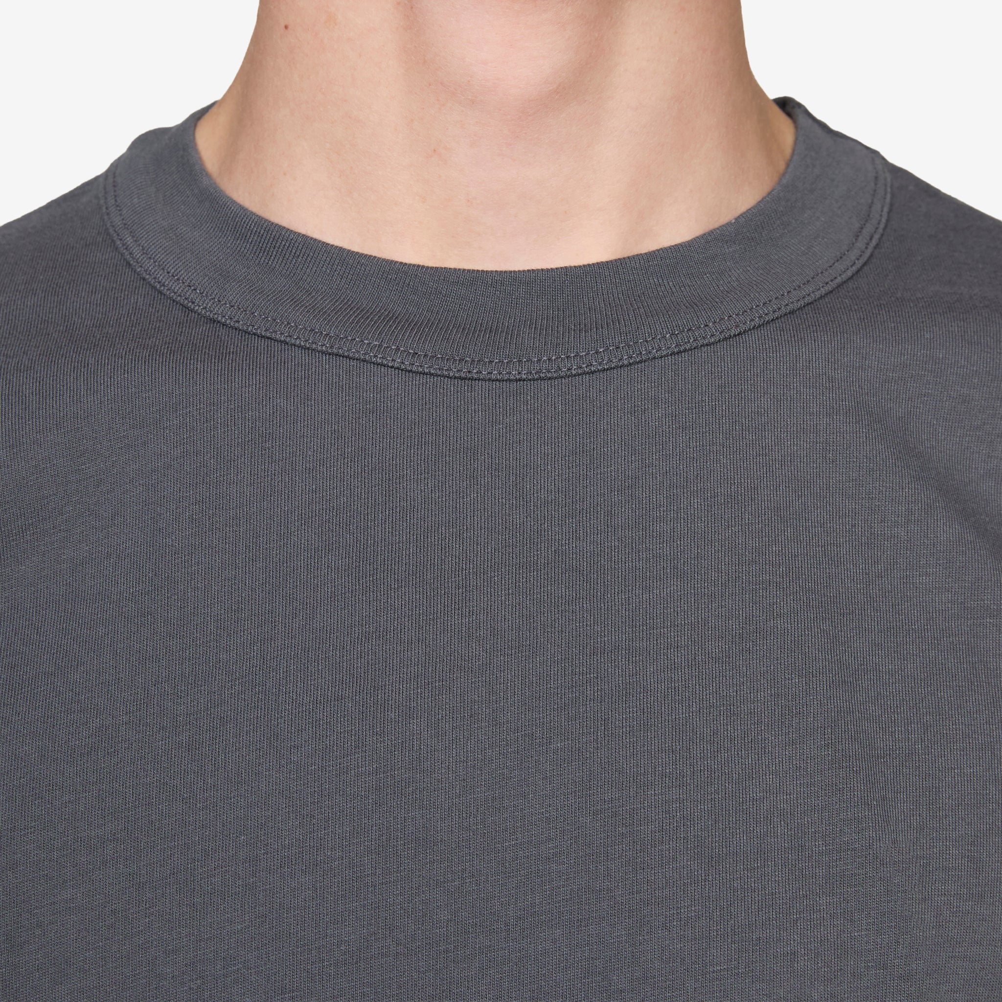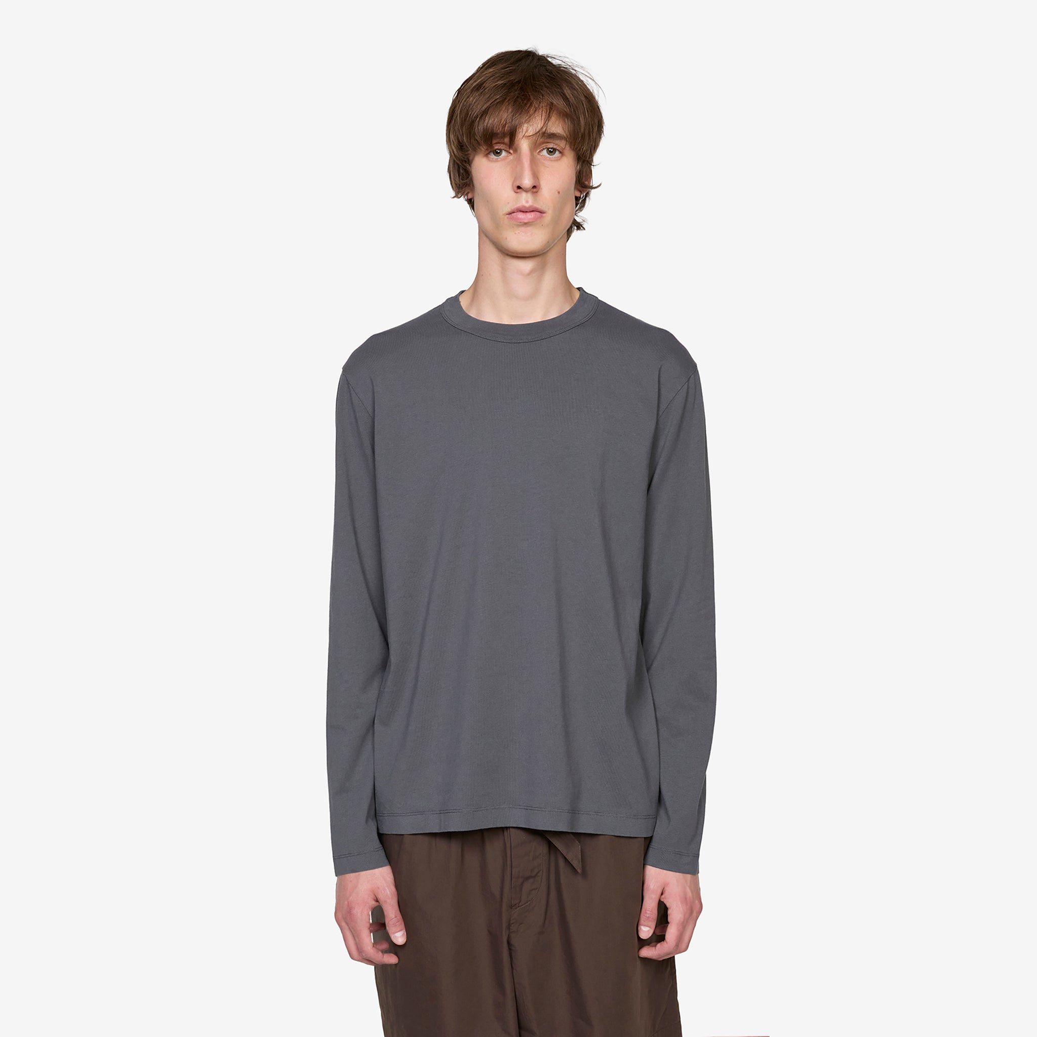 Longsleeve Sleeping T-Shirt in Washed Black from Tekla. Designed for moments of comfort throughout the day or night. Relaxed, unisex fit t-shirt with a longline silhouette, extra long sleeves and ribbed crew neckline. Crafted from mid-heavyweight organic cotton jersey and finished with a woven brand tab at the side.