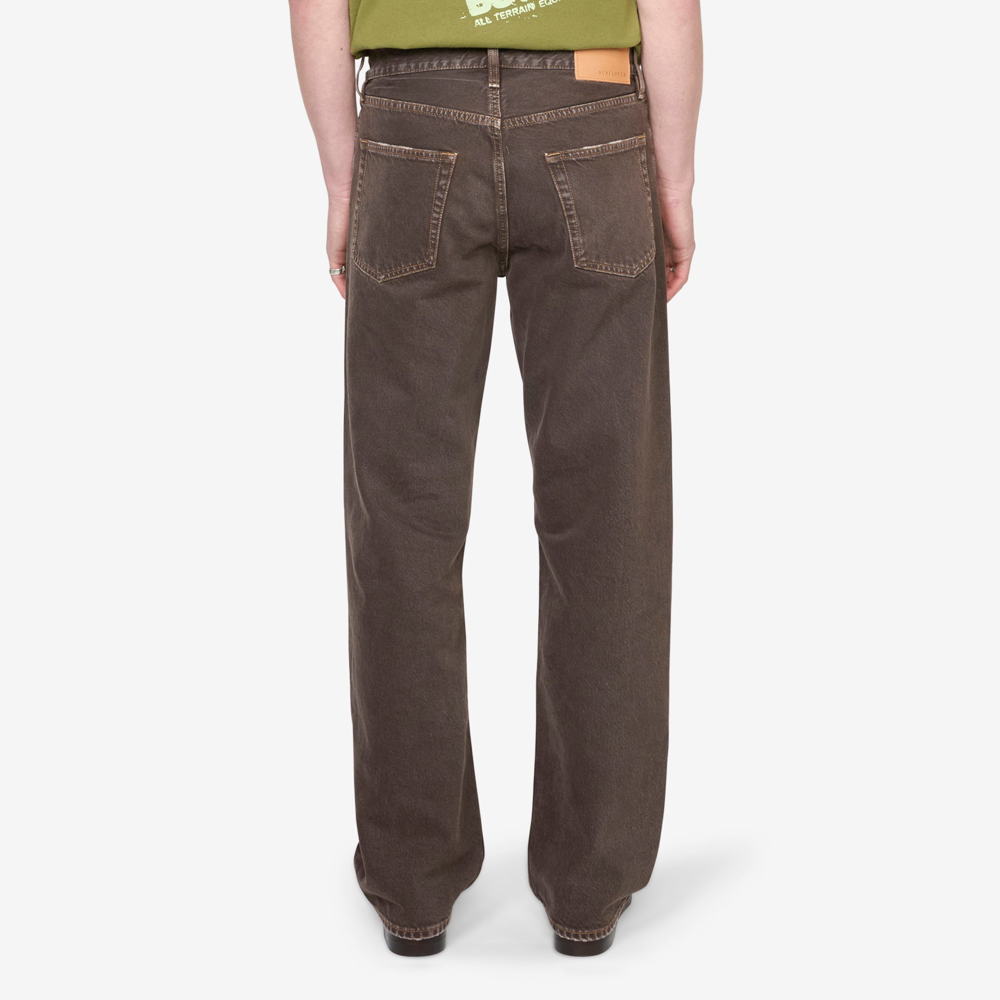Loose Jeans in Vintage Brown from Sunflower. Relaxed cut straight leg jeans with a belt loop waistband, 5-pocket construction and contrast stitch detailing. Crafted from a garment dyed cotton, which is heavily washed for a worn-in feel. Finished with recycled metal trims and a branded jacron at the rear waistband.