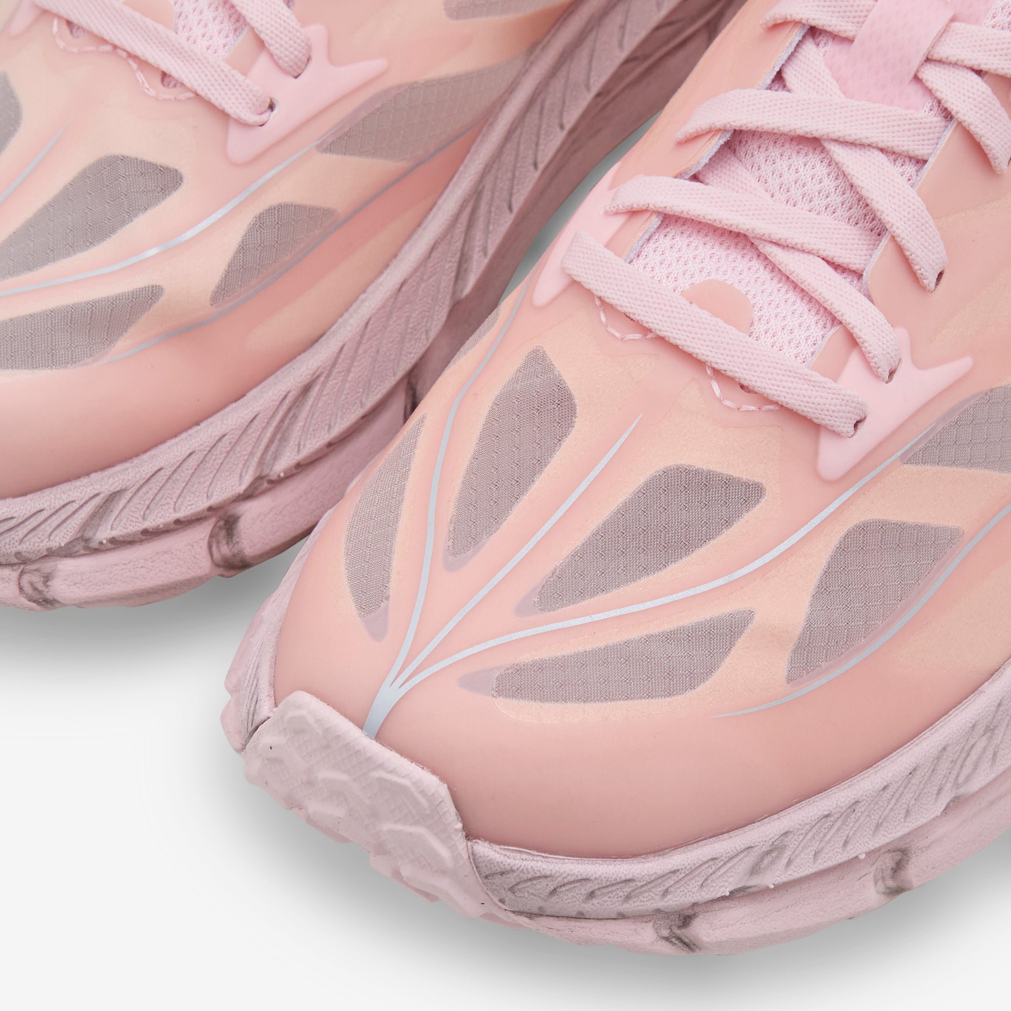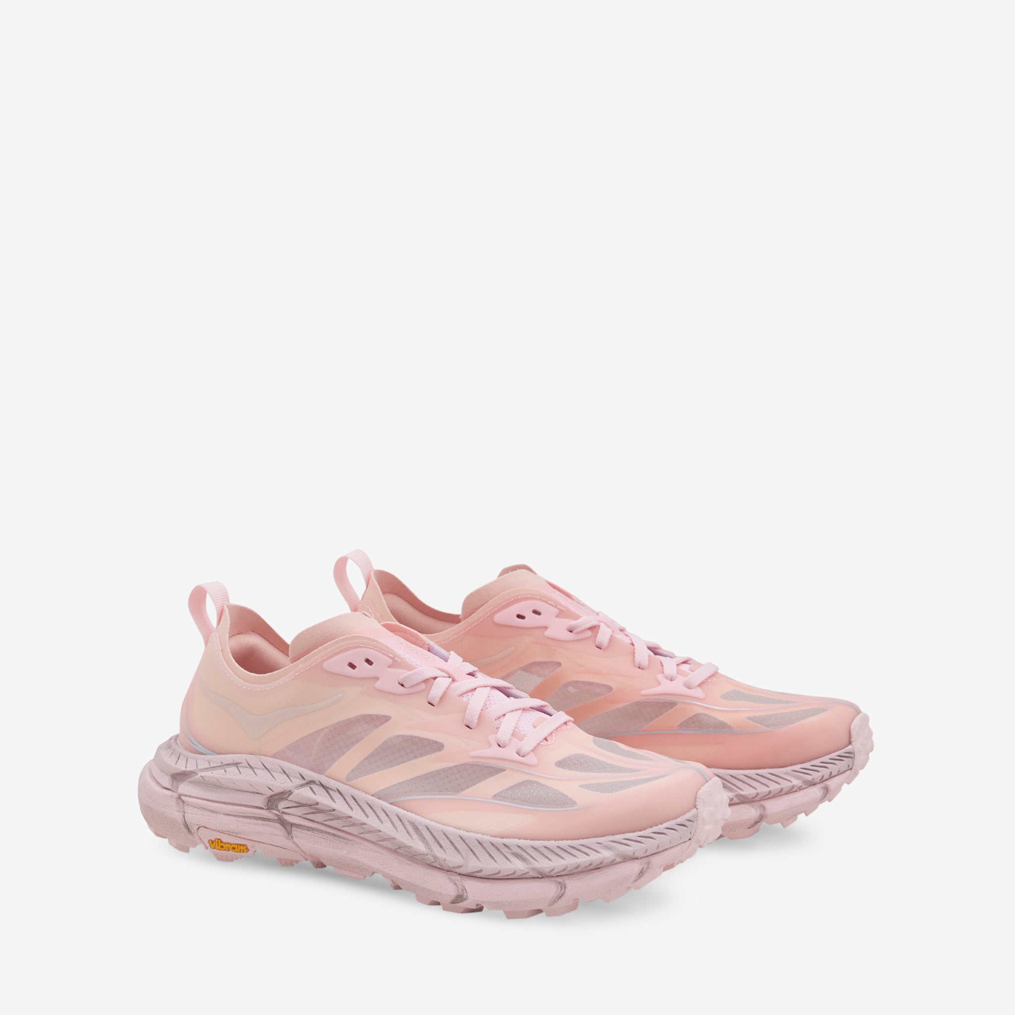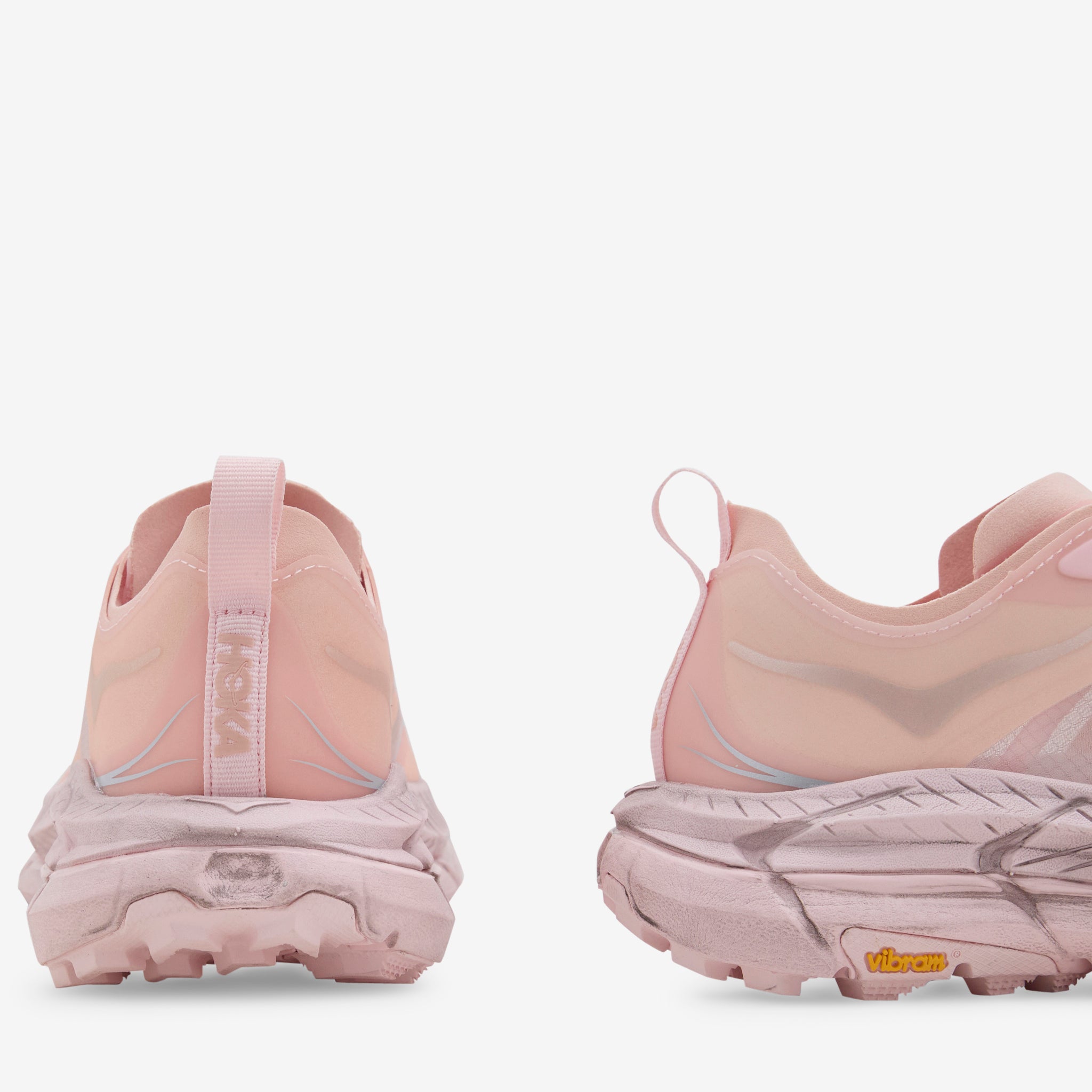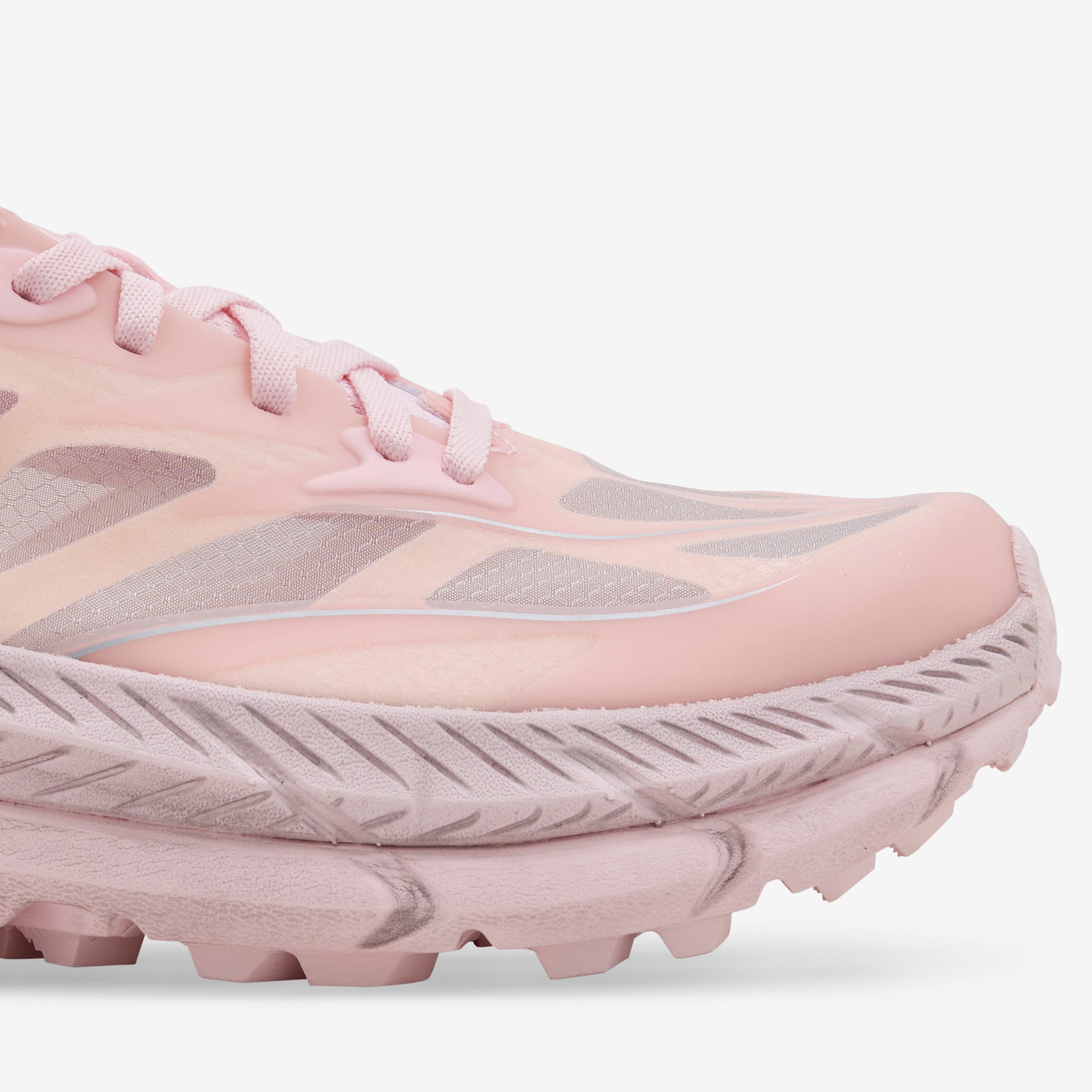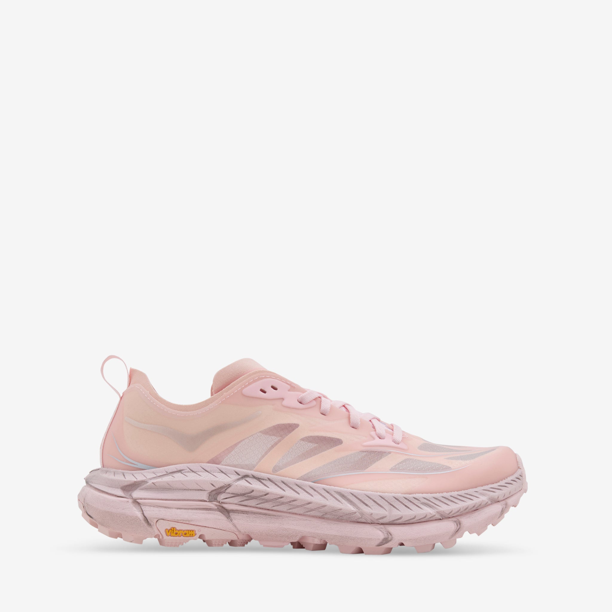 Men's Mafate Speed 4 Lite in Rose Tea and Rose Latte from Hoka. Featherweight transparent upper with a soft microfiber collar and protective ripstop nylon. Mafate Speed 4 base with a ProFly™ midsole for advanced cushioning and a Vibram® Megagrip Traction Lug outsole for durable trail-ready traction.