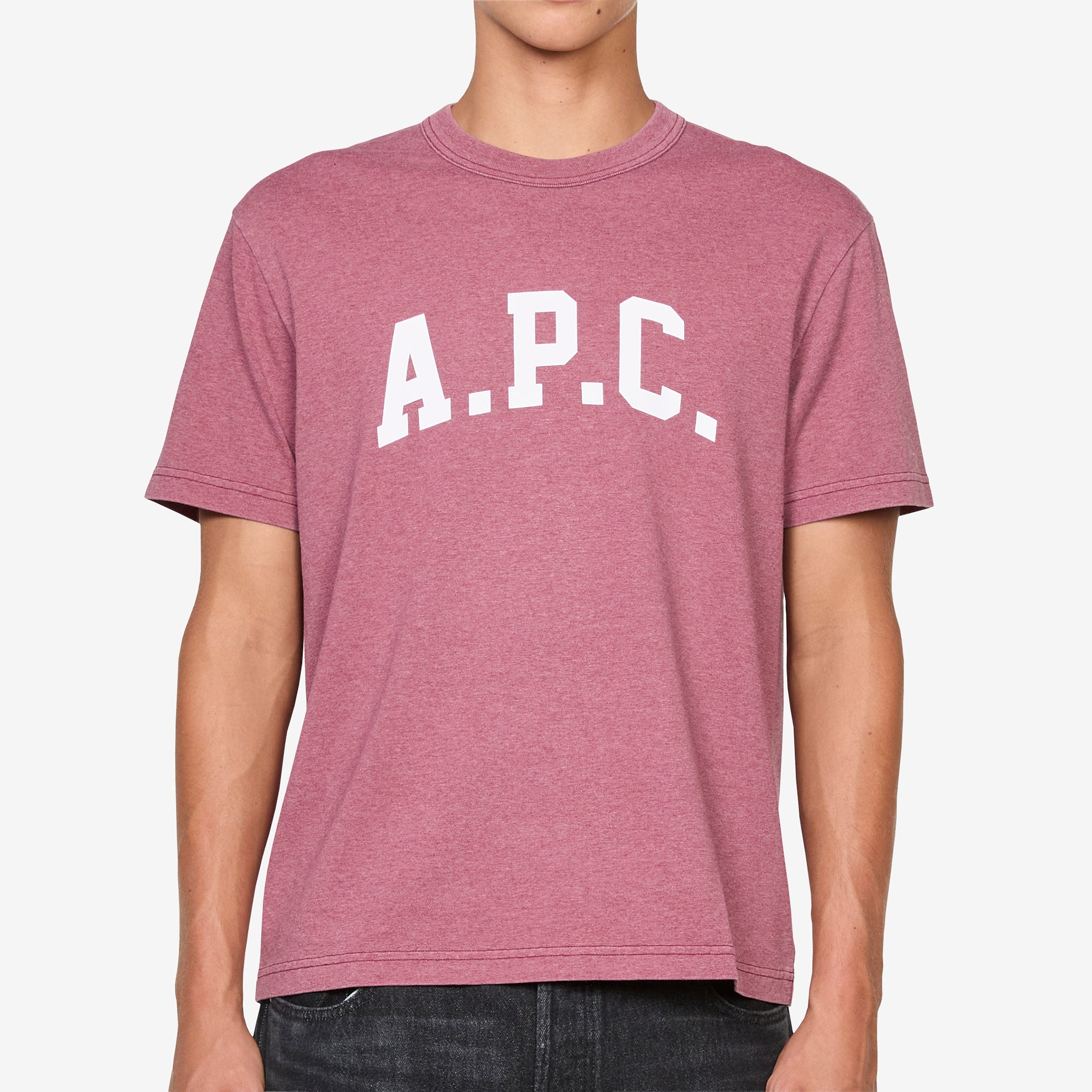 Marcus T-Shirt in Dark Red and White from A.P.C.. Regular fit t-shirt with a ribbed crew neckline. Crafted from organic cotton and finished with printed branding across the chest.
