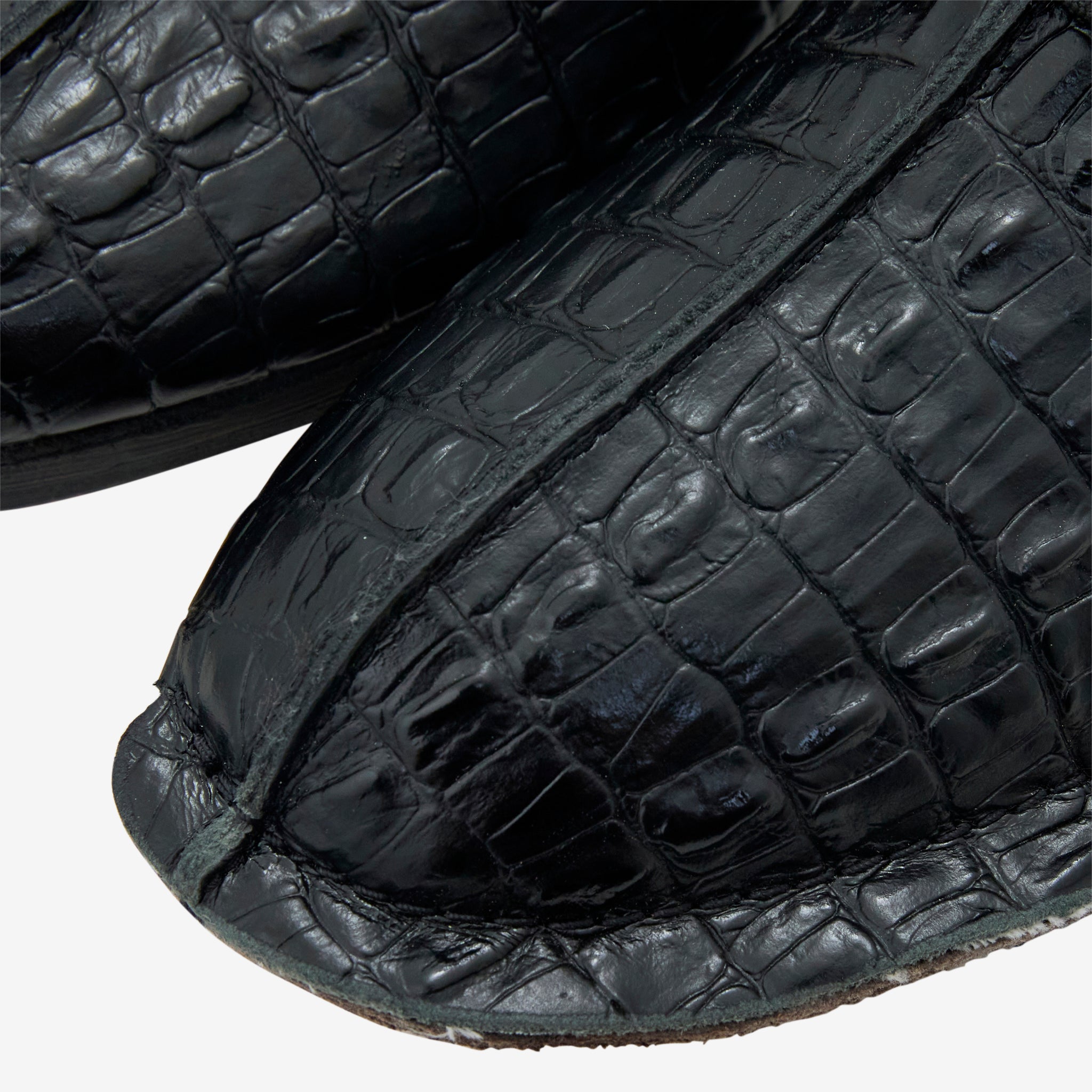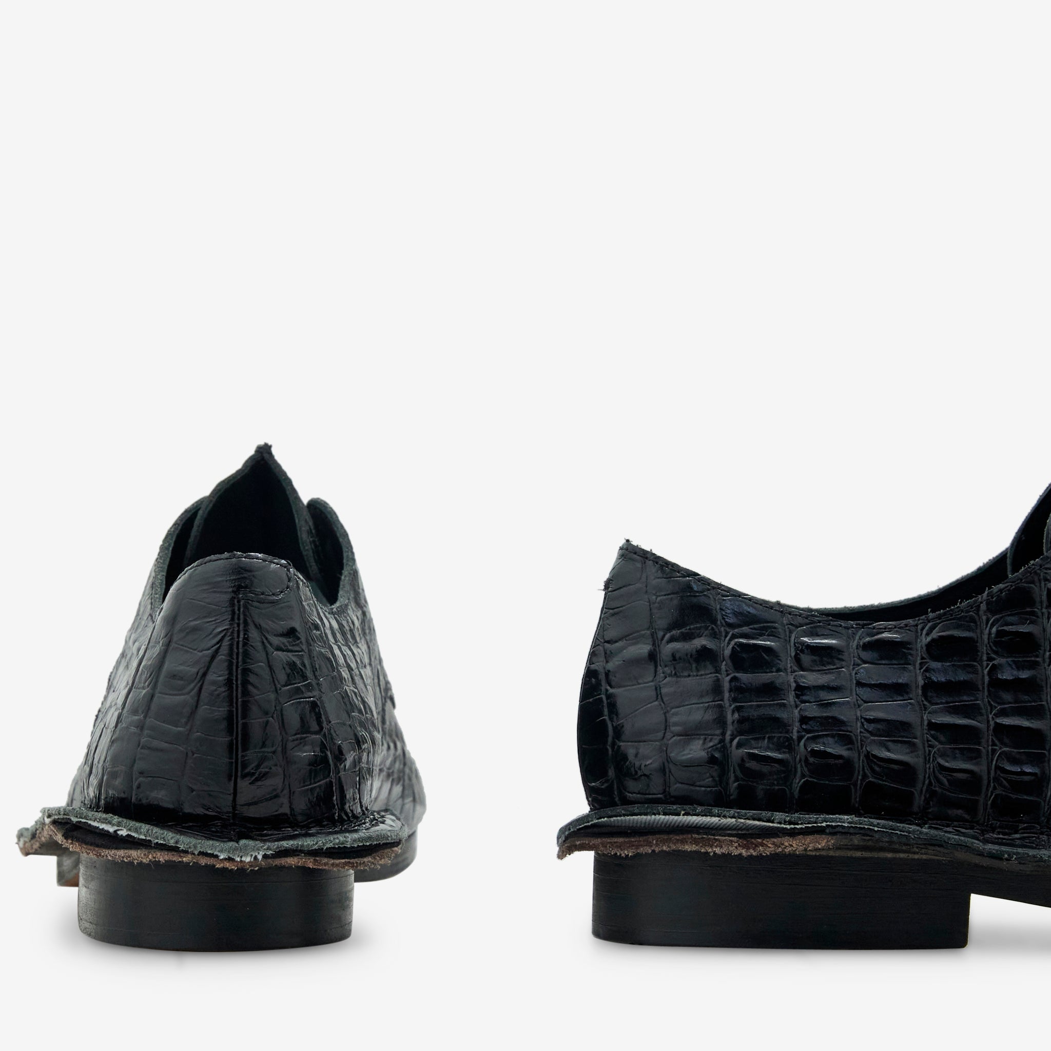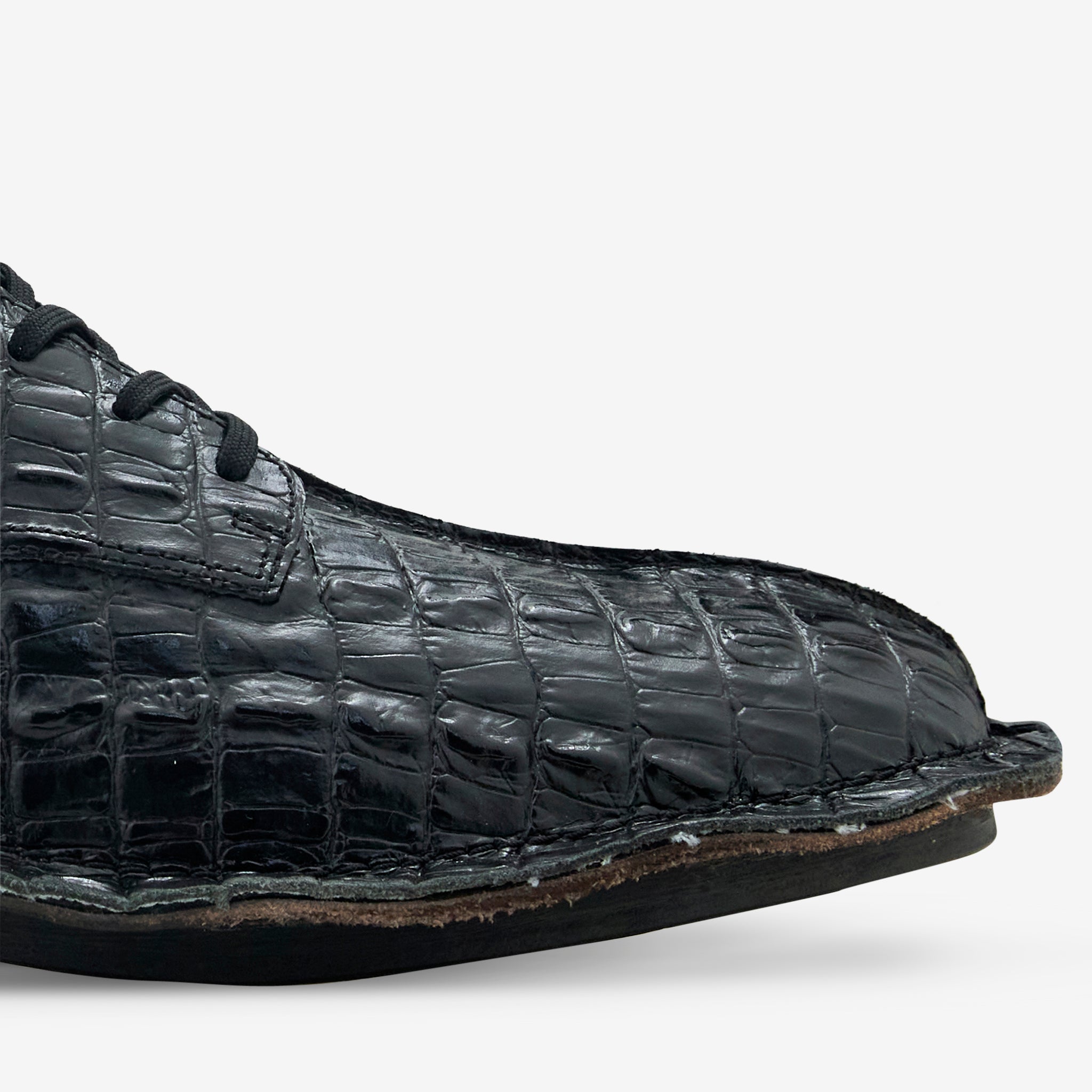 Martine Rose collaborates with Clarks on the Women's Derby in Black Leather. Premium croc-embossed leather upper with centre seam detailing and distressed exposed seams at the midsole. Constructed with durable stitchdown and moccasin construction methods and a stacked leather outsole. Finished with a custom-branded footbed and leather fob.