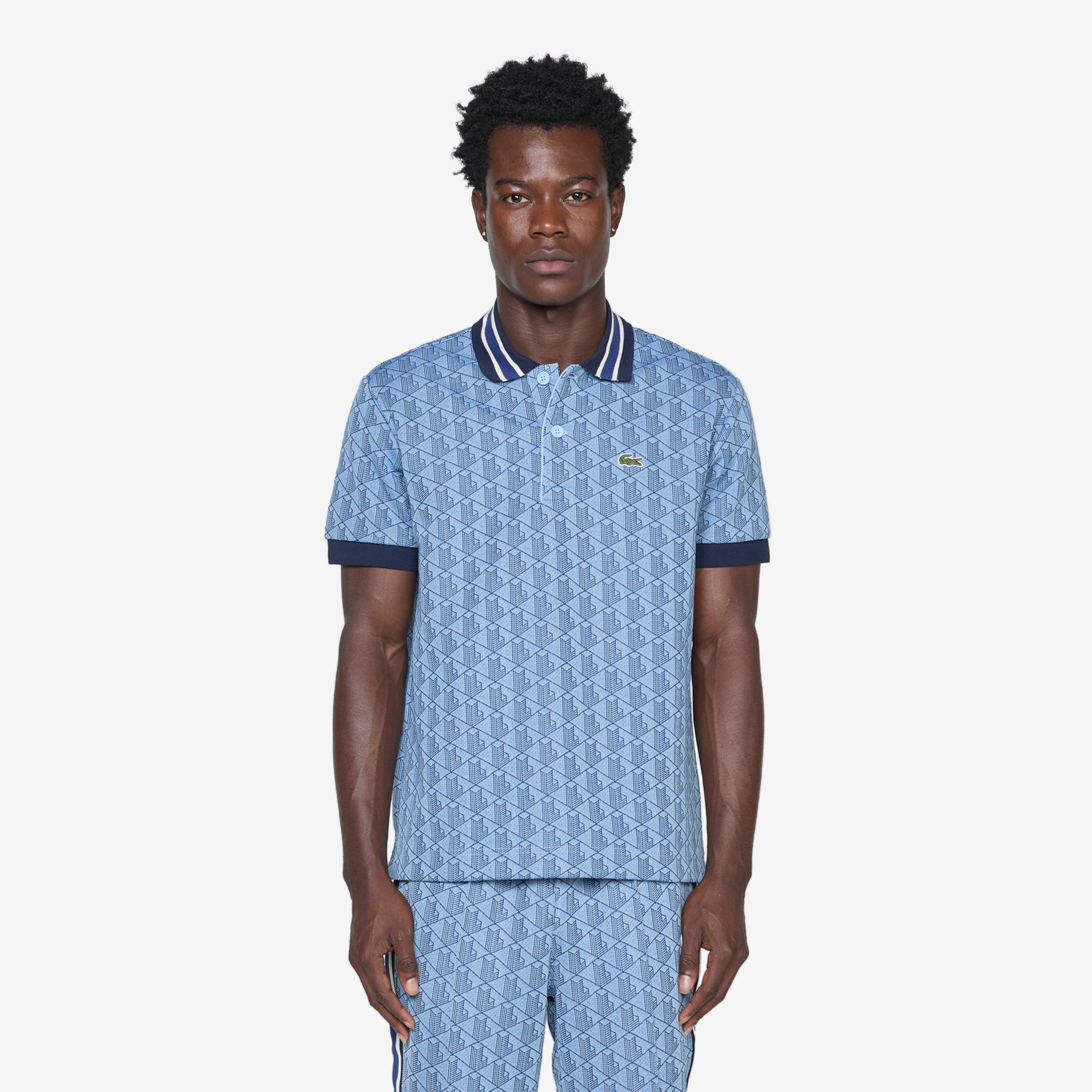 Monogram Polo in Rill and Globe from Lacoste. Regular fit, short sleeve shirt with a ribbed collar and cuffs. Crafted from a cotton blend in an all-over jacquard monogram. Finished with embroidered branding on the chest.