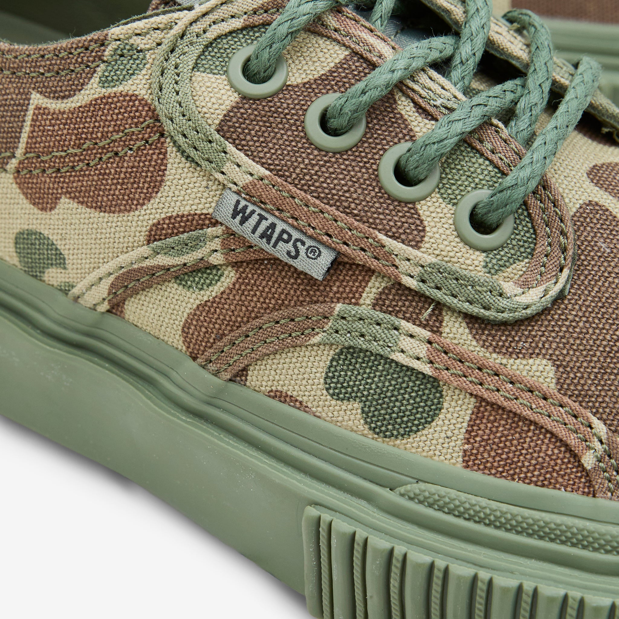 OAMC and WTAPS collaborate with Vans on the Seylynn Lug in Duck Camo. Rugged 12oz duck canvas upper features an all-over camo print, co-branded tongue and thick creeper toe bumper. Sola Foam ADC (All-Day Comfort) insole and military boot inspired v-lug outsole provide comfort and stability. Finished with a co-branded footbed and midsole and dual "Milan" and "Tokyo" lacing options, paying homage to the silhouette's collaborative partners and their cities of operation.