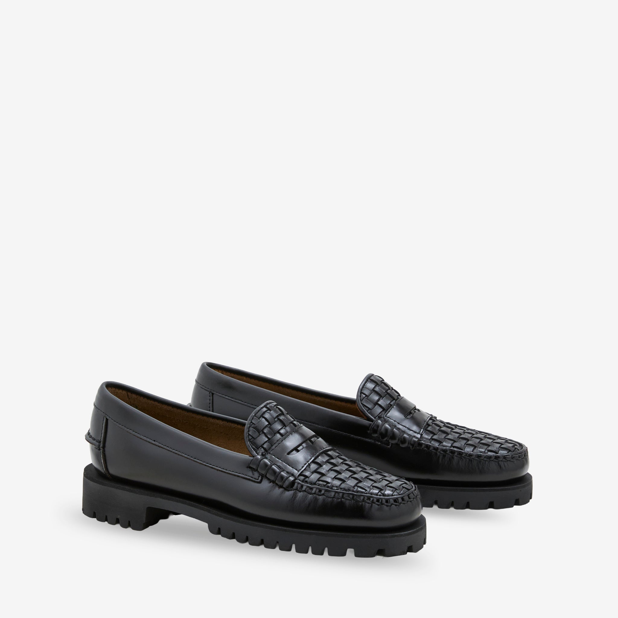 Otis Vamp Lug Black from Sebago. Hand-sewn slip-on loafers with a breathable, unlined upper and comfortable leather sockliner. Tonal woven leather upper. Crafted from smooth corrected-grain leather with a waterproof gum commando sole for durable stability and traction.