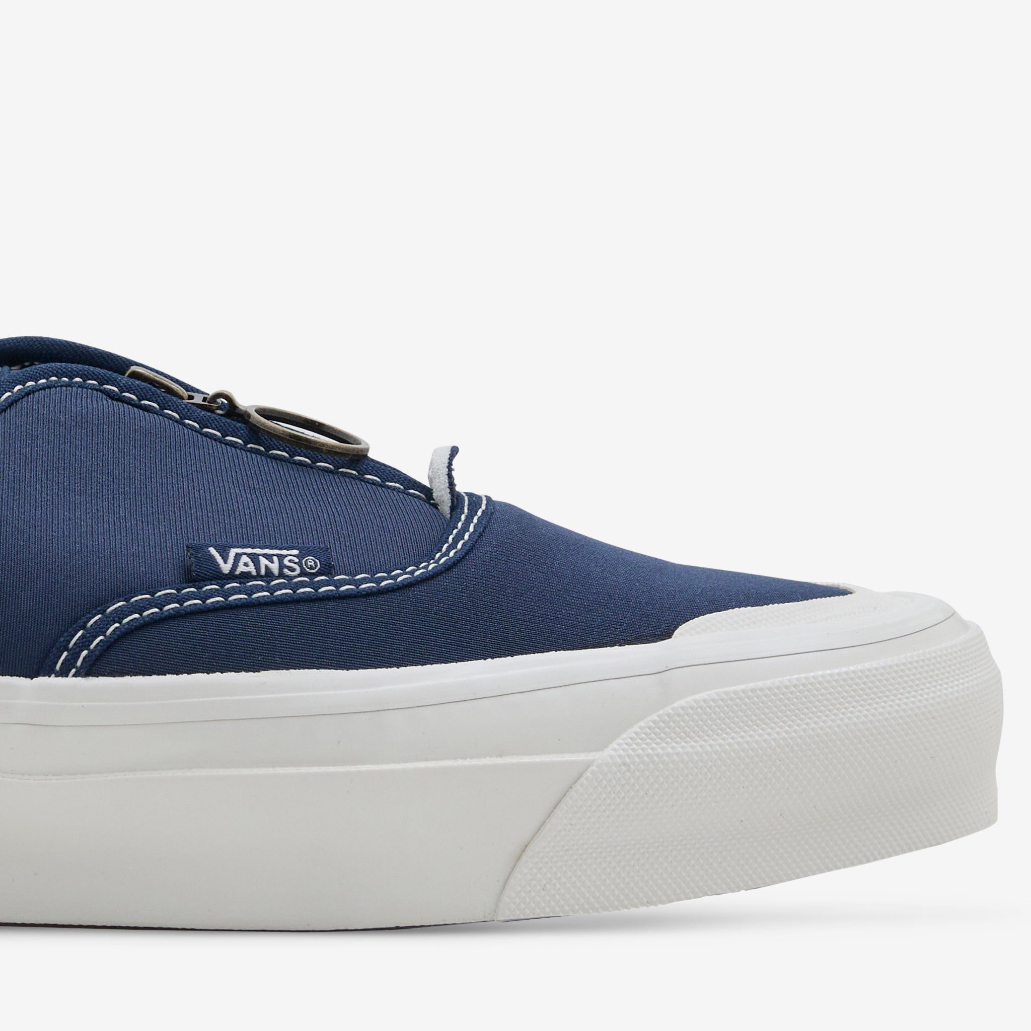 Men's OTW Authentic Zip Vibram in Dress Blues from Vans. Heritage silhouette with a surf-inspired stretch neoprene upper with wetsuit zipper opening. Moulded rubber panels provide durable stability while the Vibram Vulc Tank Tread outsole provides cross-surface traction. Finished with a pull tab at the heel and tonal branding at the vamp.
