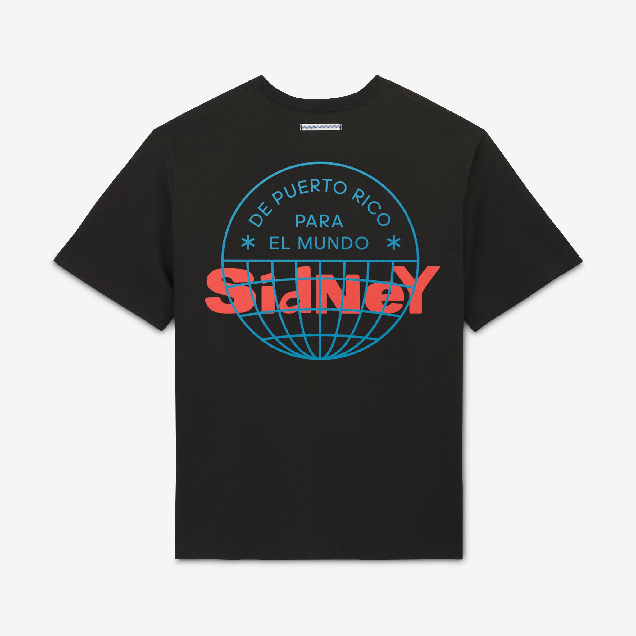 Para Bad Bunny Sidney T-Shirt in Black from adidas Originals. Boxy, oversized fit t-shirt with a ribbed crew neckline and woven collaborative label at the back neck. Crafted from heavyweight single jersey. Finished with collaborative printed branding at the chest, hem and back.