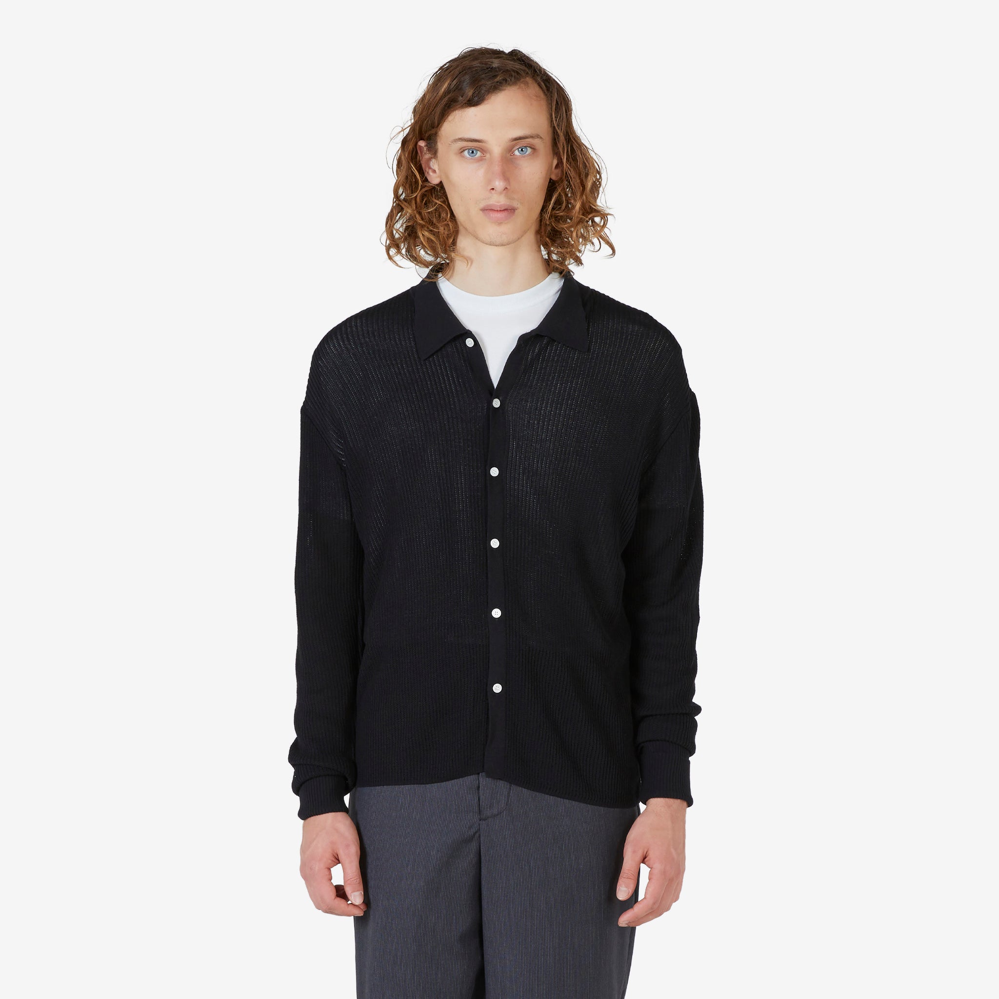 Men's Paul Longsleeve Polo in Black from Soulland. Regular fit longsleeve shirt with a shirting collar, turn-up ribbed cuffs and full button closure. Crafted from high twist tencel.