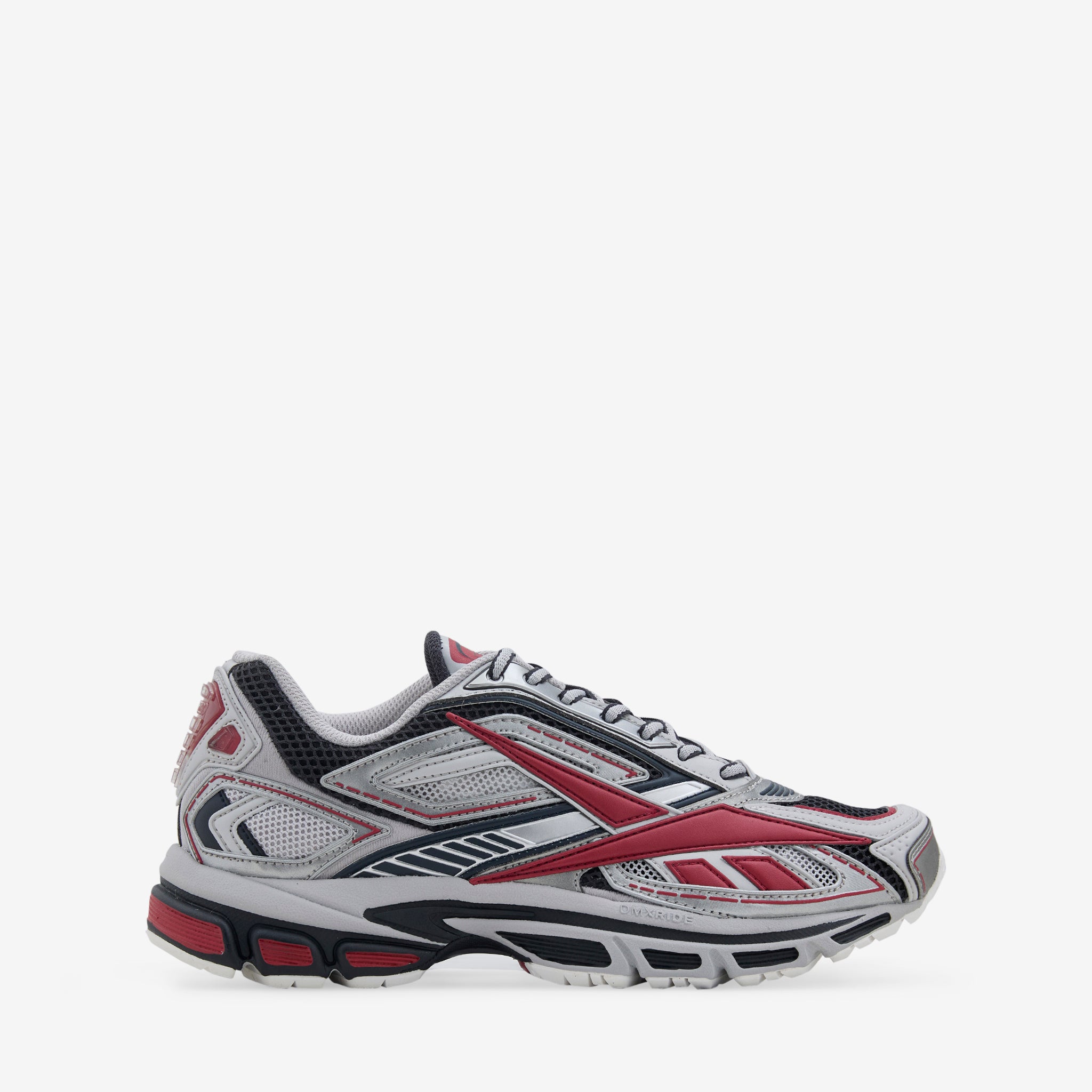 Men's Premier Road Ultra in Red Metallic from Reebok. Panelled synthetic and textile upper with a reinforced toe cap and padded collar and tongue. Dual-density midsole and TPU shank offer stability and comfort. Finished with subtle branding throughout and a rubber outsole for traction.