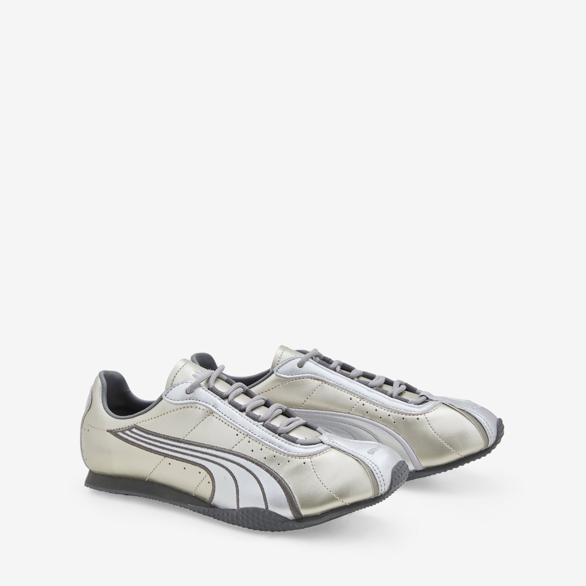Slam Jam collaborates with Puma on the H-Street in Sedate Gray and Stormy Slate. Metallic leather upper with Formstrip and toebox overlays. Cushioned EVA midsole provides all-day support while the moulded footbed and rubbed outsole offer durable stability. Finished with co-branding at the heel, tongue and footbed.