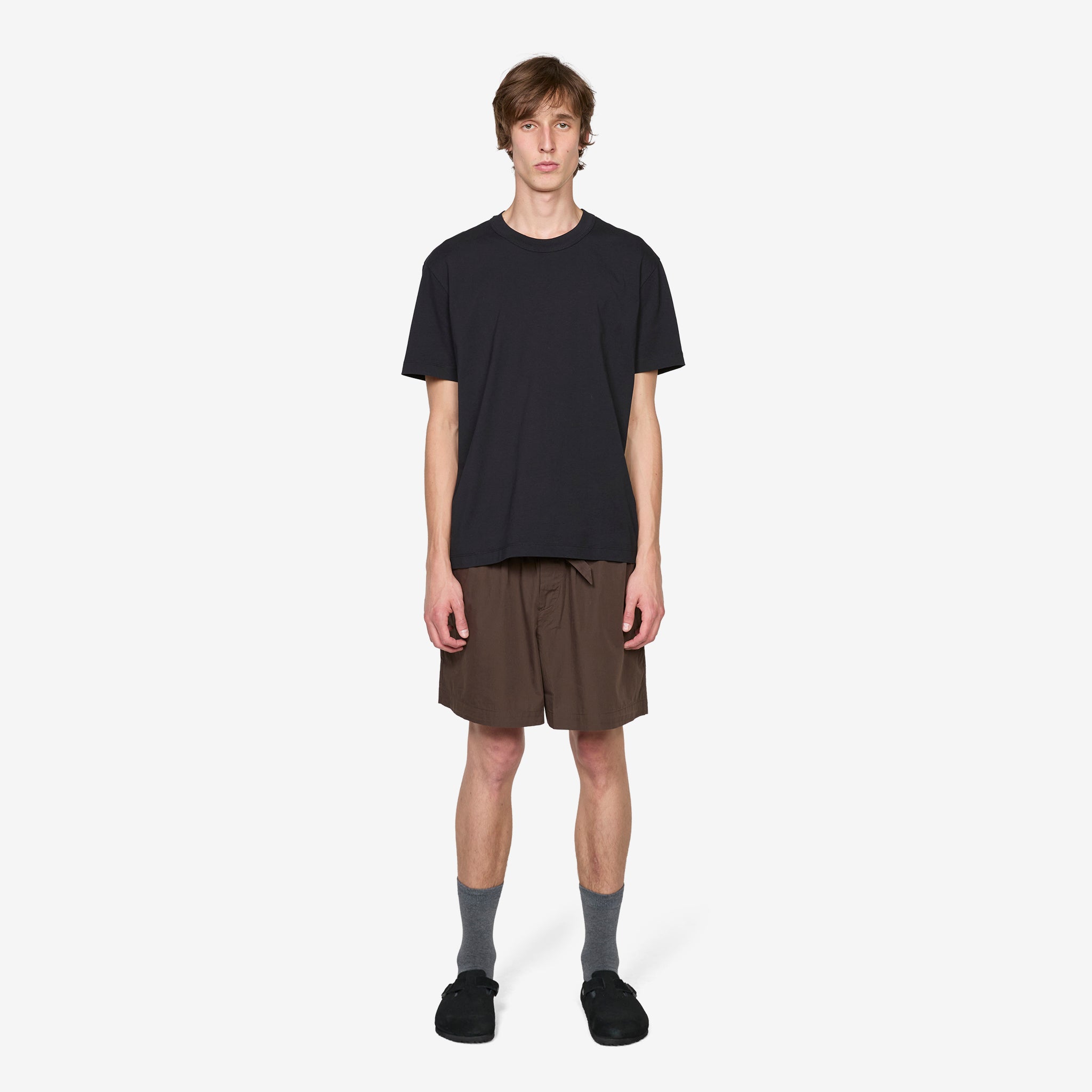 Sleeping T-Shirt in Black from Tekla. Designed for moments of comfort throughout the day or night. Relaxed, unisex fit t-shirt with a longline silhouette and ribbed crew neckline. Crafted from mid-heavyweight organic cotton jersey and finished with a woven brand tab at the side.