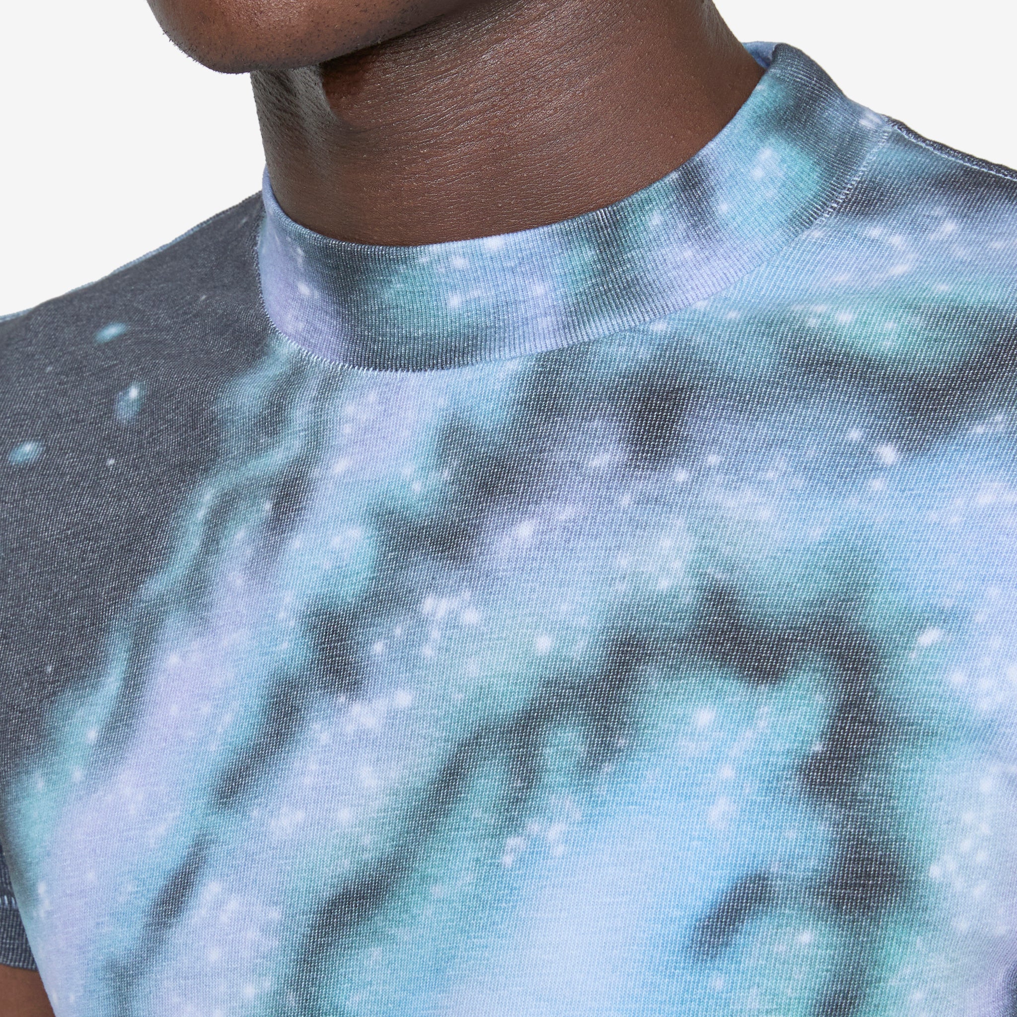 Space T-Shirt in Space Print from ERL. Slim fit t-shirt with a ribbed mock neck. Crafted from a soft premium cotton with an all-over space themed print.