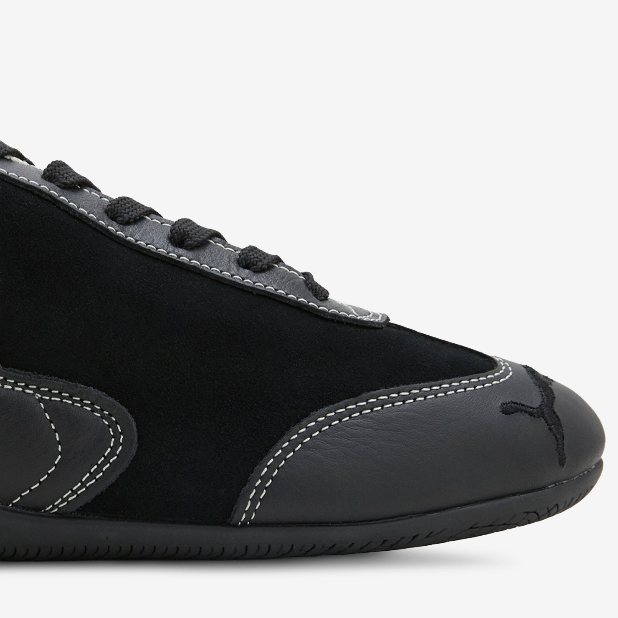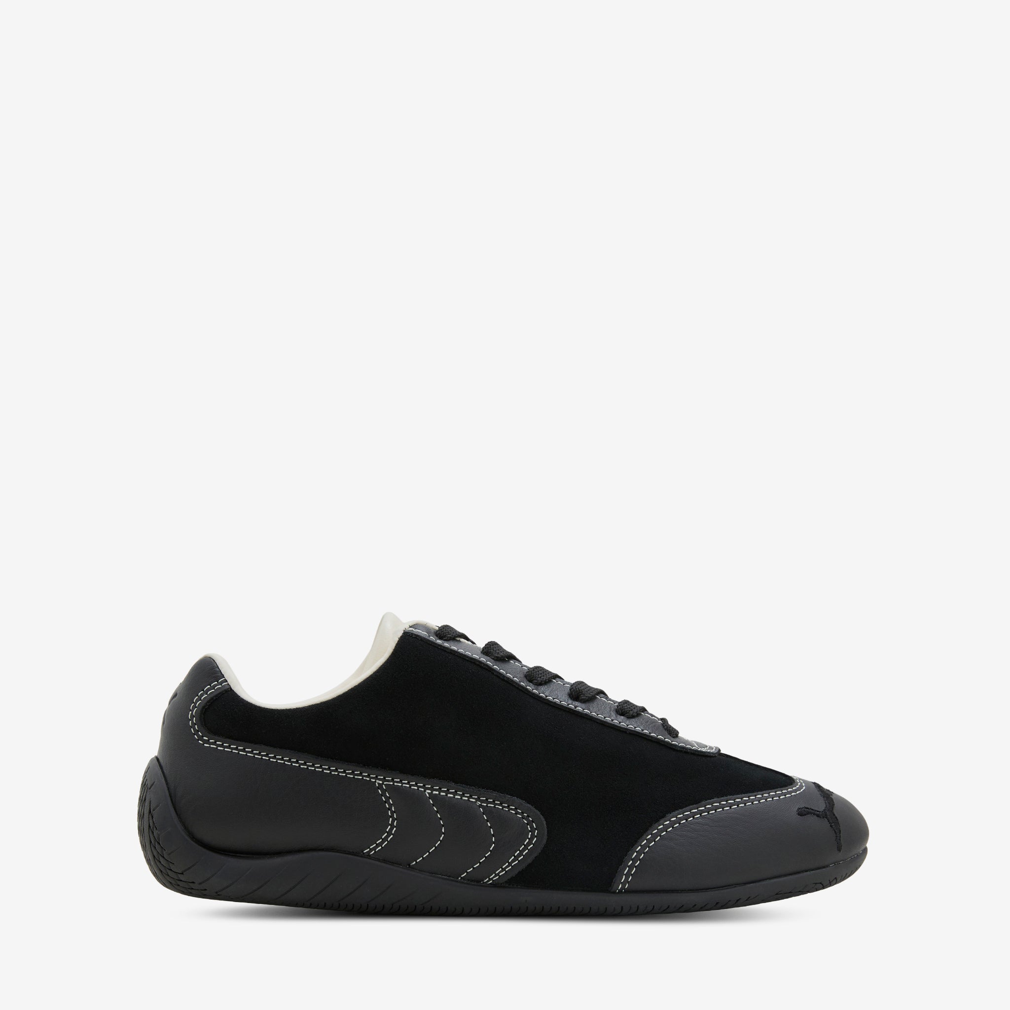 Speedcat Icons in PUMA Black and Frosted Ivory from Puma. Low-profile, race-inspired silhouette crafted with a minamilistic premium suede upper, featuring tonal suede and leather panelling. IMEVA sole provides lightweight comfort. Finished with contrast stitch detailing.