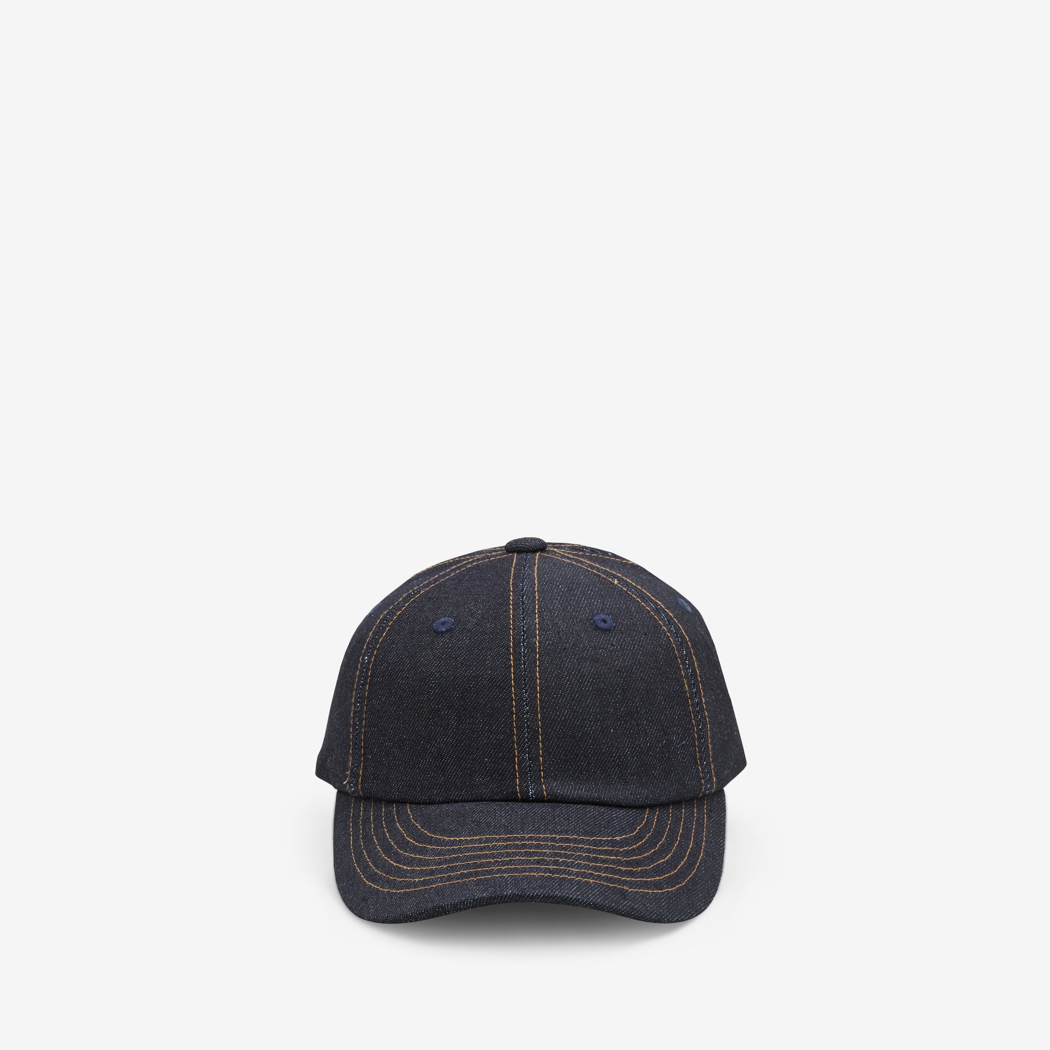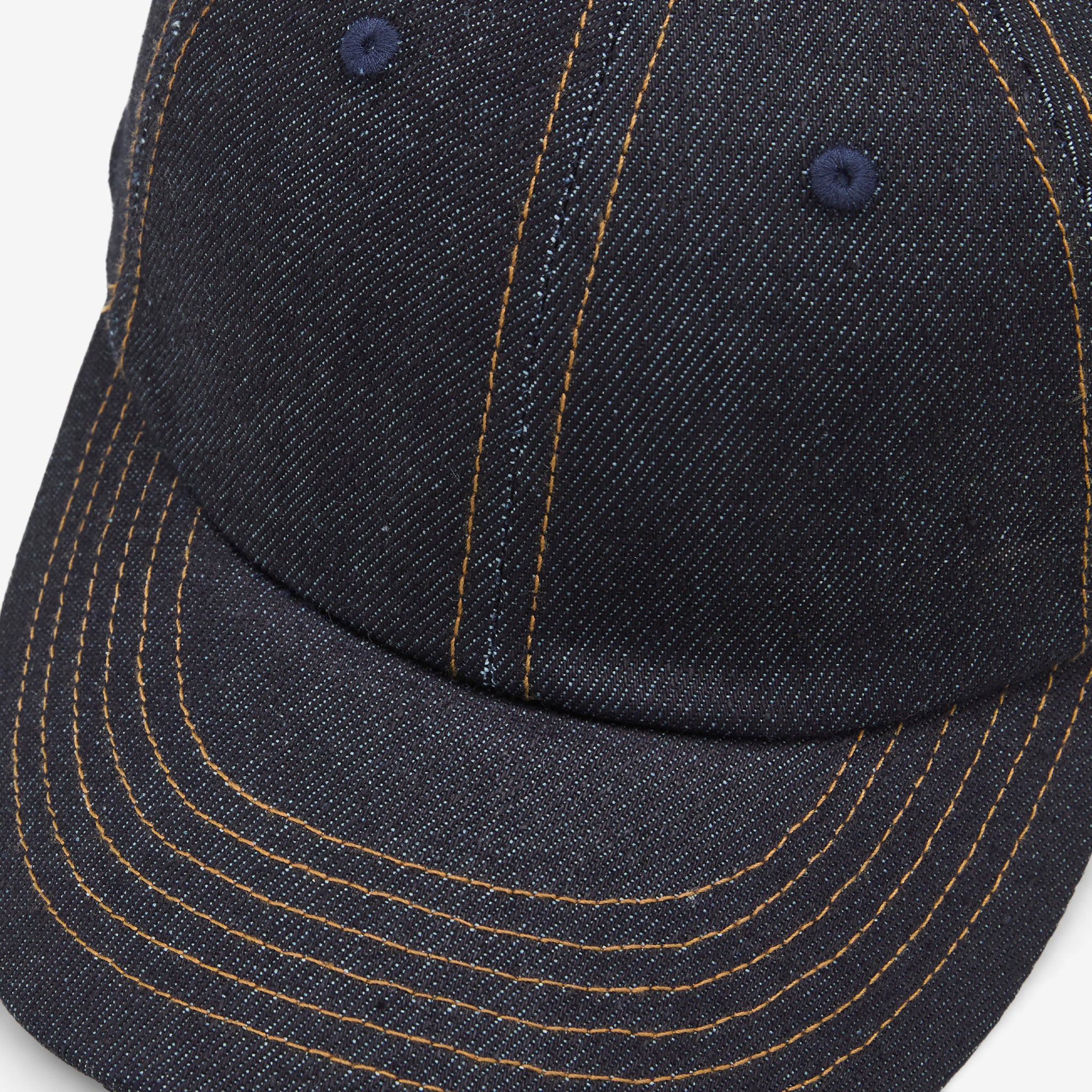 Standard Cap in Raw Indigo Denim from Pseushi. 6-panel cap with ventilating stitched eyelets and a custom buckle adjustable self-fabric backstrap. Crafted from organic cotton raw indigo denim. Finished with contrast stitching and embroidered branding on the front and back.