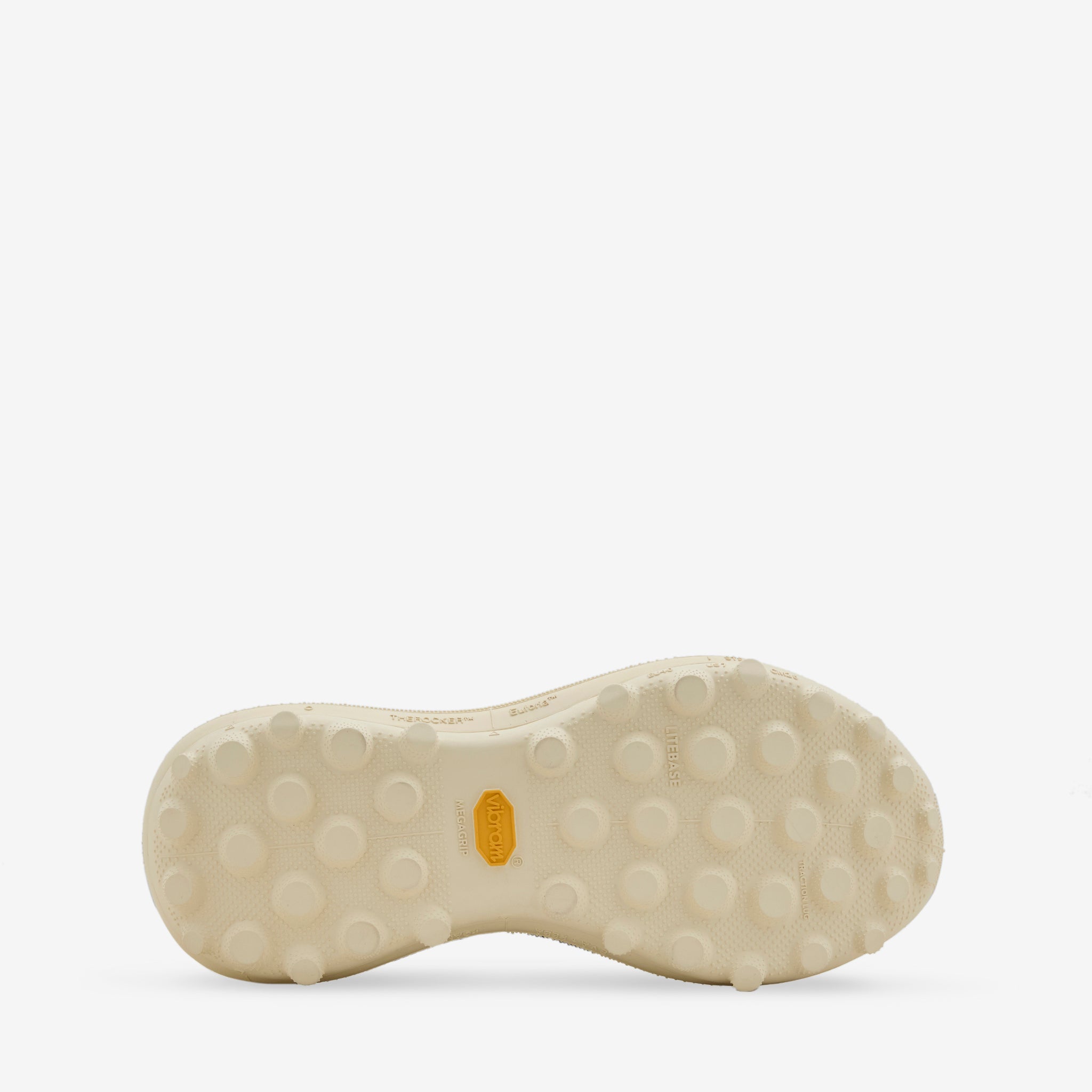 Men's TheROCKER in Antique White from Satisfy. Rippy™ 66 Monomesh upper is constructed from breathable, durable and abrasion-resistant Nova® Nylon 66 and features asymmetrical lacing that follows the natural line of the foot and a custom shape with a narrow heel and wider forefoot to mirror natural foot geometry. Midsole utilises Euforia™, Satisfy's proprietary midsole foam, tuned for a smooth, consistent ride across all terrains. Co-engineered with Vibram®, the TuneLug™ outsole combines Megagrip™ for outstanding grip on wet and dry surfaces and Litebase™ for reduced weight. The conical lug geometry is custom-designed for directional control, while the 360° wrap provides added sidewall traction and durability. Finished with a collectible box, protective shoe covers and a custom graphic sticker sheet.