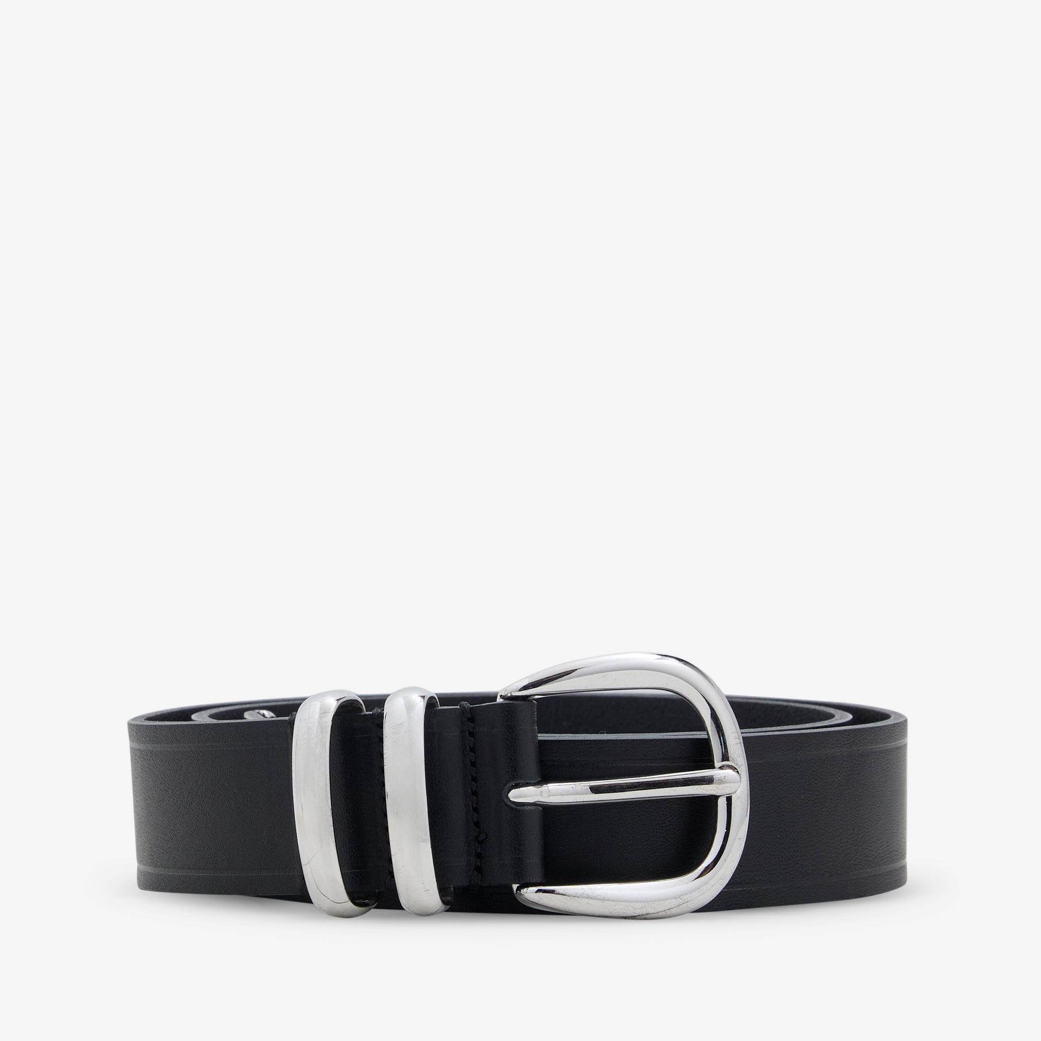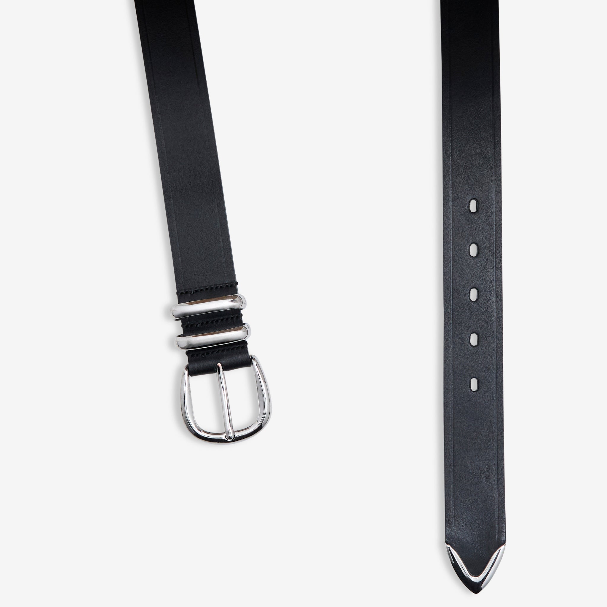 Tip End Belt 3.5cm in Black from Sunflower. Western inspired belt. Crafted from Aniline dyed calf leather and finished with silver-plated metal trimming throughout.