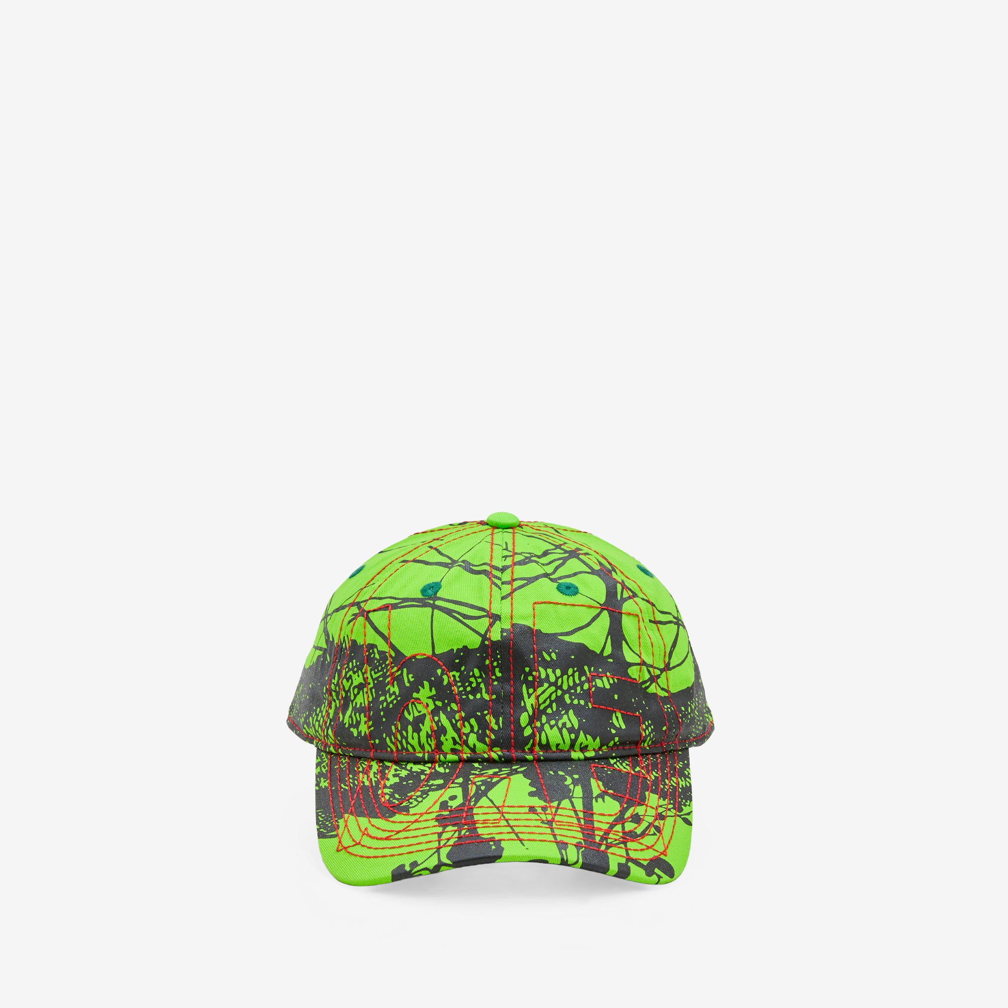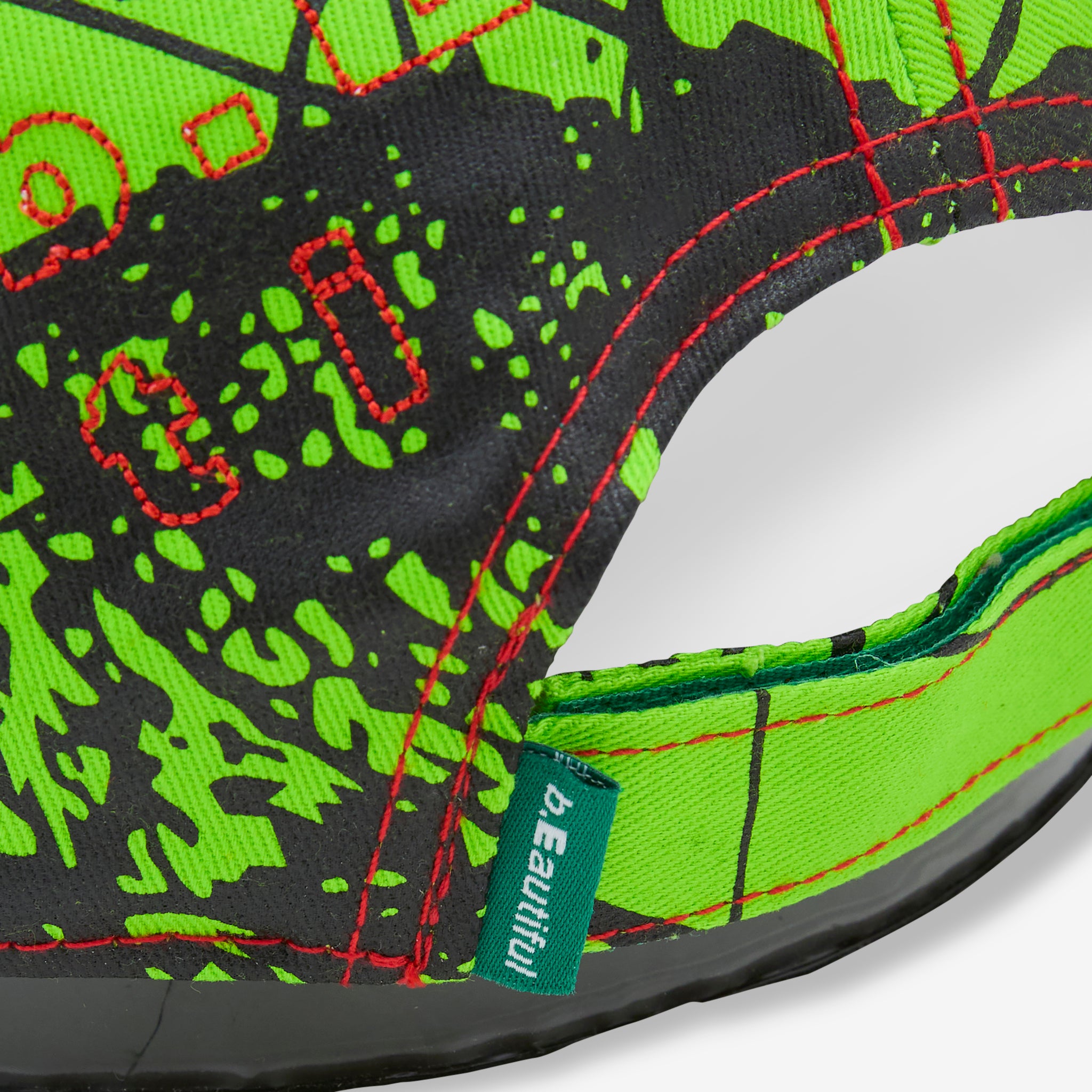 Vapor 6 Panel Hat in Ikebana Lime from b.Eautiful. Unstructured low-crown cap made from cotton with velcro back strap for adjustability. Features multicoloured embroidery on front, side and back.