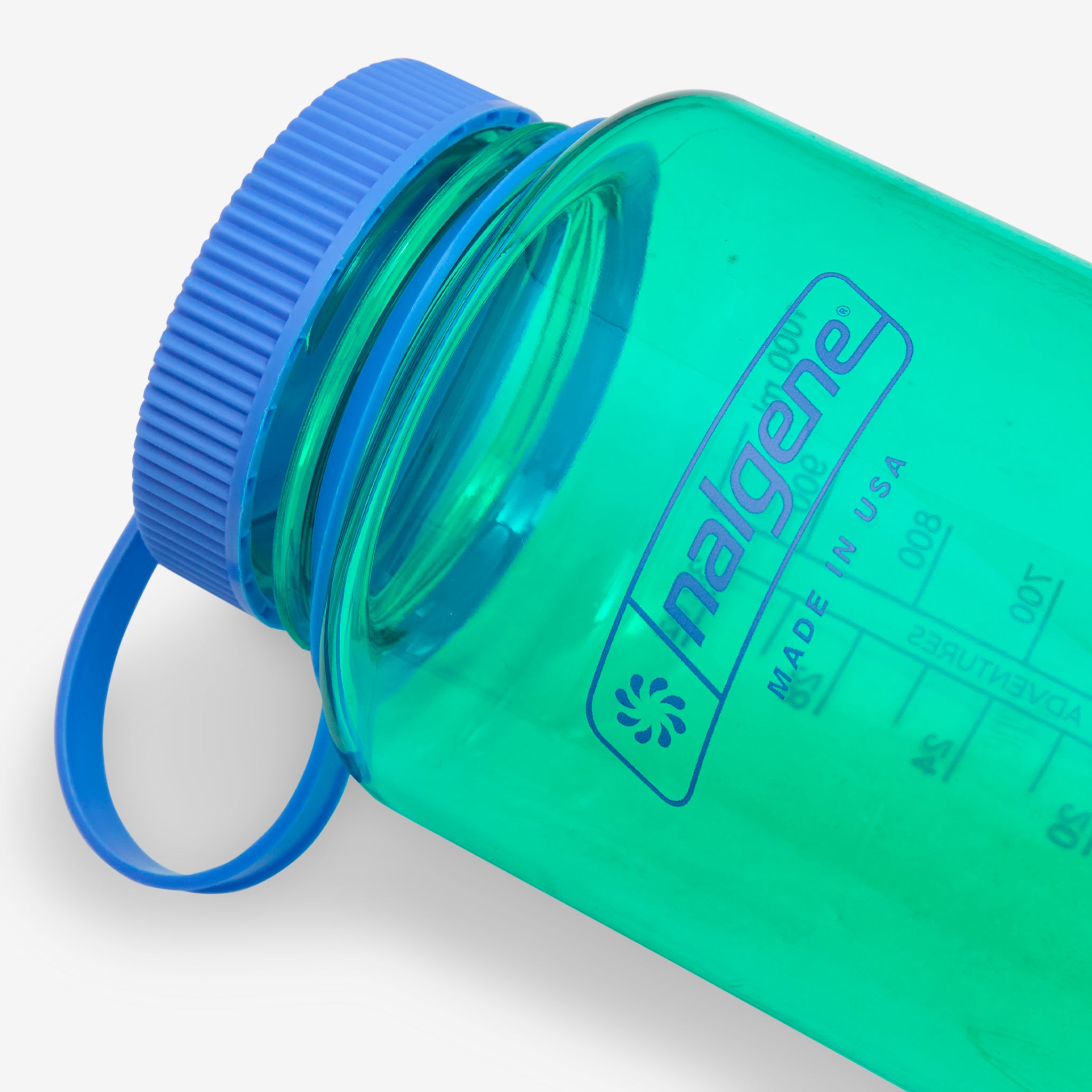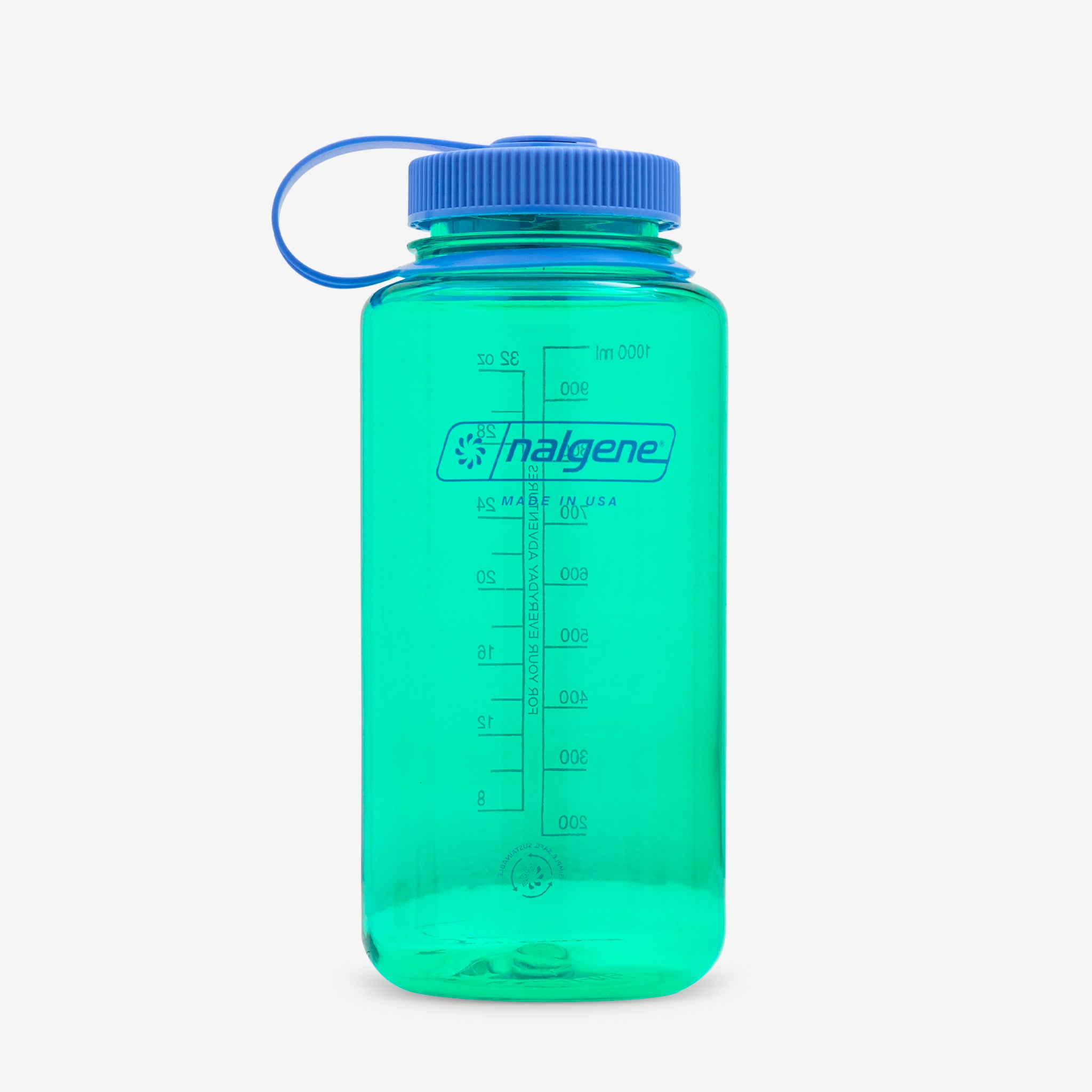 Wide Mouth Sustain Bottle 1000mL in Pastel Green from Nalgene. Lightweight bottle with continuous, straight shouldered semi-buttress threads to prevent leaks. Crafted from BPA/BPS free resin derived from 50% waste plastic. Wide-mouth to fit filtration units and ice cubes.