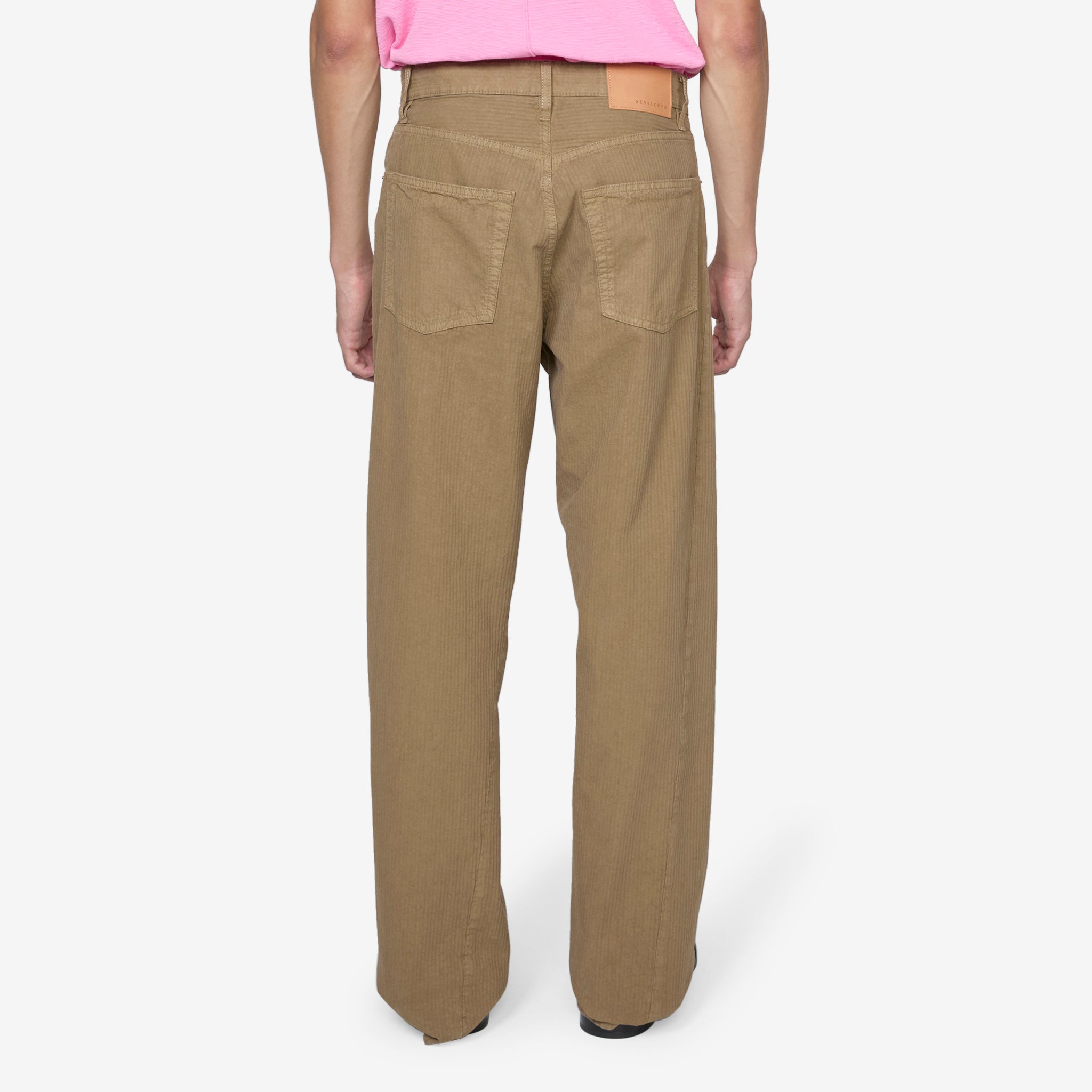 Wide Twist Jeans in Light Brown from Sunflower. Wide-fit jeans with 5-pocket construction, a belt loop waistband and twisted seam details. Crafted from a washed 12.5oz Italian denim and finished with a branded leather jacron at the rear waistband.