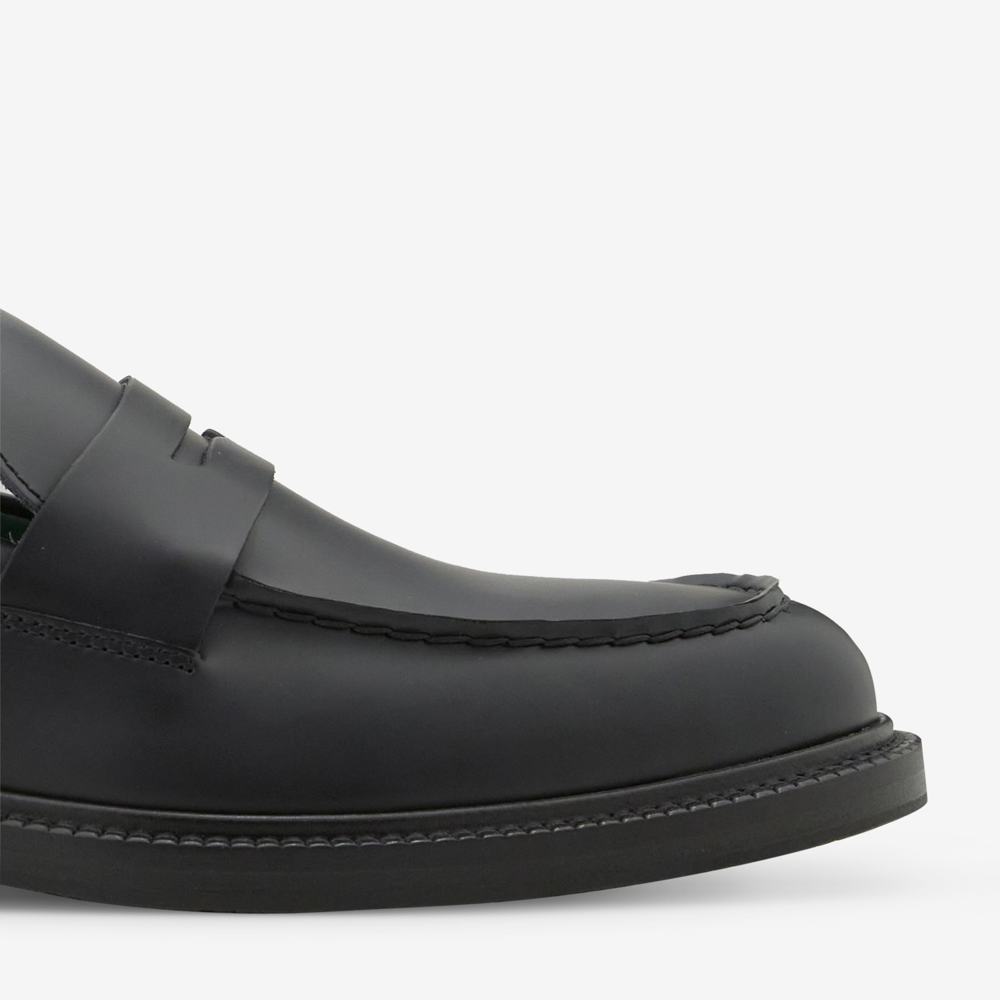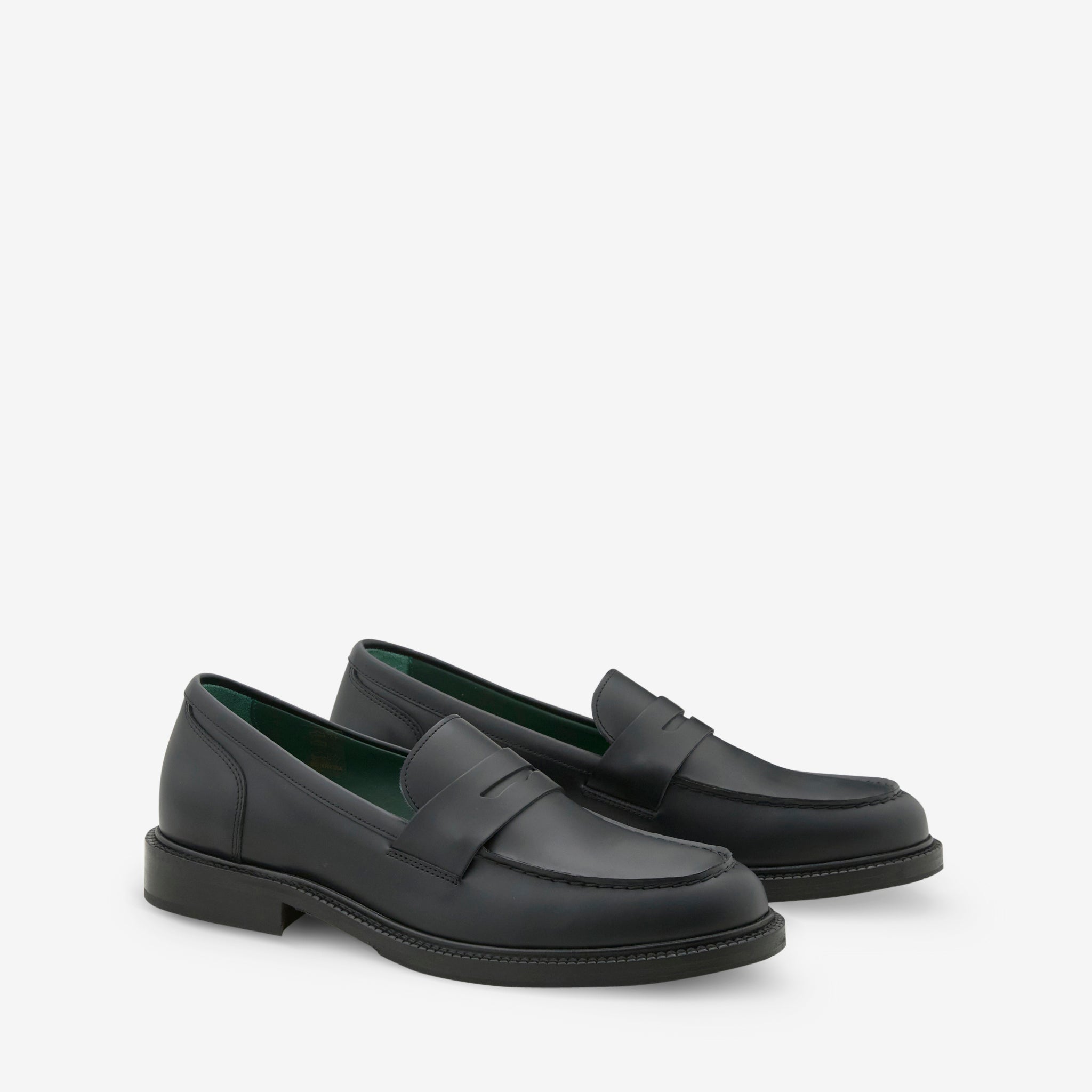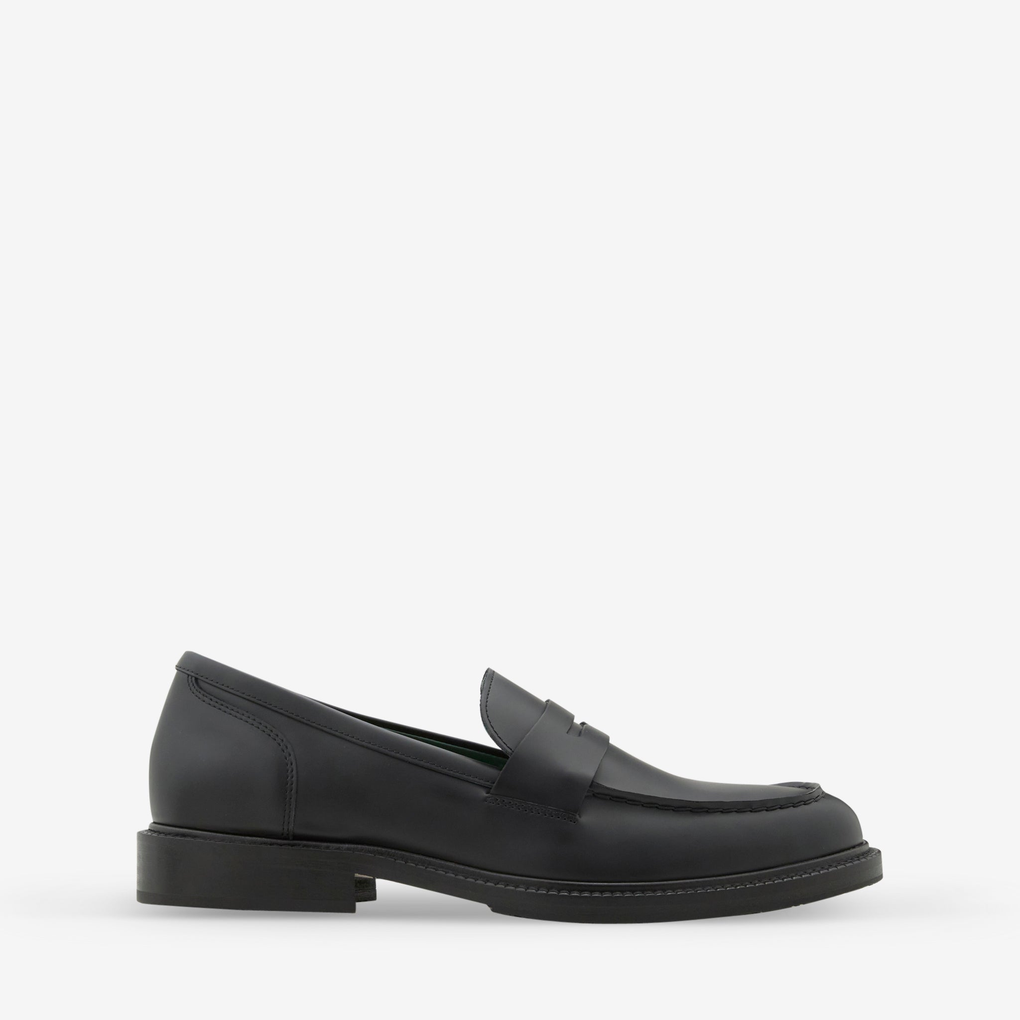 Women's Townee Penny Loafer in Black Polido Leather from VINNY's. Hand crafted in Portugal with a full Polido leather upper on a rubber sole with signature heel engraving.