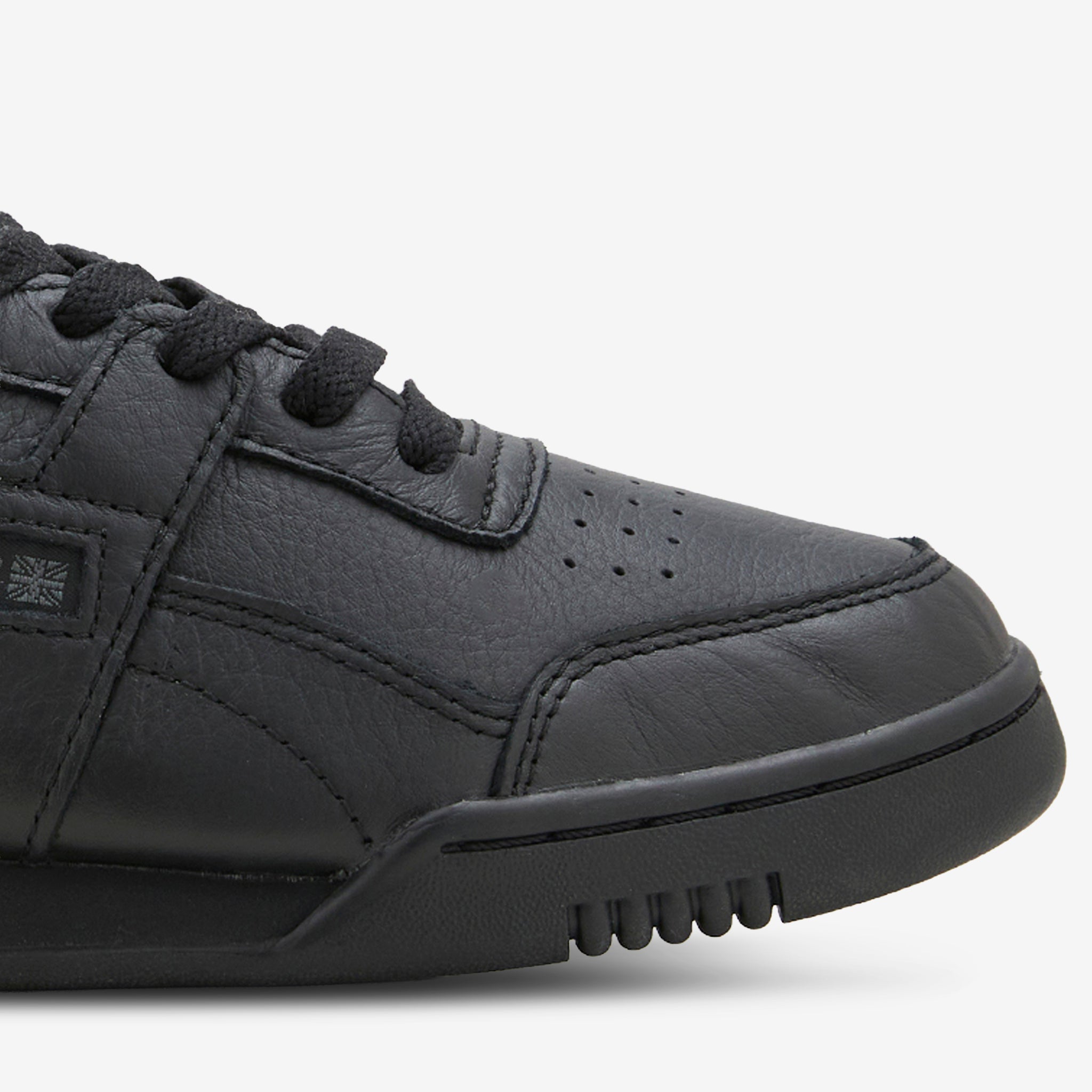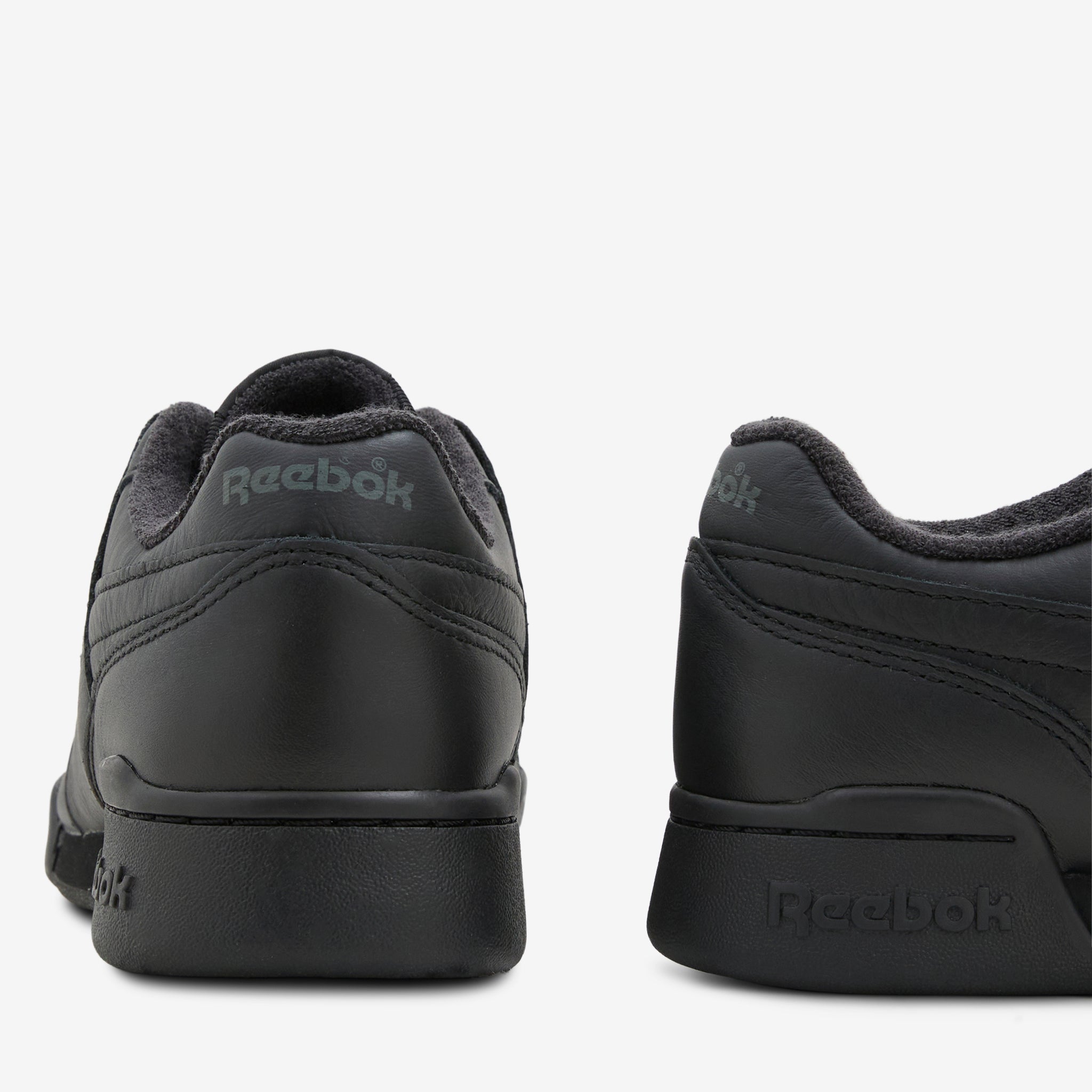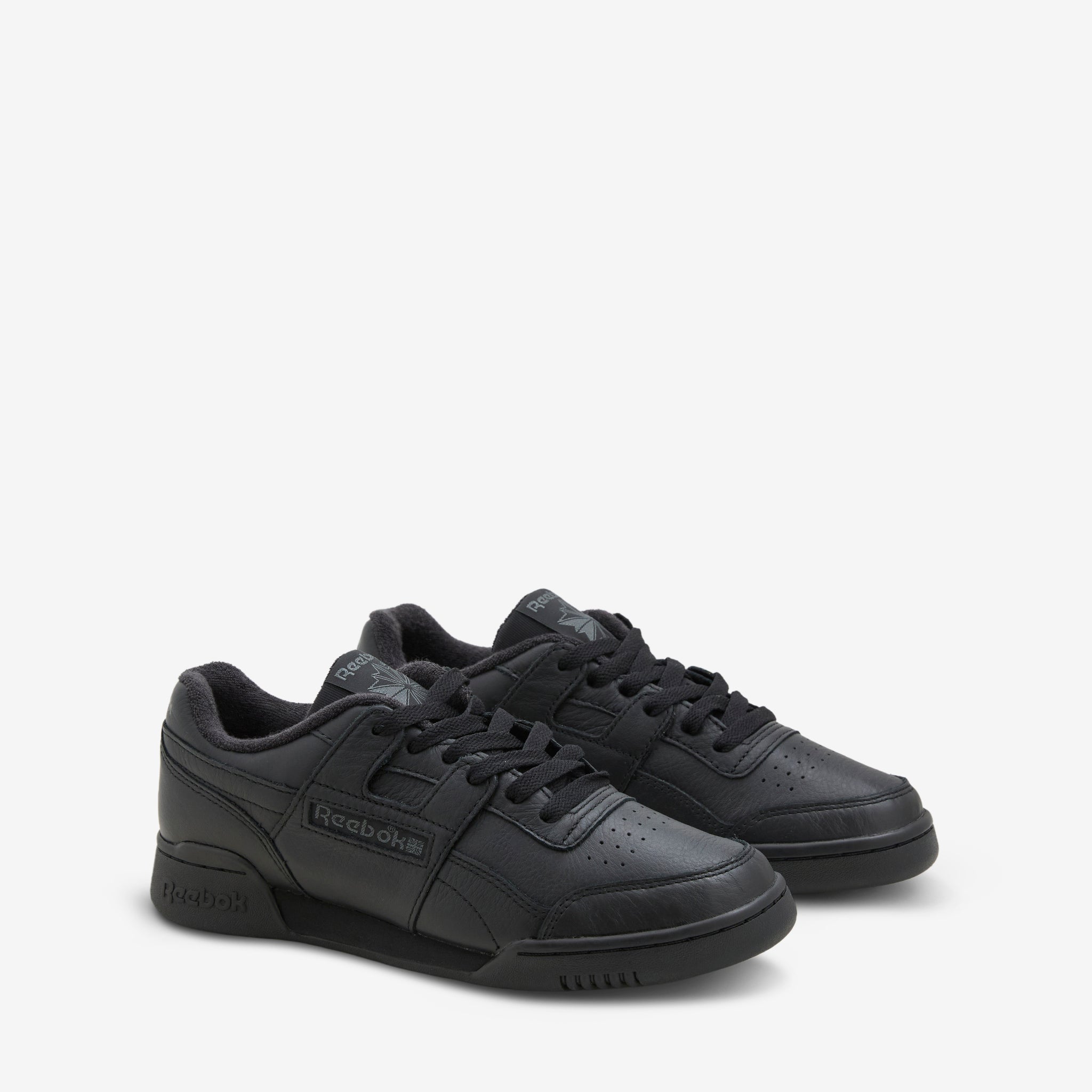 Men's Workout Plus in Black from Reebok. An '80s icon reissued true to form. Originally released in 1987, the Workout Plus features the classic H-strap design, durable leather uppers, and EVA cushioning. Finished with a gum rubber outsole for grip and a detchable branded hangtag.