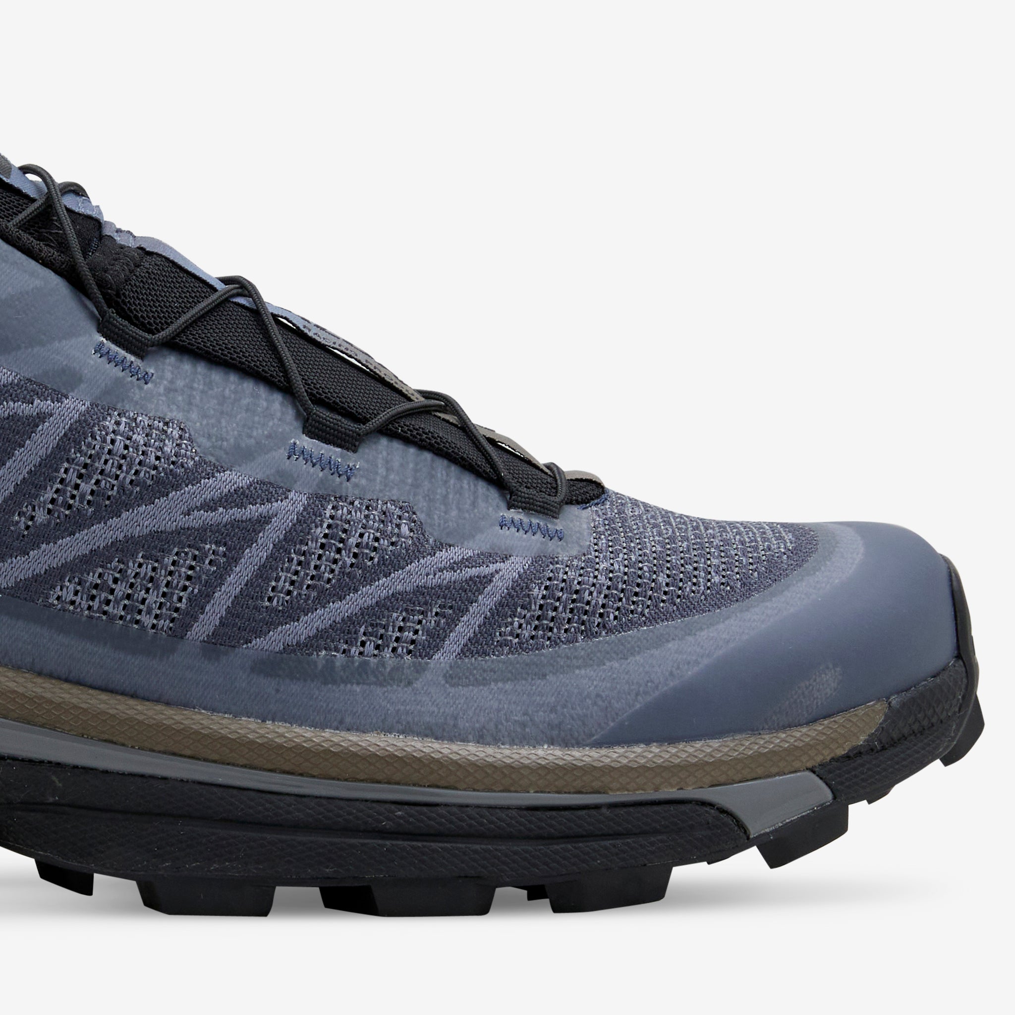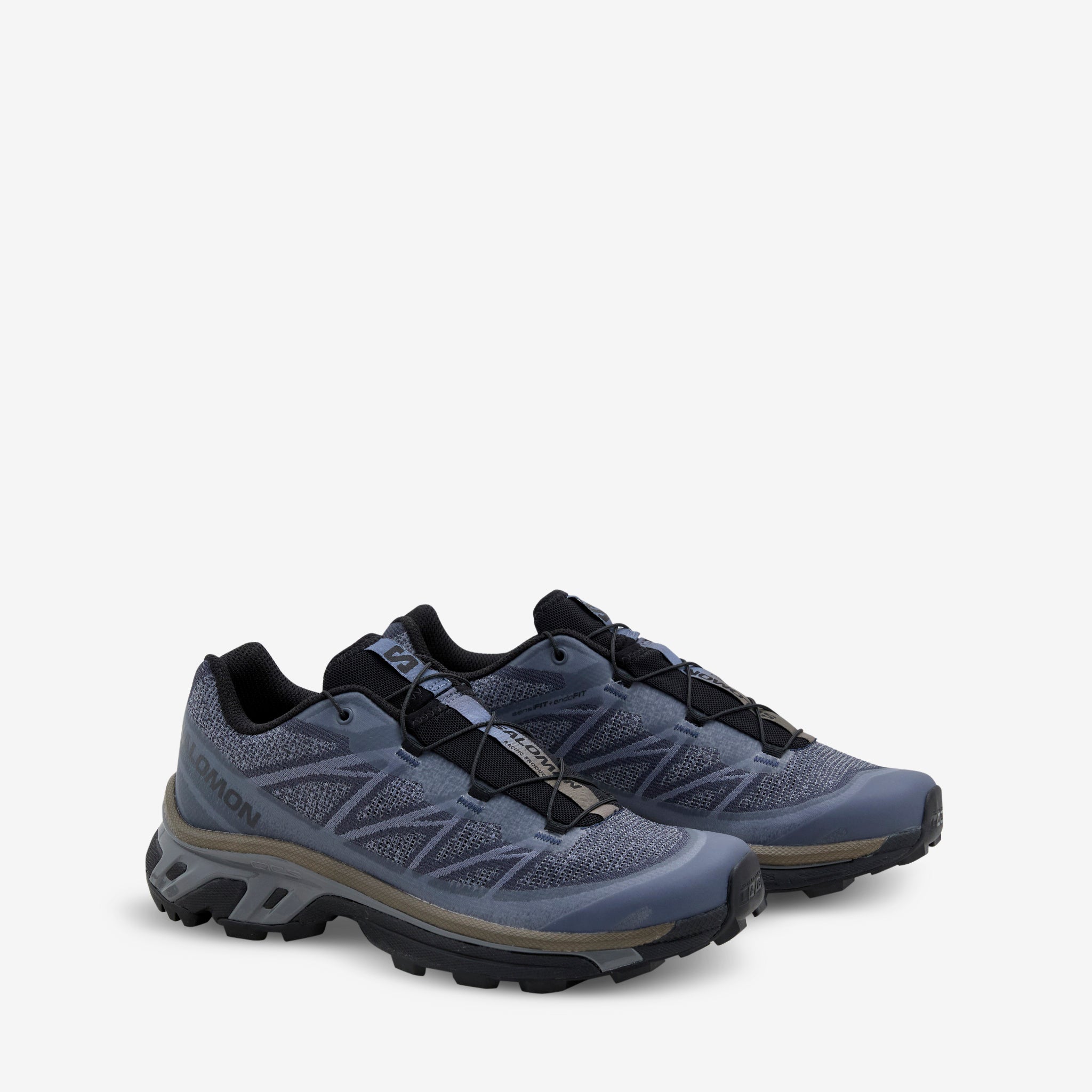 Men's XT-6 Shadow in Blue Nights, Grisaille and Stone Gray from Salomon. High abrasion-resistant jacquard mesh upper with welded TPU overlays and a signature Quicklace™ lacing system. Full length Agile Chassis™ System (ACS) and EnergyCell midsole provide cushioning and stability whilst the internal EndoFit™ sleeve hugs the foot for a precise fit.