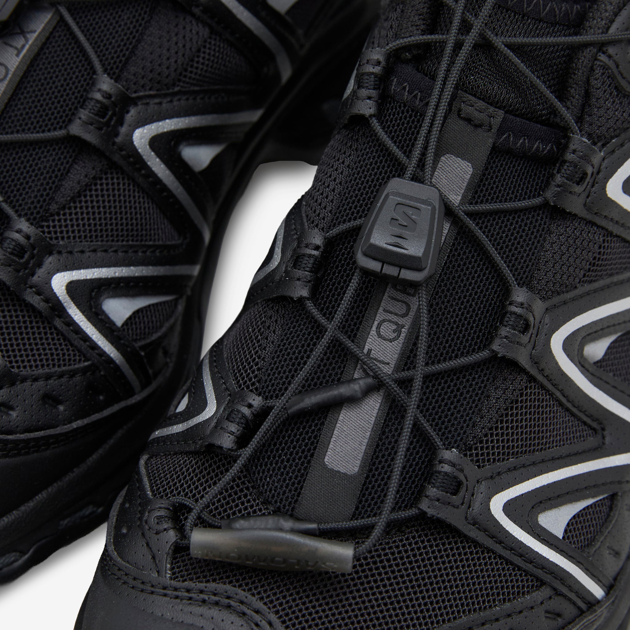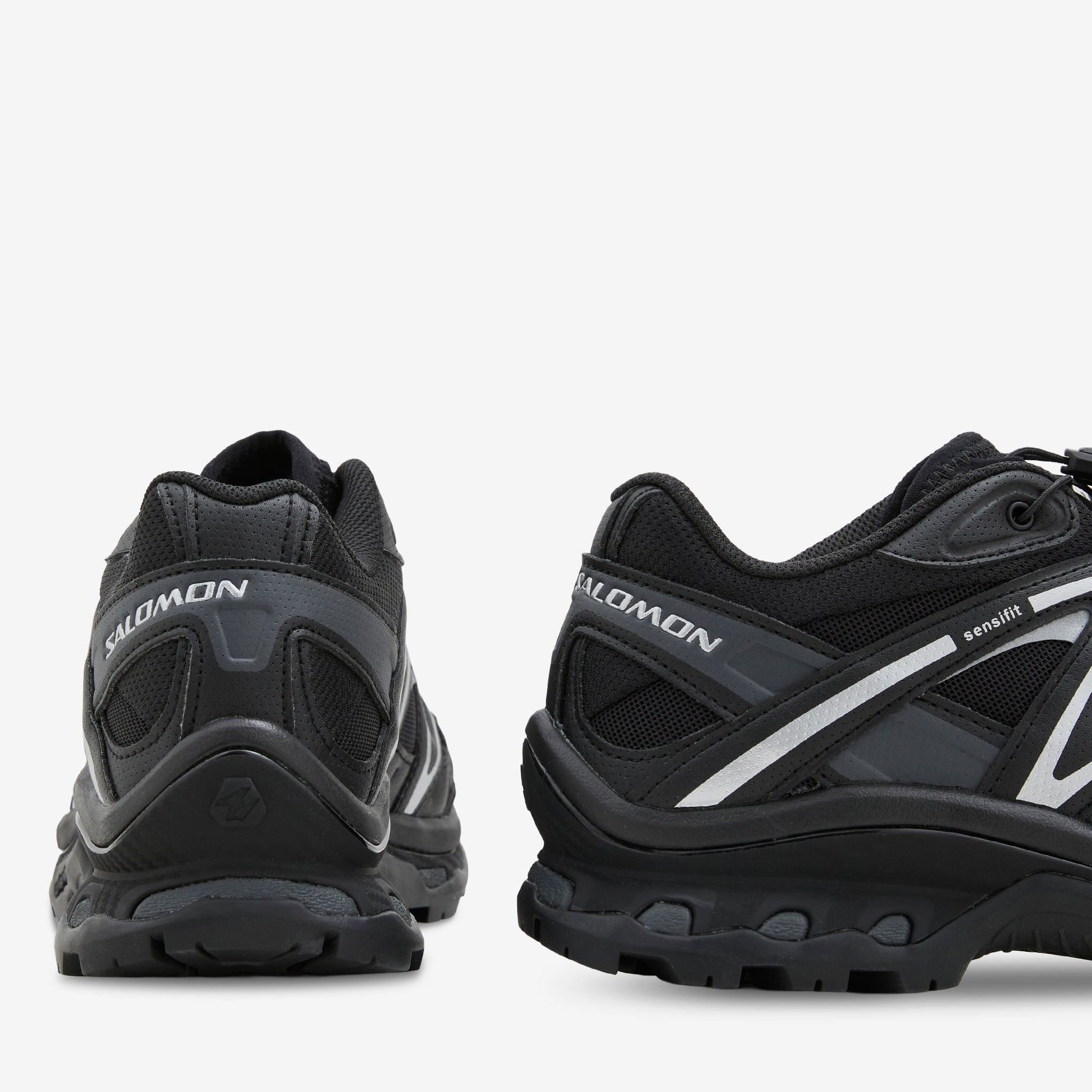 Men's XT-Quest in Black, Asphalt & Ftw Silver from Salomon. A mixture of two iconic Salomon silhouettes, the XT-Wings and QUEST 4D 3, featuring a durable textile upper with silver overlays and a signature asymmetric quickLACE™ system. 4D Advanced Chassis design provides a smooth ride for daily wear. Finished with an updated lug design outsole for cross-terrain stability.
