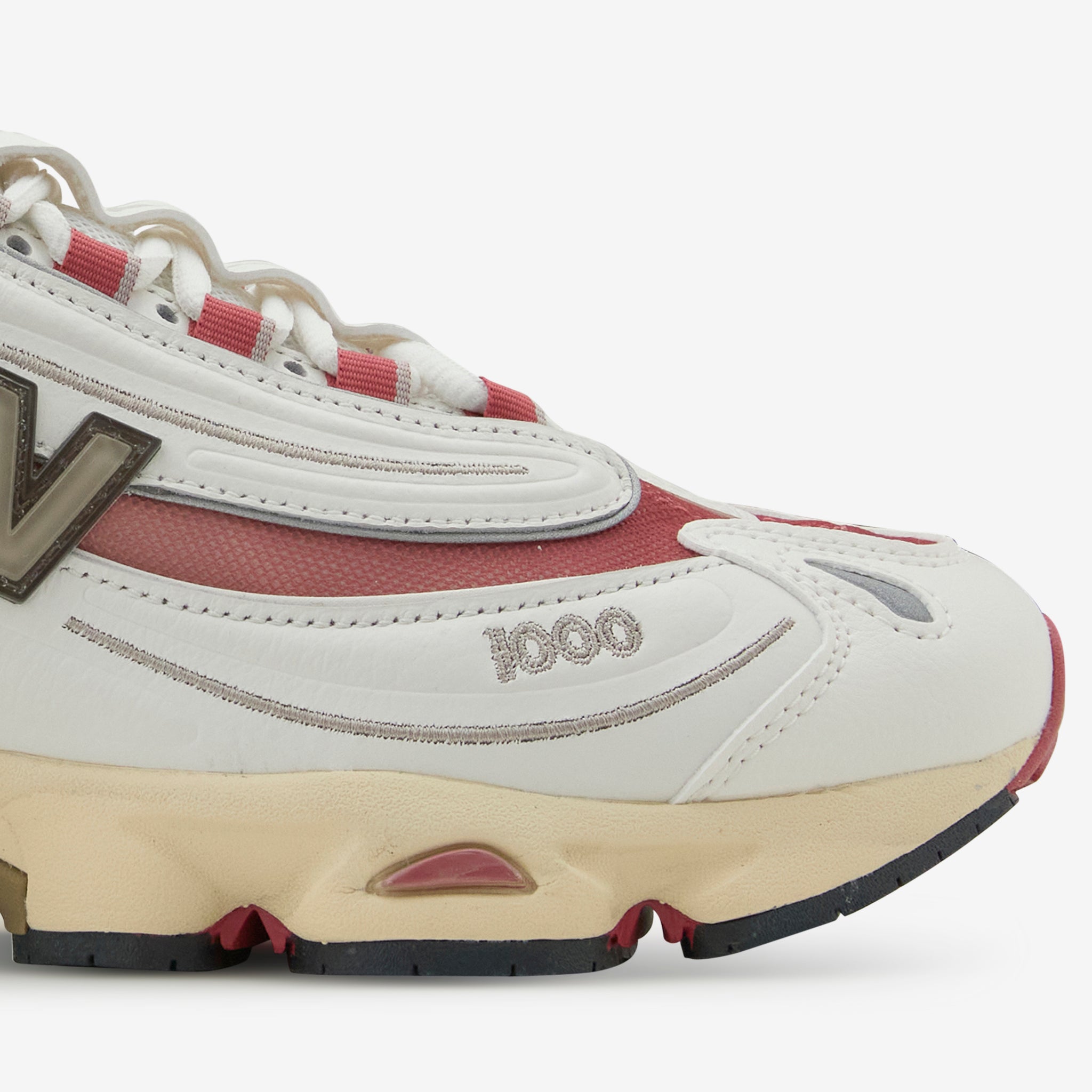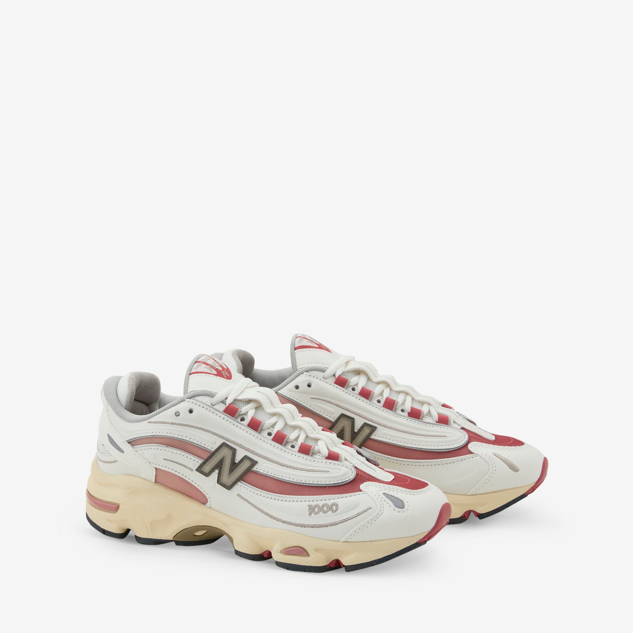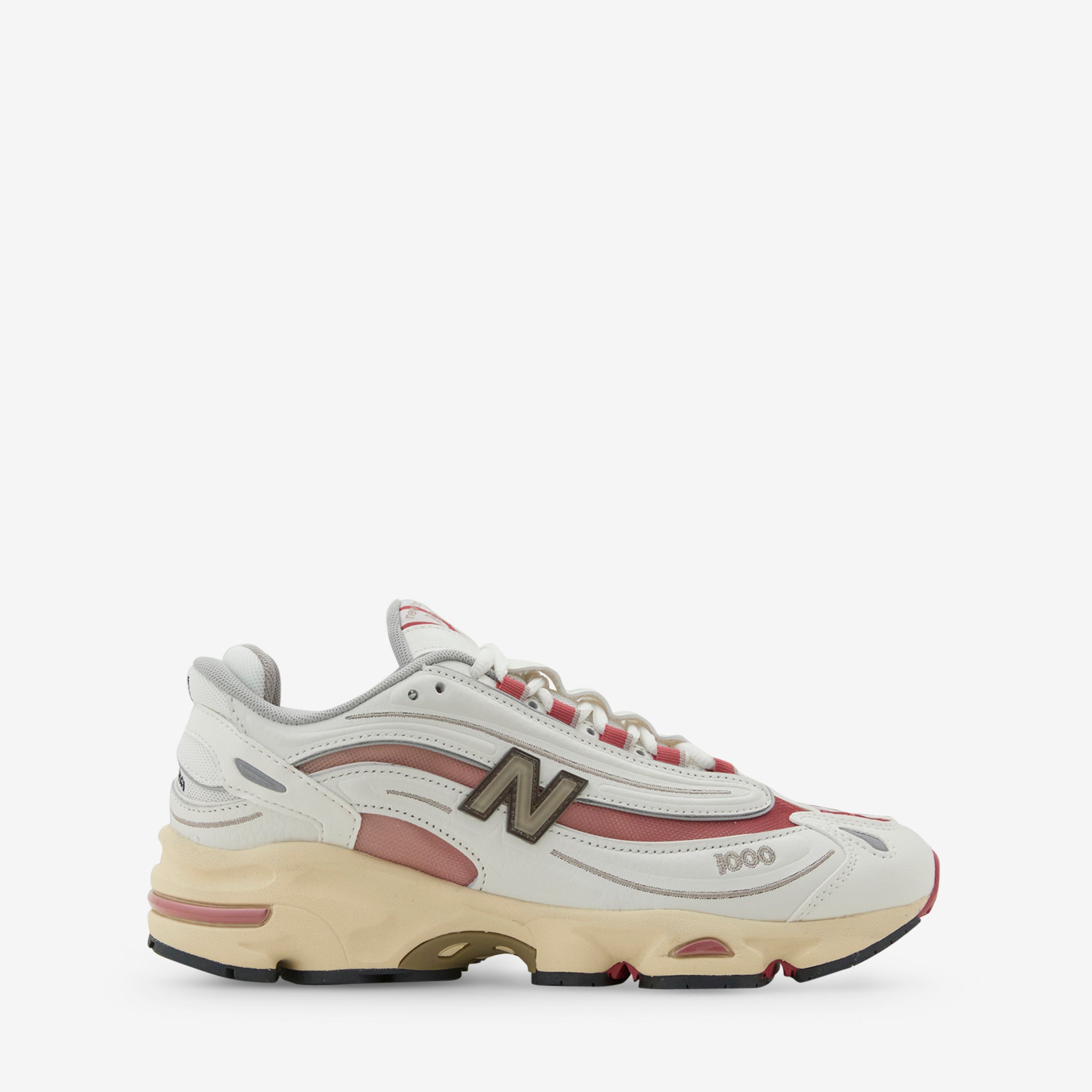 Men's 1000 in White and Sea Salt from New Balance. Returning from 1999, the 1000 takes design cues from the early 2000s with an inverted upper with mesh underlays for a tech-inspired look. Features a segmented sole unit with ABZORB cushioning in the heel and forefoot and a Stability Web midfoot shank.