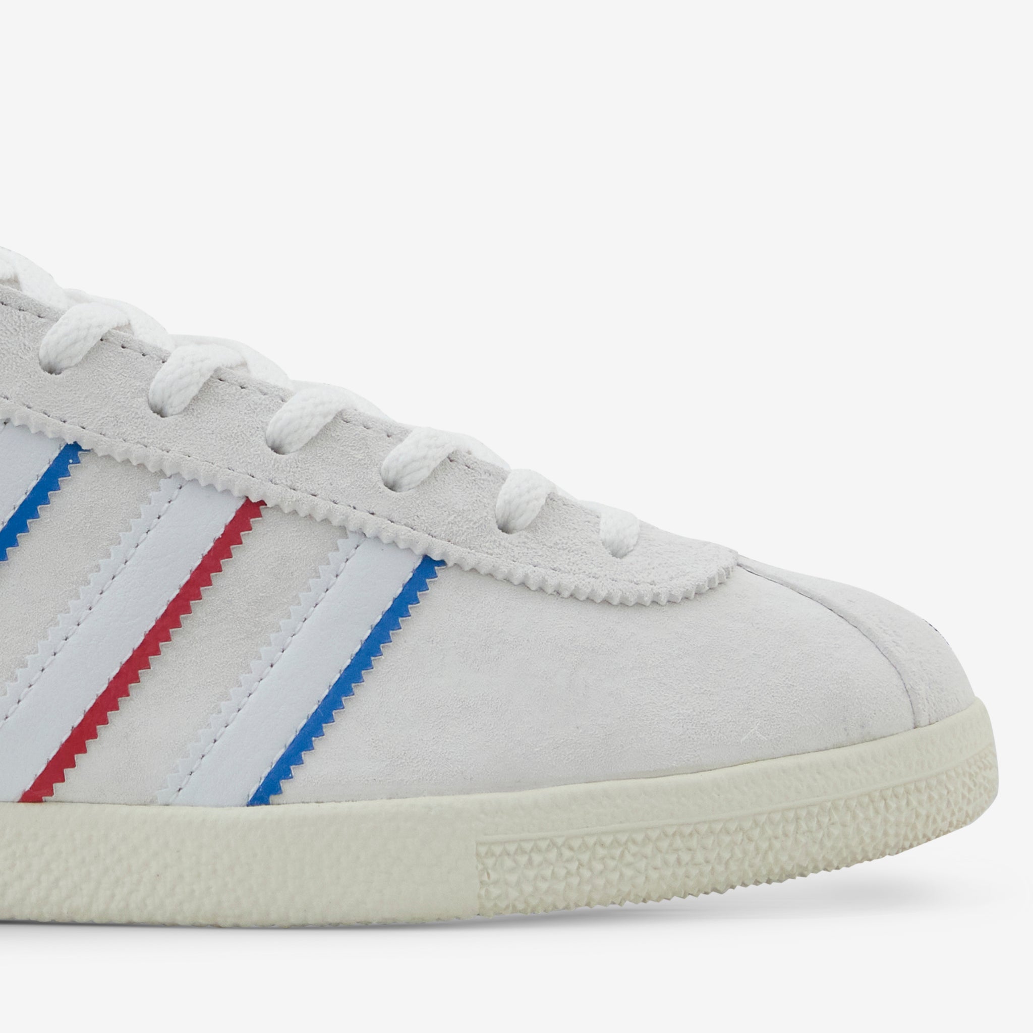 Men's Rotterdam 00 in Cloud White, Blue Bird and Better Scarlet from adidas Originals. A nod to the iconic Euro 2000 final. Features flexible leather upper and textured rubber sole. Finished with ultra-thin stripes and archive details.
